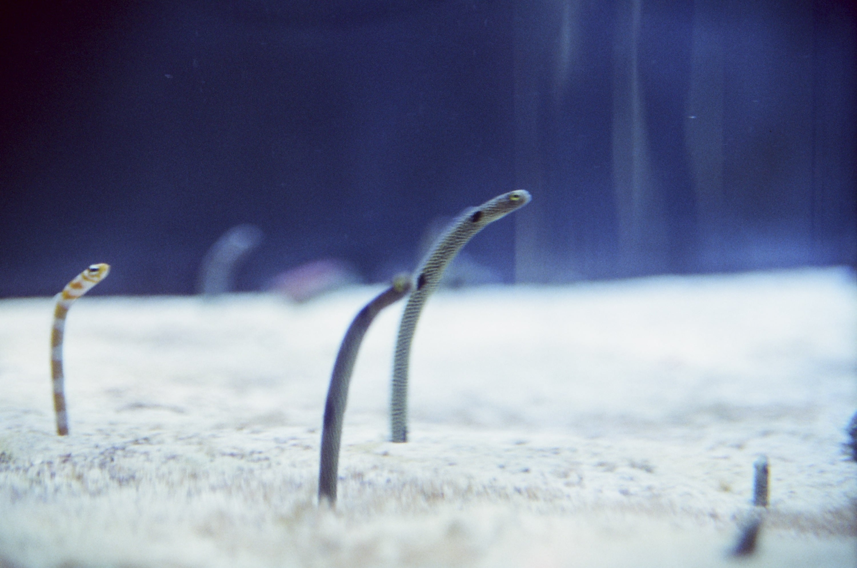 在各大水族館都很受大朋友小朋友喜歡的「花園鰻」,在這邊我是想記錄自己以後到水族館用中長焦拍魚,千萬不要用 1/60 秒的快門,至少要用 1/125 秒才對,因為你看連花園鰻這種沒在游的魚,用 1/60 秒拍起來都會模糊了。