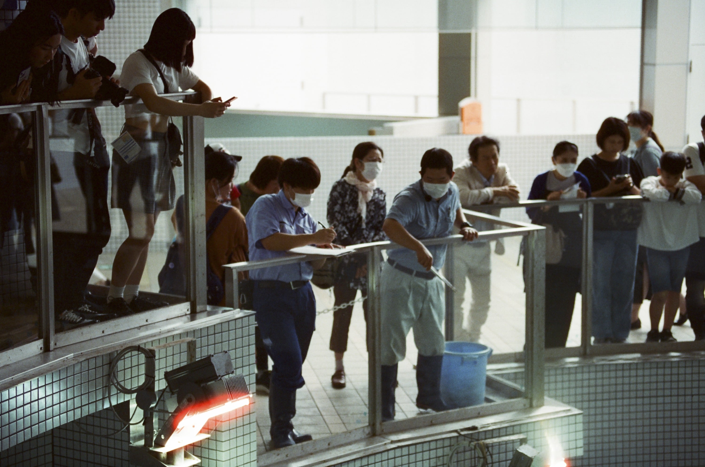 可以看到飼育員也是兩人一組,一人餵、一人記錄這樣。