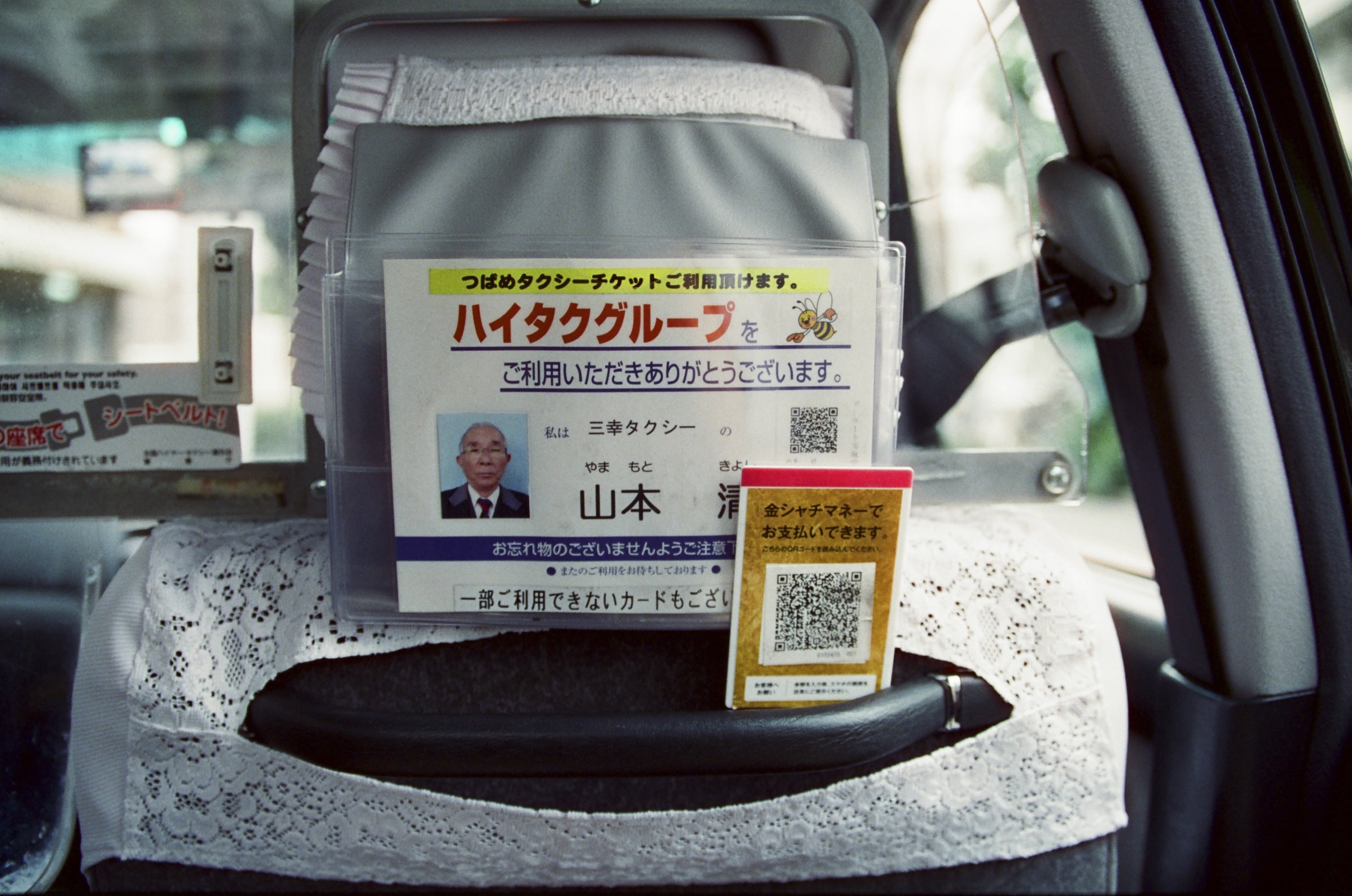 我們從名古屋港搭電車返回名古屋市區後,搭上了一台計程車,日本的計程車很漂亮,有種古典美,而且車內的頭部空間比較高,整個就是載客專用。這是載我們的司機大哥,山本清先生,可以看到他都一把年紀了,但還是兢兢業業地在開計程車。