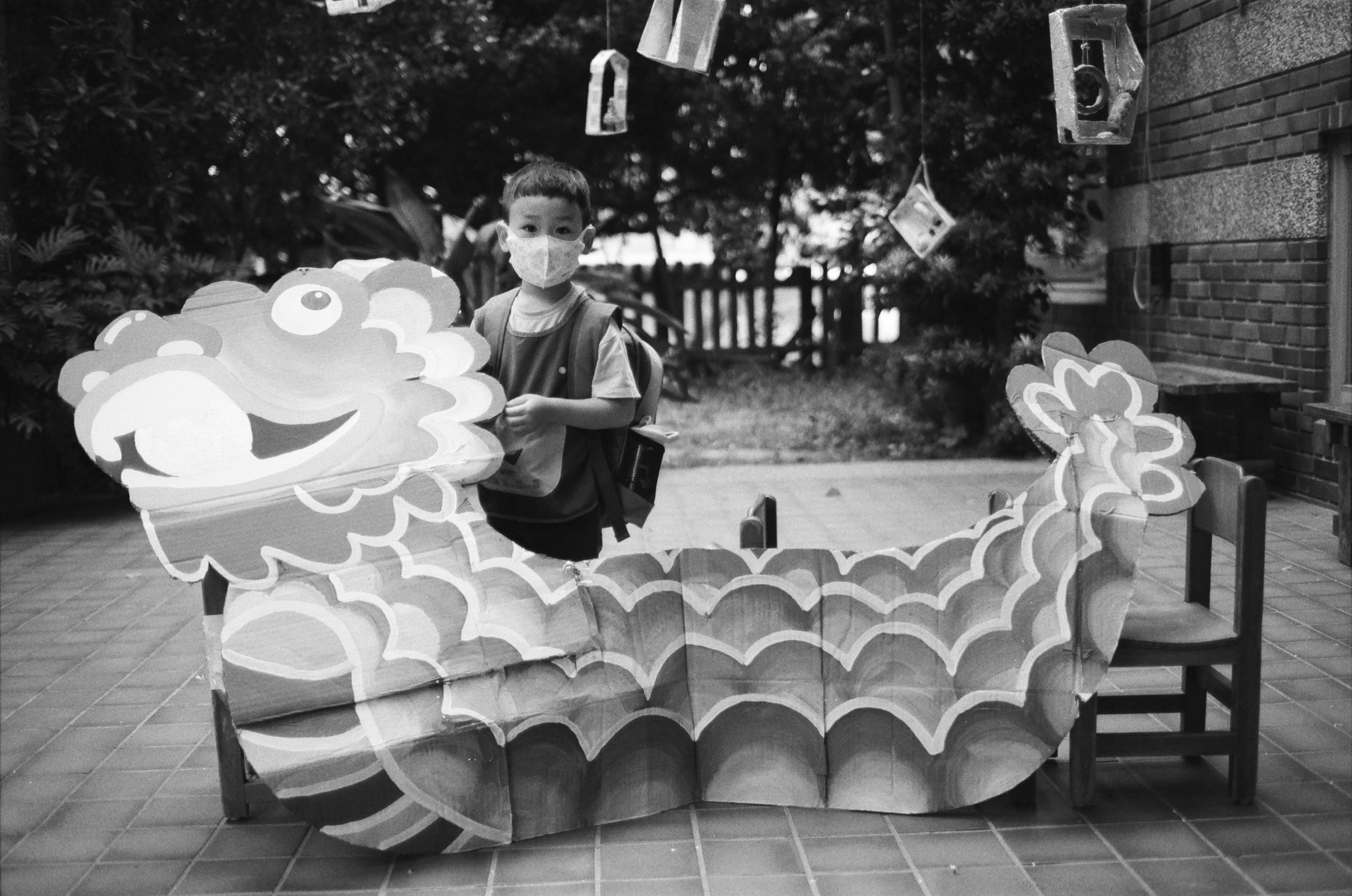 某天去接兒子下課,學校多了艘龍舟,可以拍照,但兒子的眼神似乎有什麼心事,應該還在想念日本,不想上學吧?
