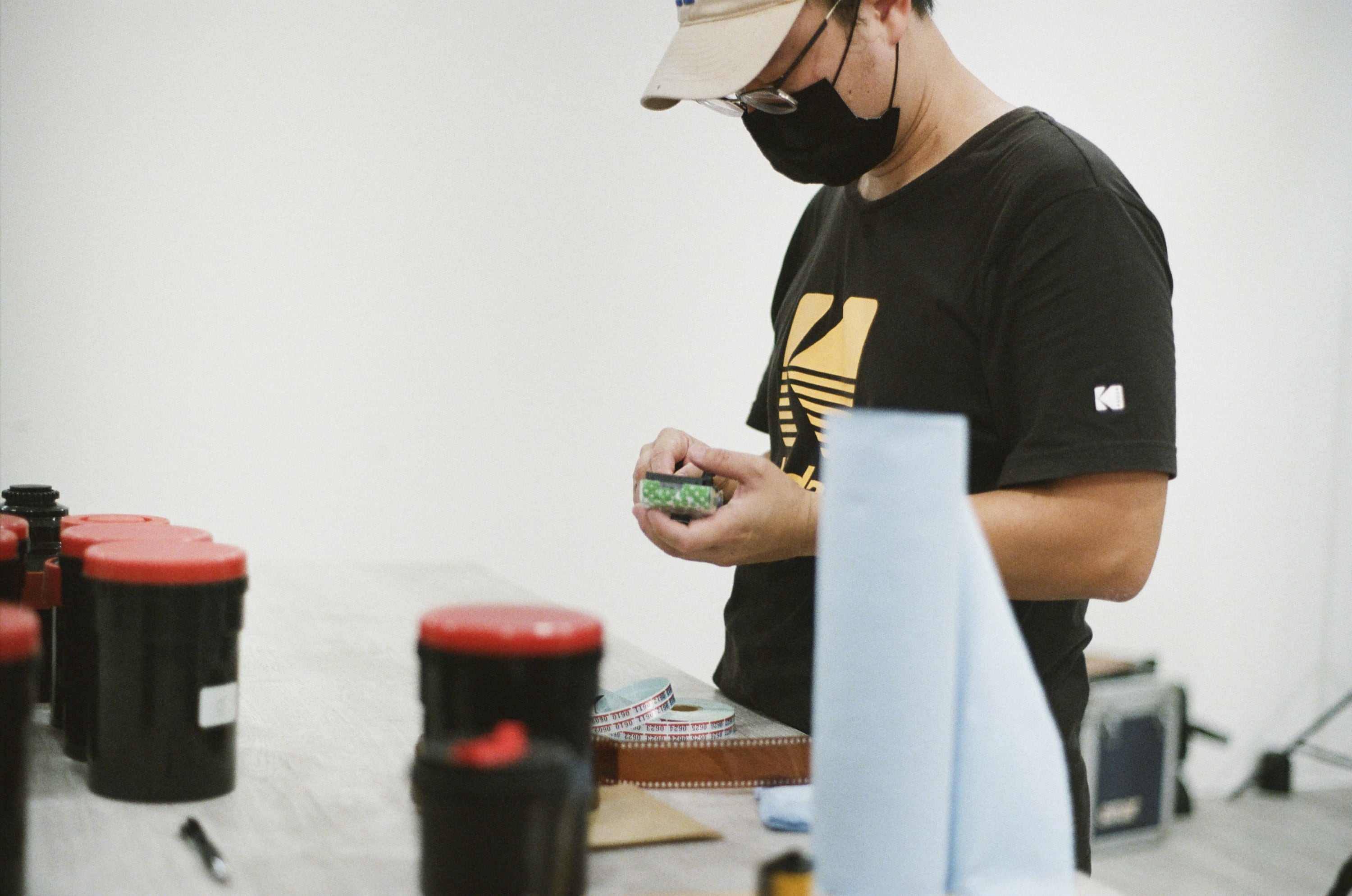 第一次要裝片進沖片罐時,我非常緊張,總覺得千萬不可以讓我珍貴的底片受損。我先用老師提供的報廢底片練習了好幾次之後才進行真正的動作。