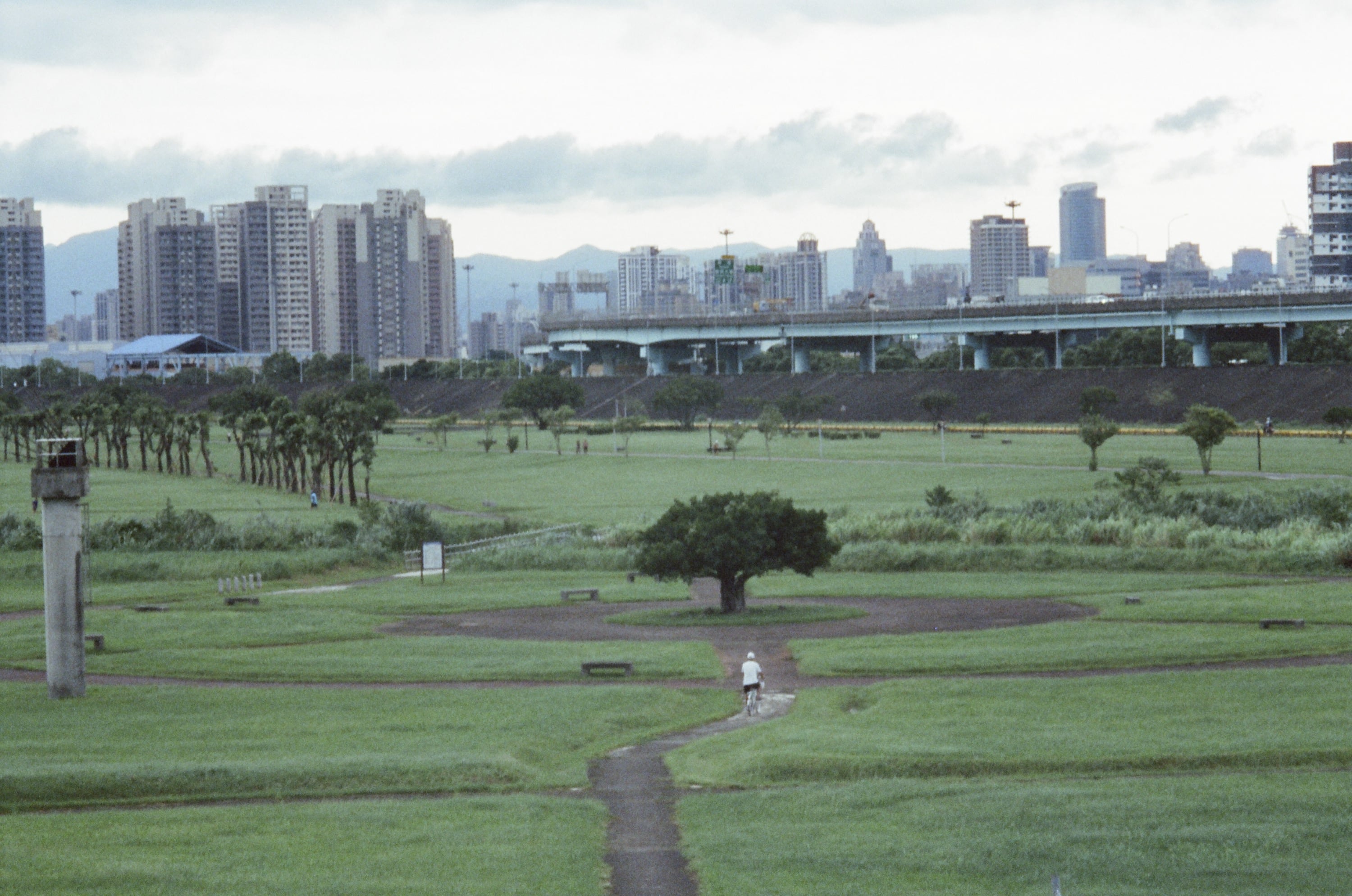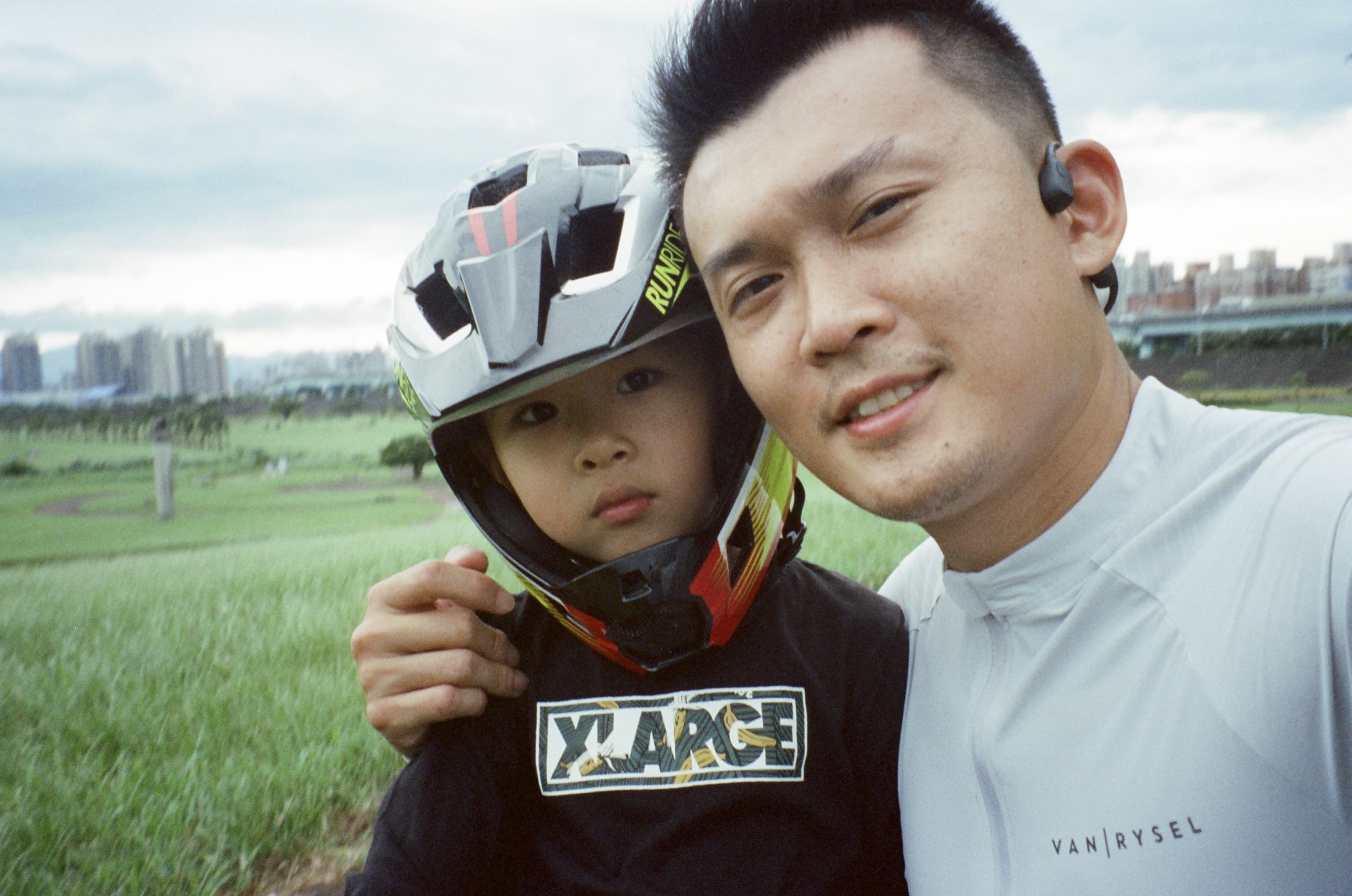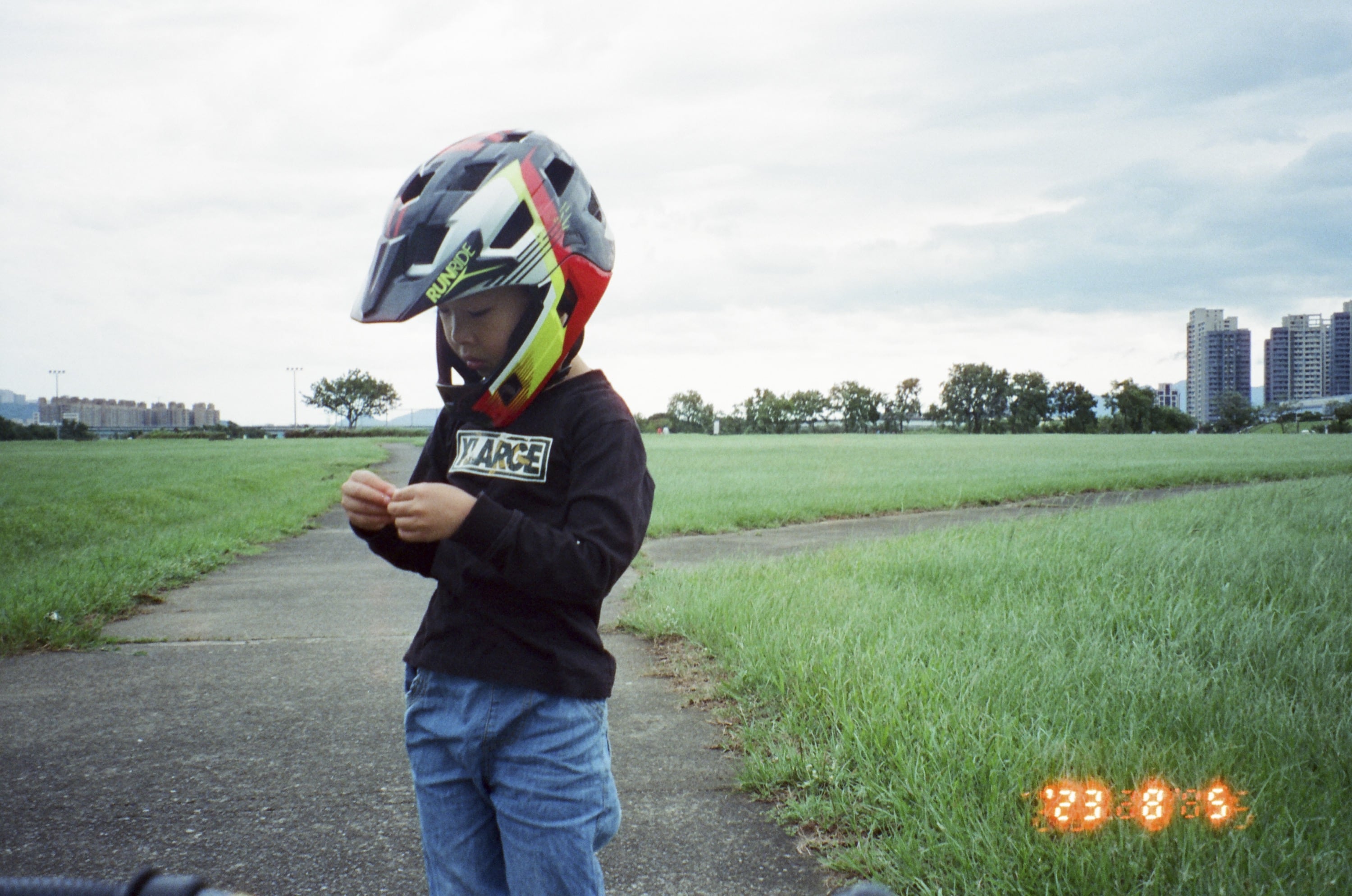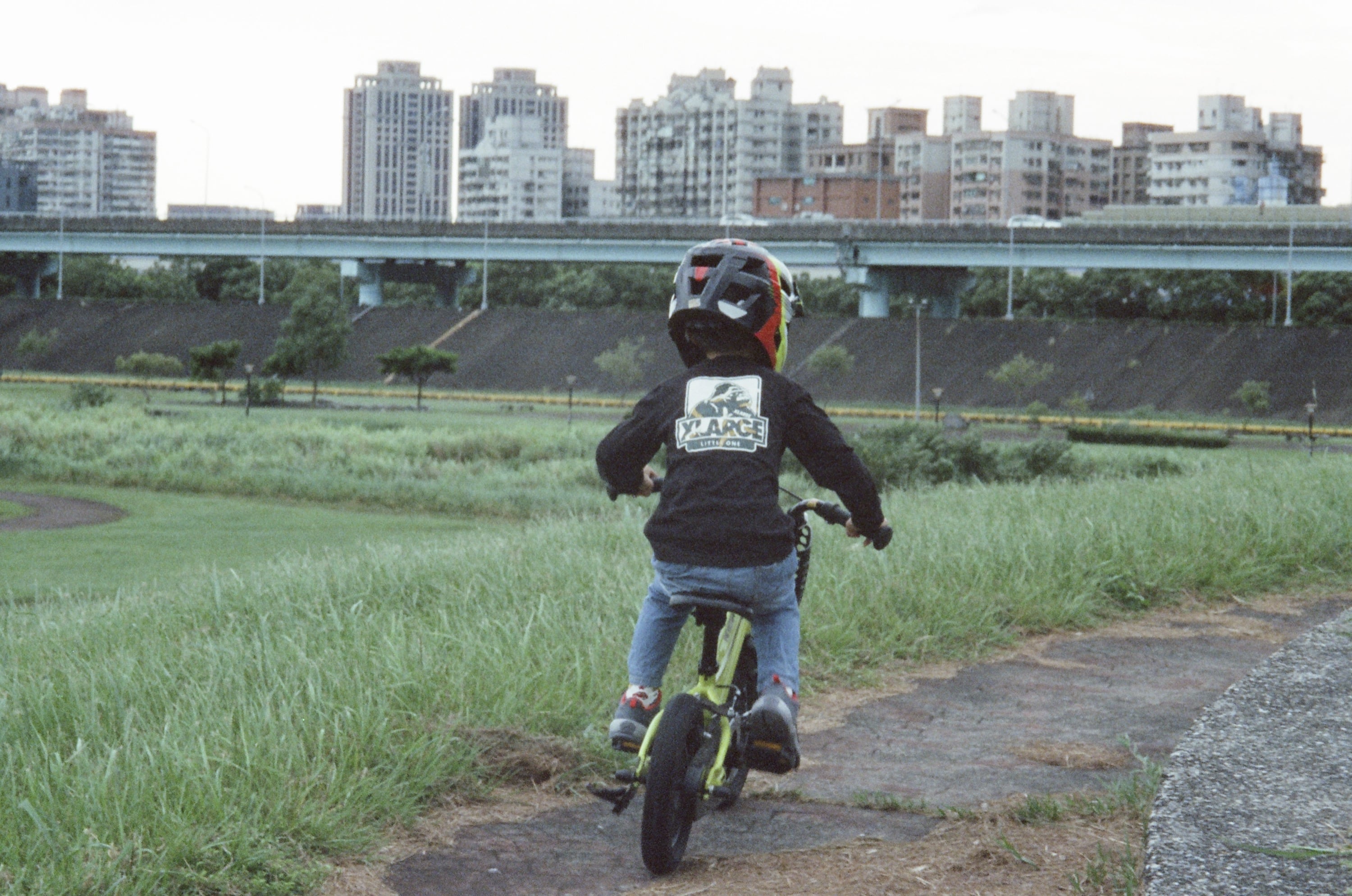 這卷底片主要紀錄了有個假日我和兒子去河堤運動的照片,那天星期六,兒子起得早,他看見我正要出門晨跑,於是他說他也要去。因為兒子跑步的速度和我完全不一樣,因此我建議兒子用騎腳踏車的方式,而我則是用跑的,我們就這樣出門跑了一小時,他也騎了將近一小時,我很訝異他竟然能夠跟我運動完全程,而沒有在半路哭鬧。