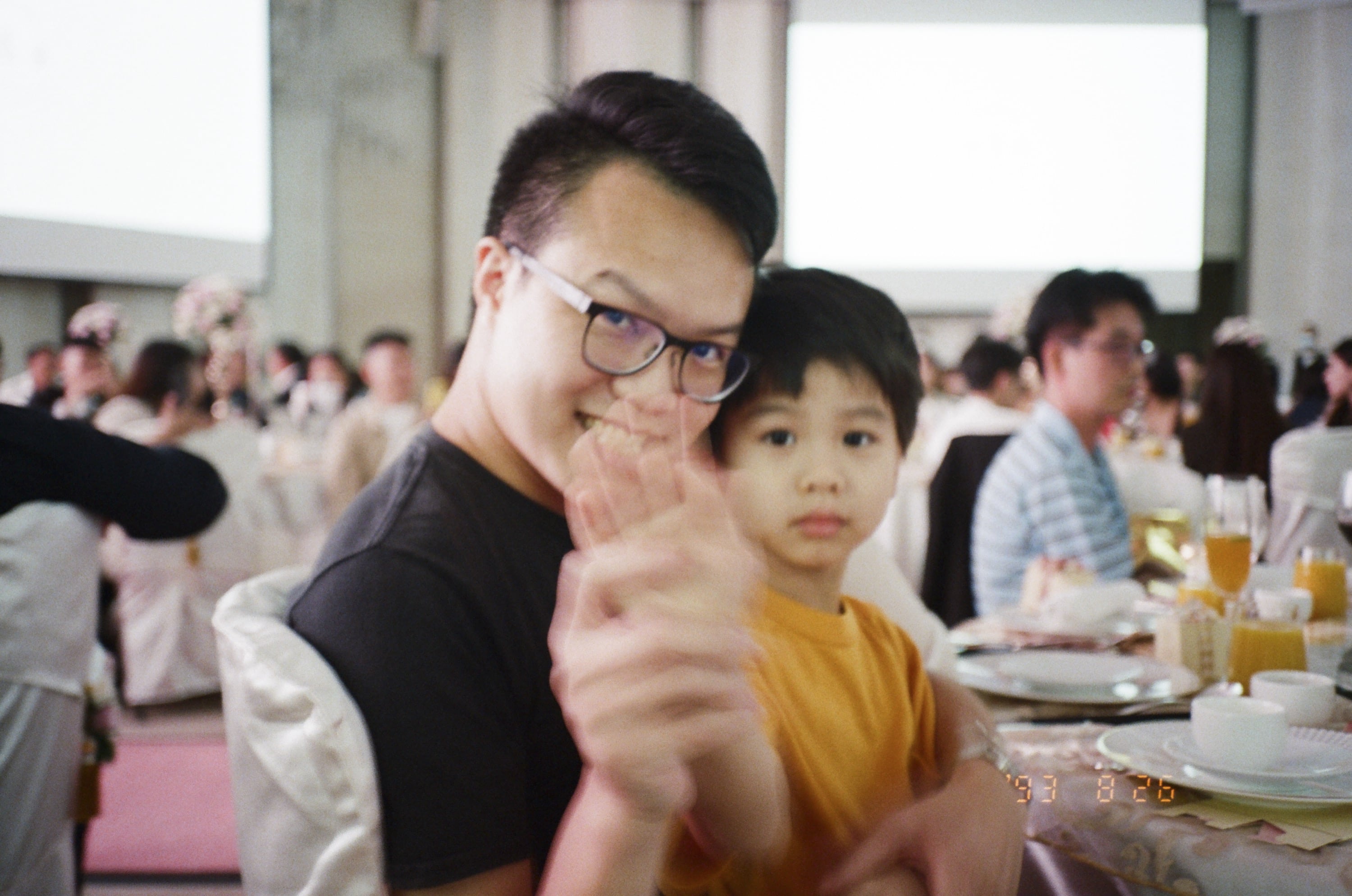 這卷底片主要記錄了 2023 年 8 月底的一個週末,北中往返東奔西跑的隨身影像紀錄,2023 年 8 月 26 週六,早上我從新北板橋開車下台中霧峰日染樹梢上彩色正片的沖片體驗課,接著 13:00 上完課之後,又開車回板橋,趕赴晚上參加在台北遠東香格里拉飯店舉辦的朋友婚禮。隔天星期日,又帶著這一台相機,帶兒子去台北車站南陽街附近的咖啡廳,參加我們八月份的讀書會。