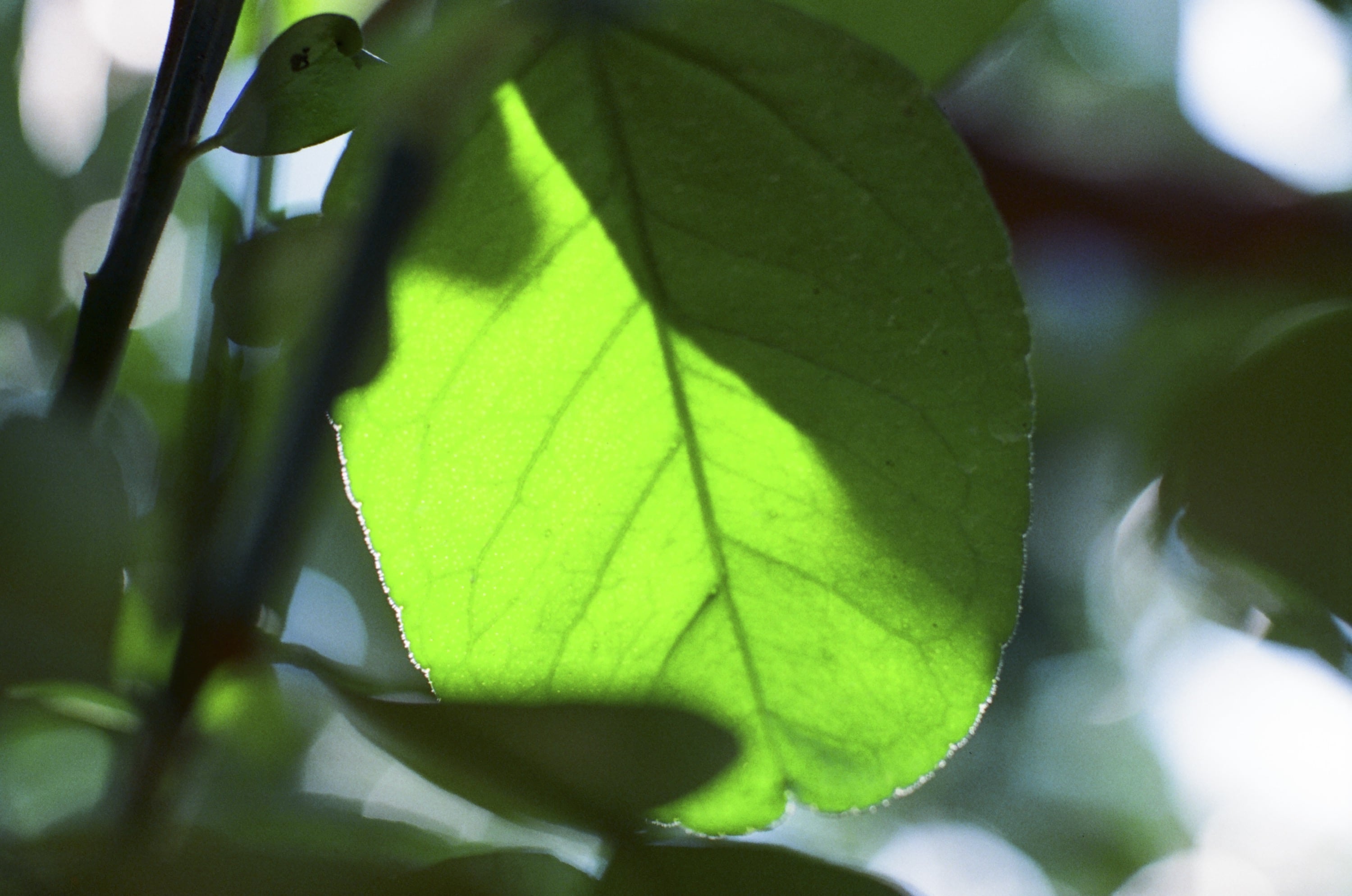 正對著太陽,無法用底片處理的高反差,現場每片樹葉都從背後的陽光透出了葉脈,非常美麗。