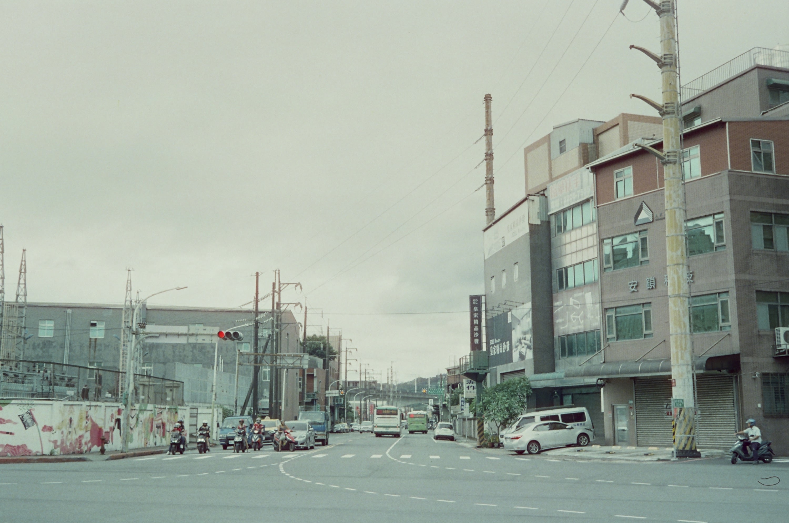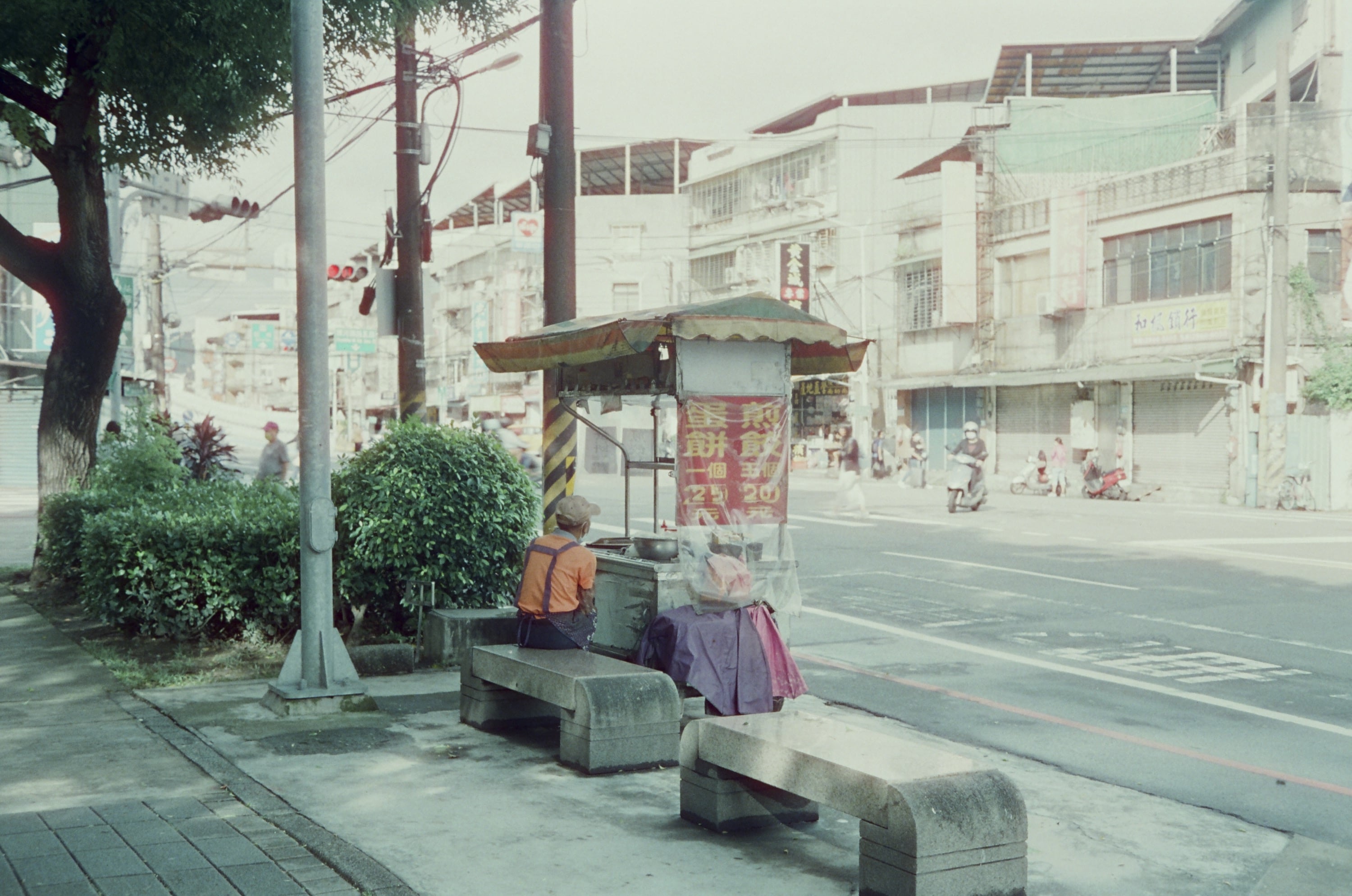 某天騎機車從板橋遠赴經樹林到新莊買蛋餅,只為了有個美好早晨的開始。圖為機車待轉中。這卷底片很多亂拍的照片,因為我真的很想趕快拍完,然後把這台相機賣掉!