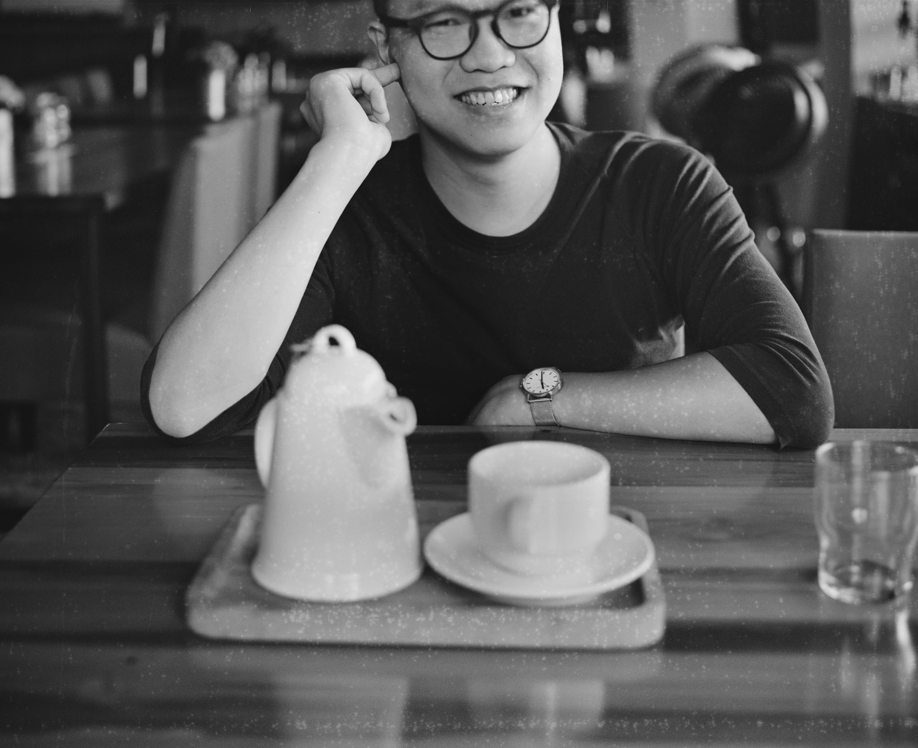本日相聚吃飯的好友,我們聊了很多。這張照片原本是拍直幅的,不過可能因為有重裝底片的關係,這是最後一張照片,它的後半格部分沒曝光到,因此掃瞄器沒掃到,裁切之後變成橫幅照片了。從剩餘的畫面可以看到,Pentax 6x7 75mm f4.5 Takumar 這顆鏡頭在近拍時的景深處理非常理想,畫面很有層次,我很想私心地說「6x7 才是真正的中片幅!」畫面遼闊到你裁切之後還能看到中片幅那獨有的層次。