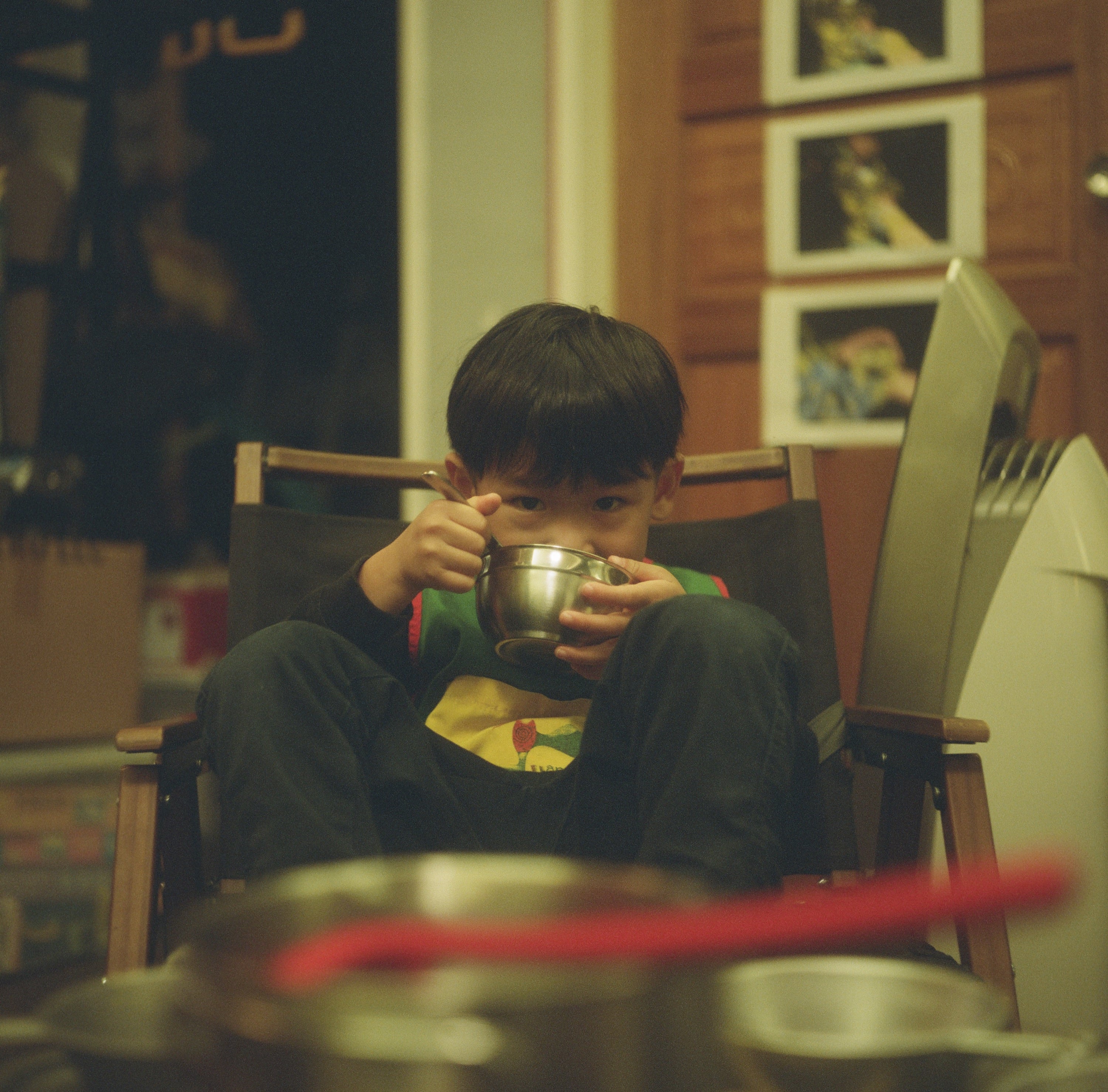 我請兒子借我測試一下 Olympus Flex 的重曝效果。原本以為相機抓得很穩的我,想不到還是些微動到了一下,虧我還把相機放在桌子上拍攝。