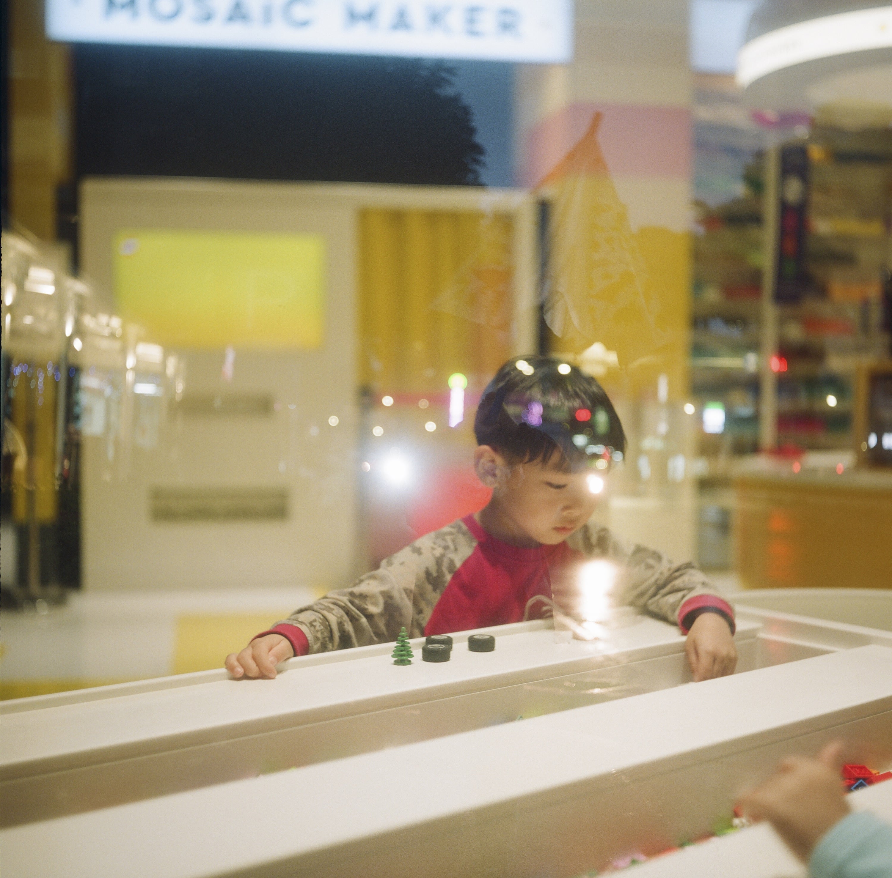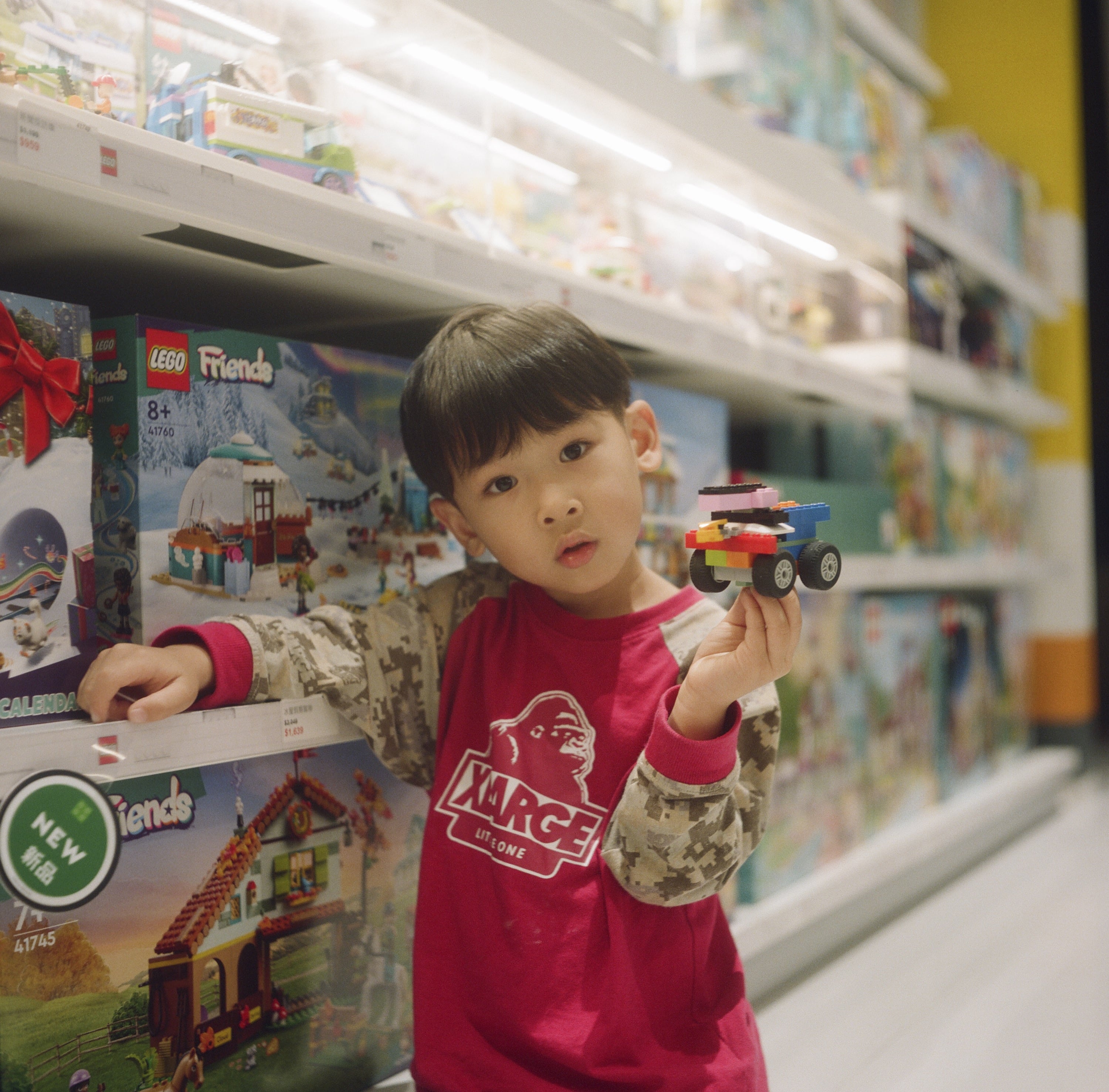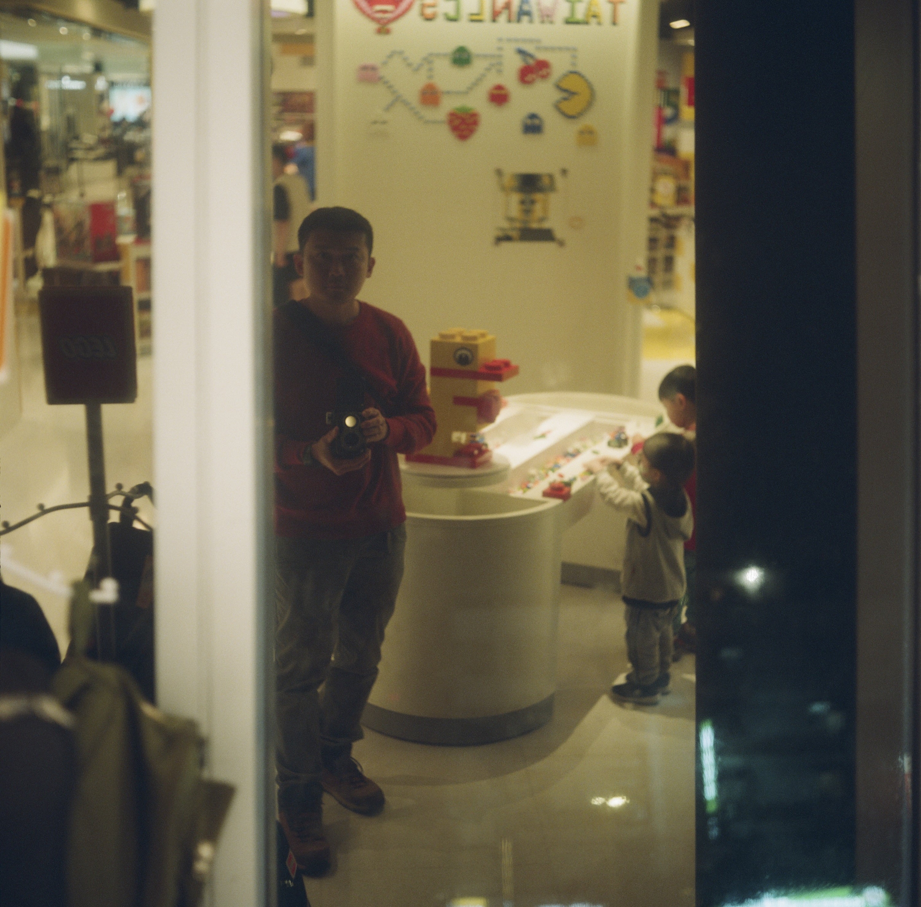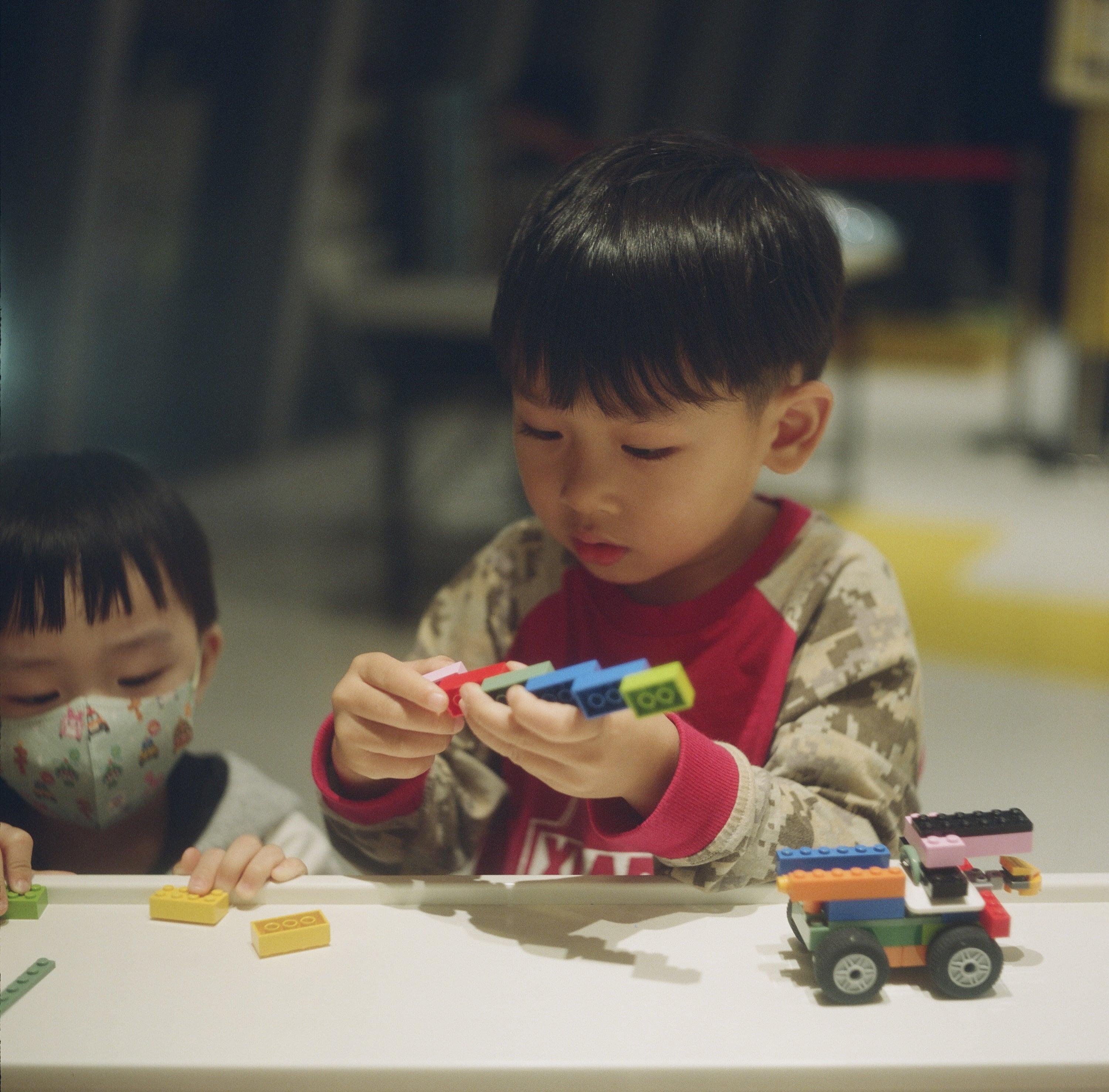 這天下課帶兒子去板橋大遠百逛樂高店,兒子正在跟其他陌生小孩一起玩。