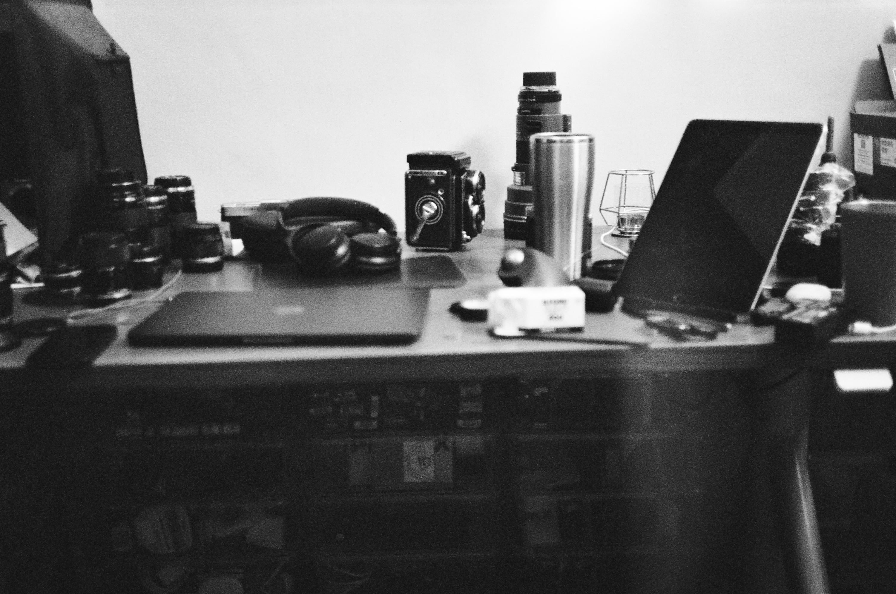 這是使用這台 Olympus C-AF 相機所拍攝的第一張照片,當時跟它還不熟,還不知道要看對焦指示燈,所以失焦了,因為我原本的對焦點是放在桌子前緣的 Ilford XP2 Super 400 底片空盒上。