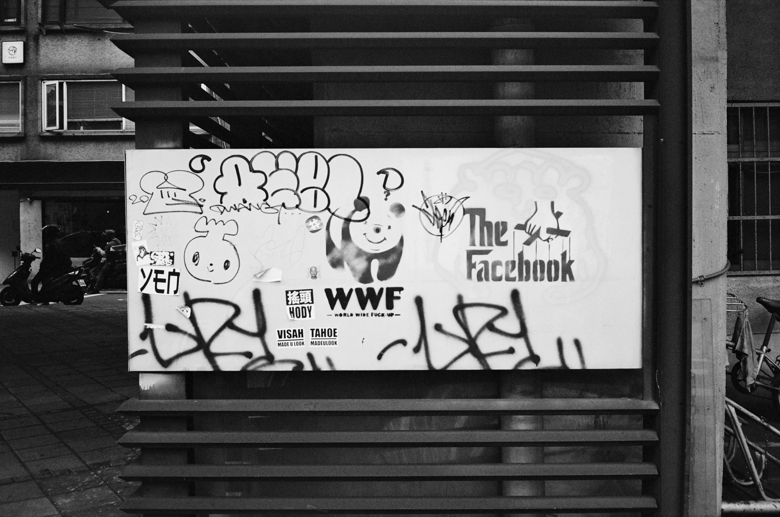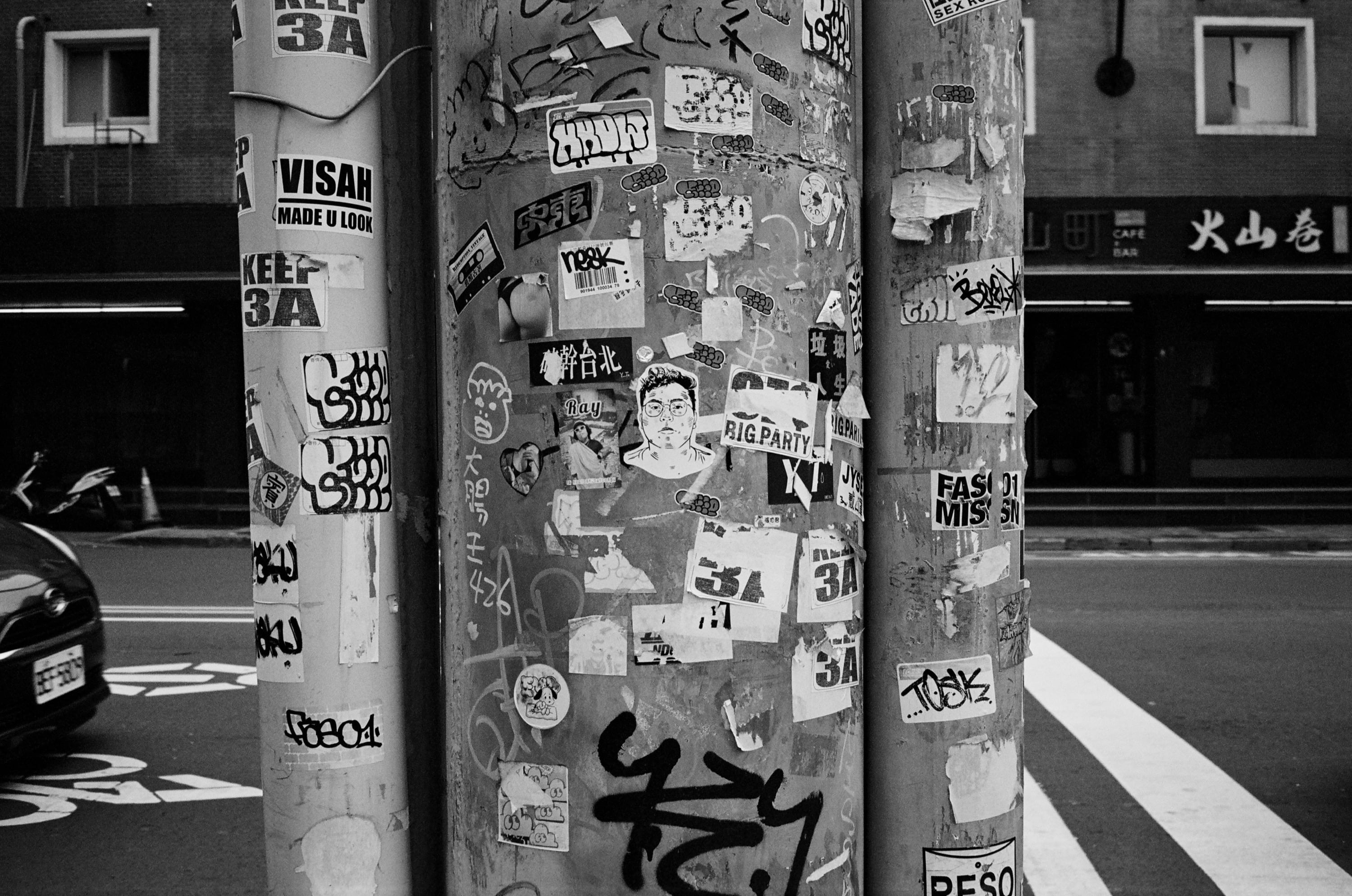 在台北華山附近等紅綠燈,覺得這邊的貼紙好有趣。