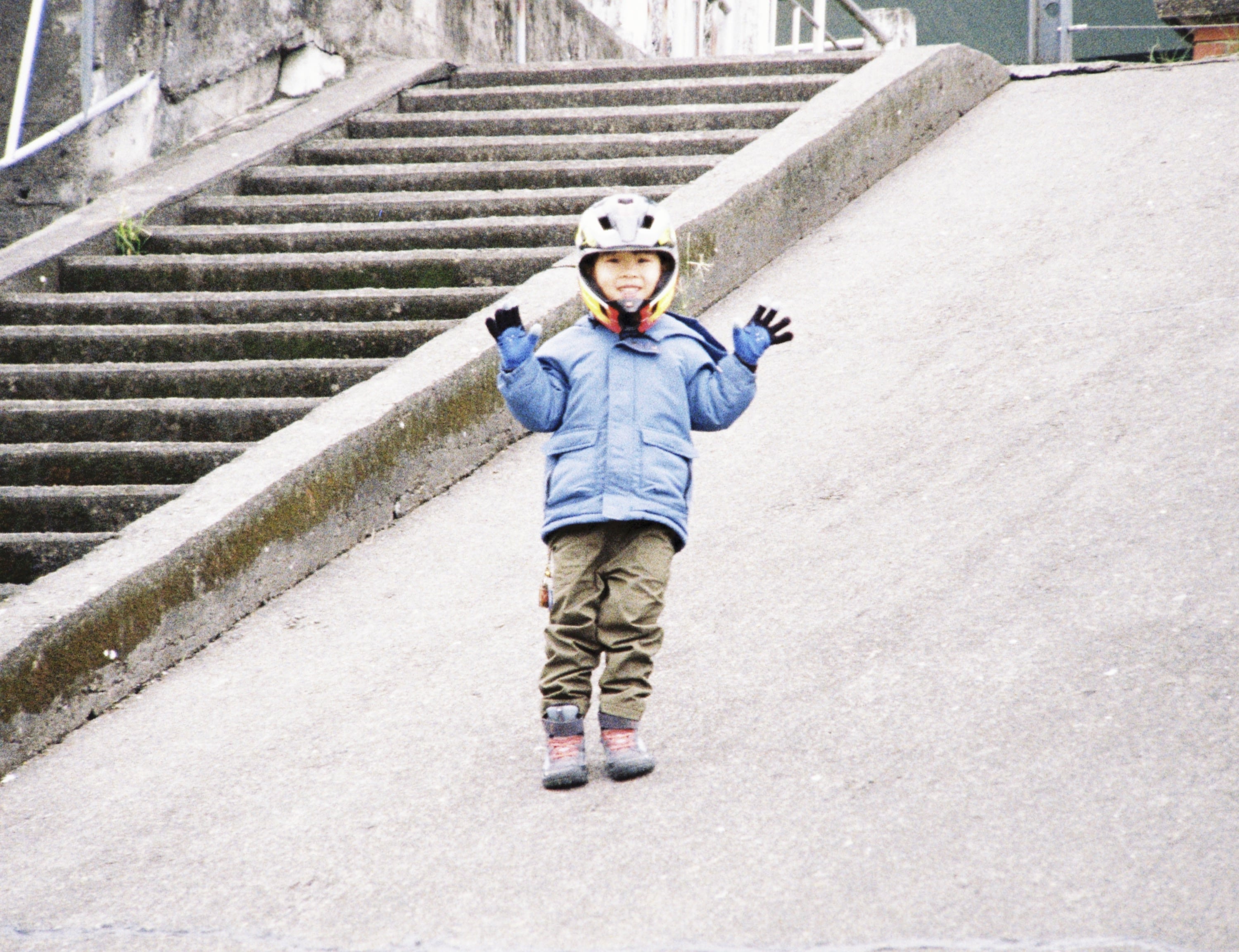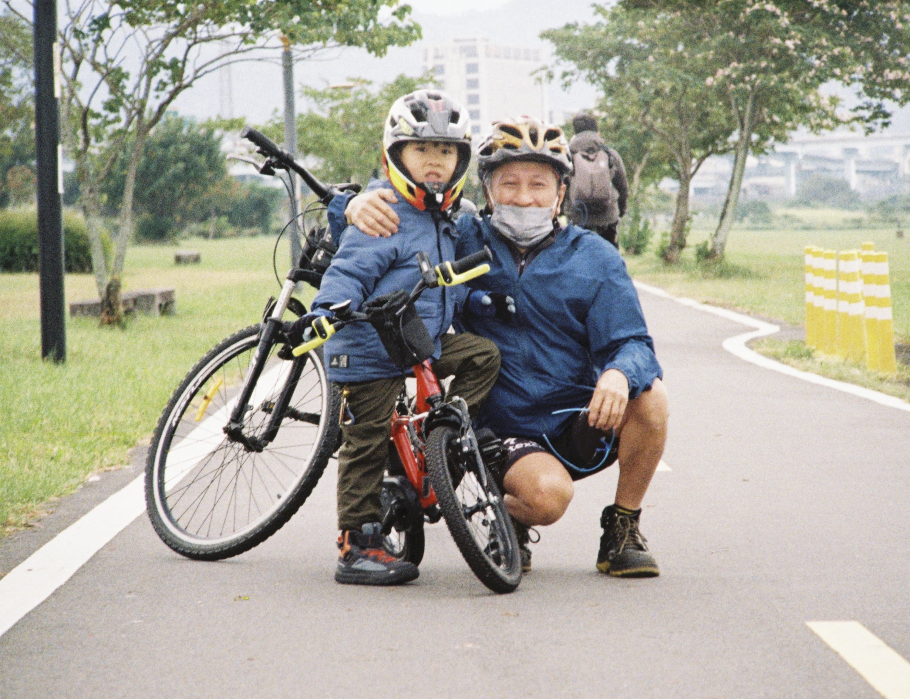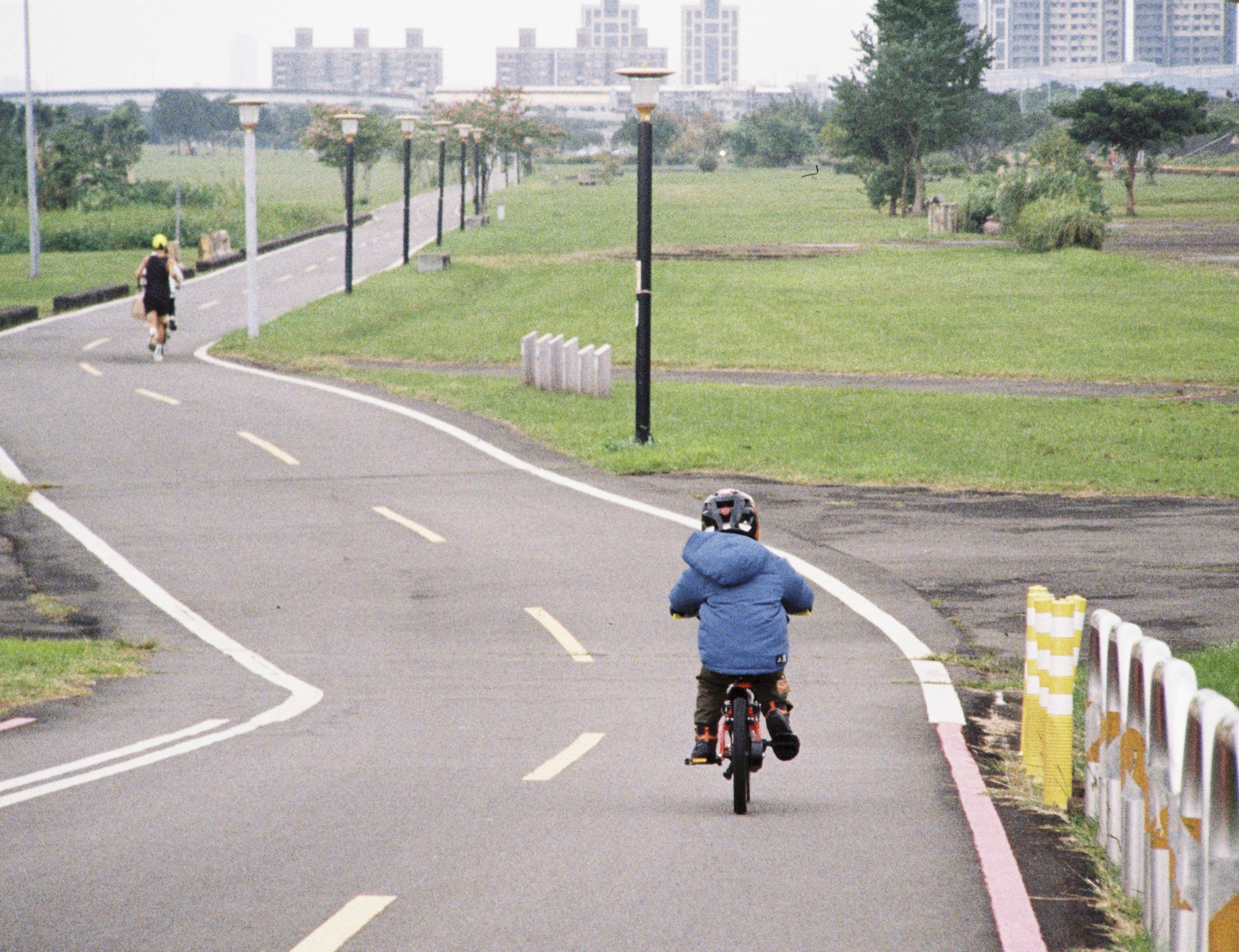 某天週末,我在出門跑步前兒子醒來了,就說要跟我一起去。於是我跑步,他騎腳踏車,這是我們在河濱公園一處斜坡上所拍攝的照片。