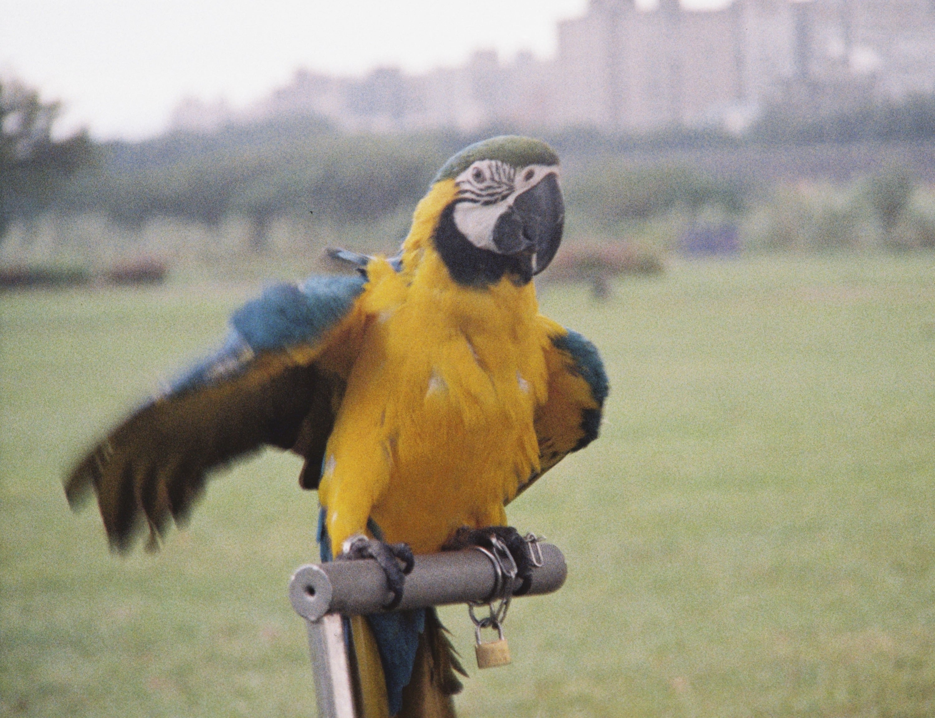板橋河濱公園這裡,固定有一個地方都有金剛鸚鵡飼養者的聚會,今天又碰到了,這是 20 幾隻的其中一隻。
