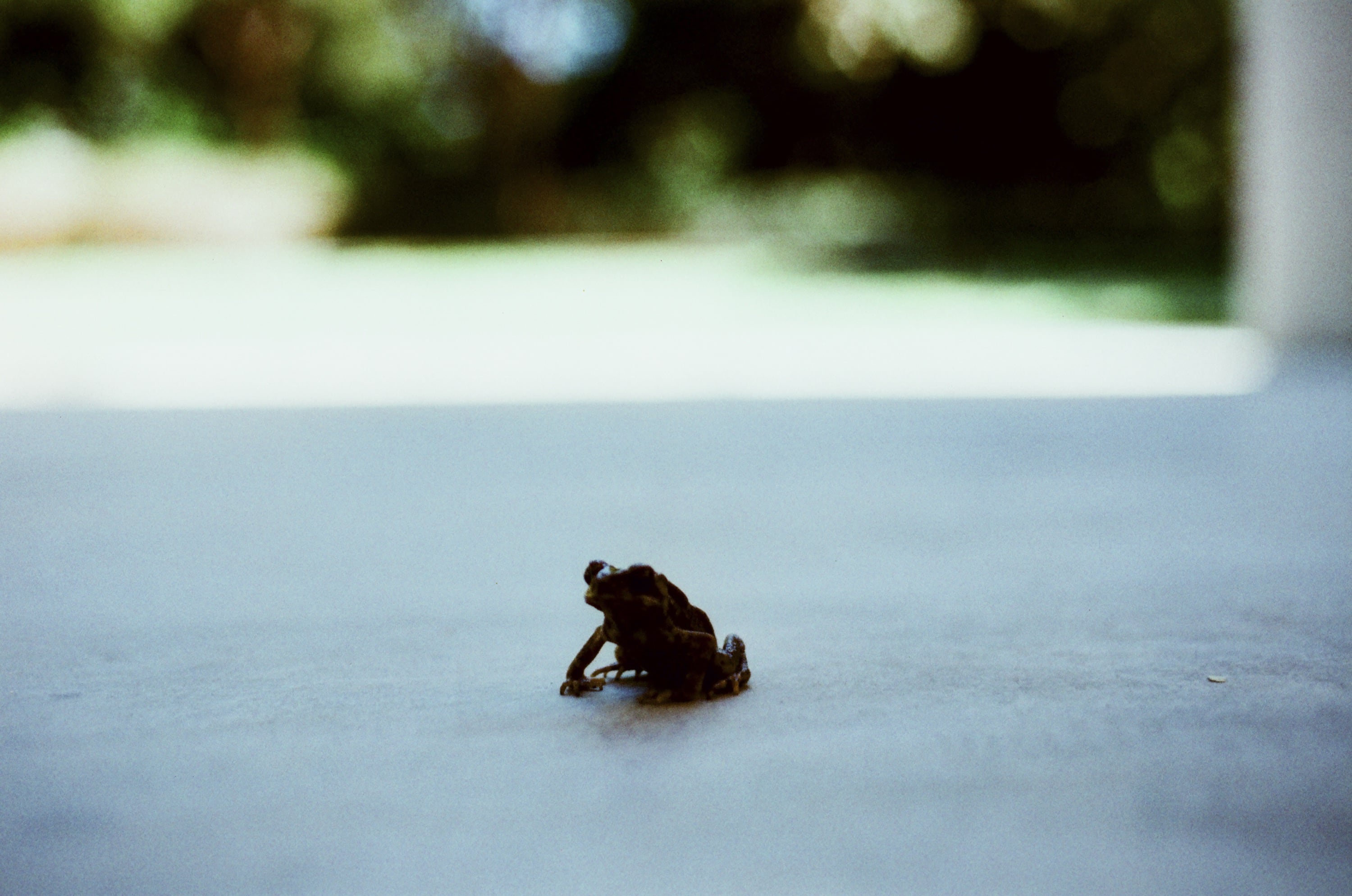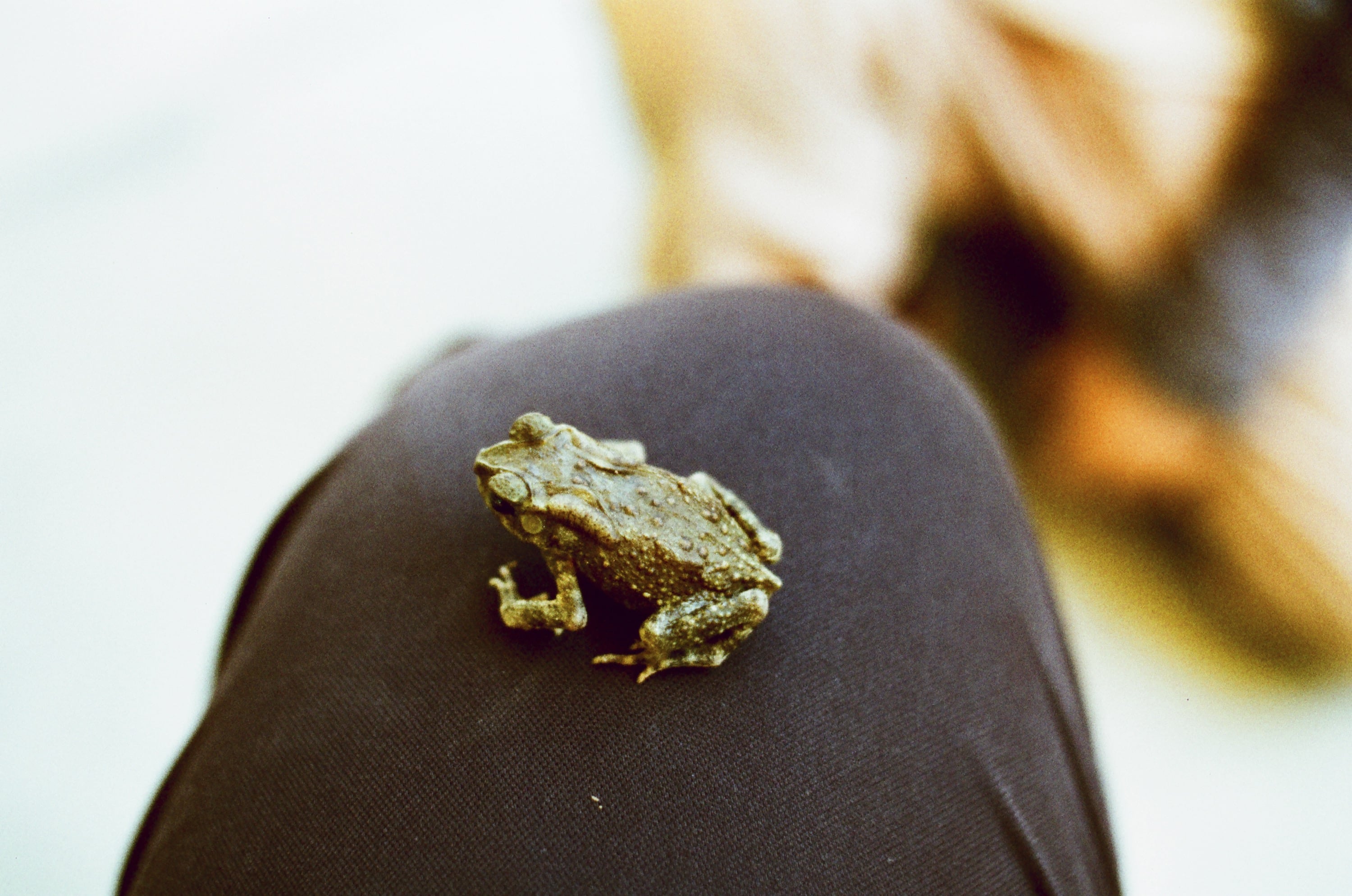 和兒子從公園離開時,在半路發現的黑眶蟾蜍。之前上生態課聽老師說,要抓青蛙或蟾蜍時,可以捏住牠們的後腳,可以避免人體手部的溫度直接接觸到牠們的身體,以減少牠們的不適。