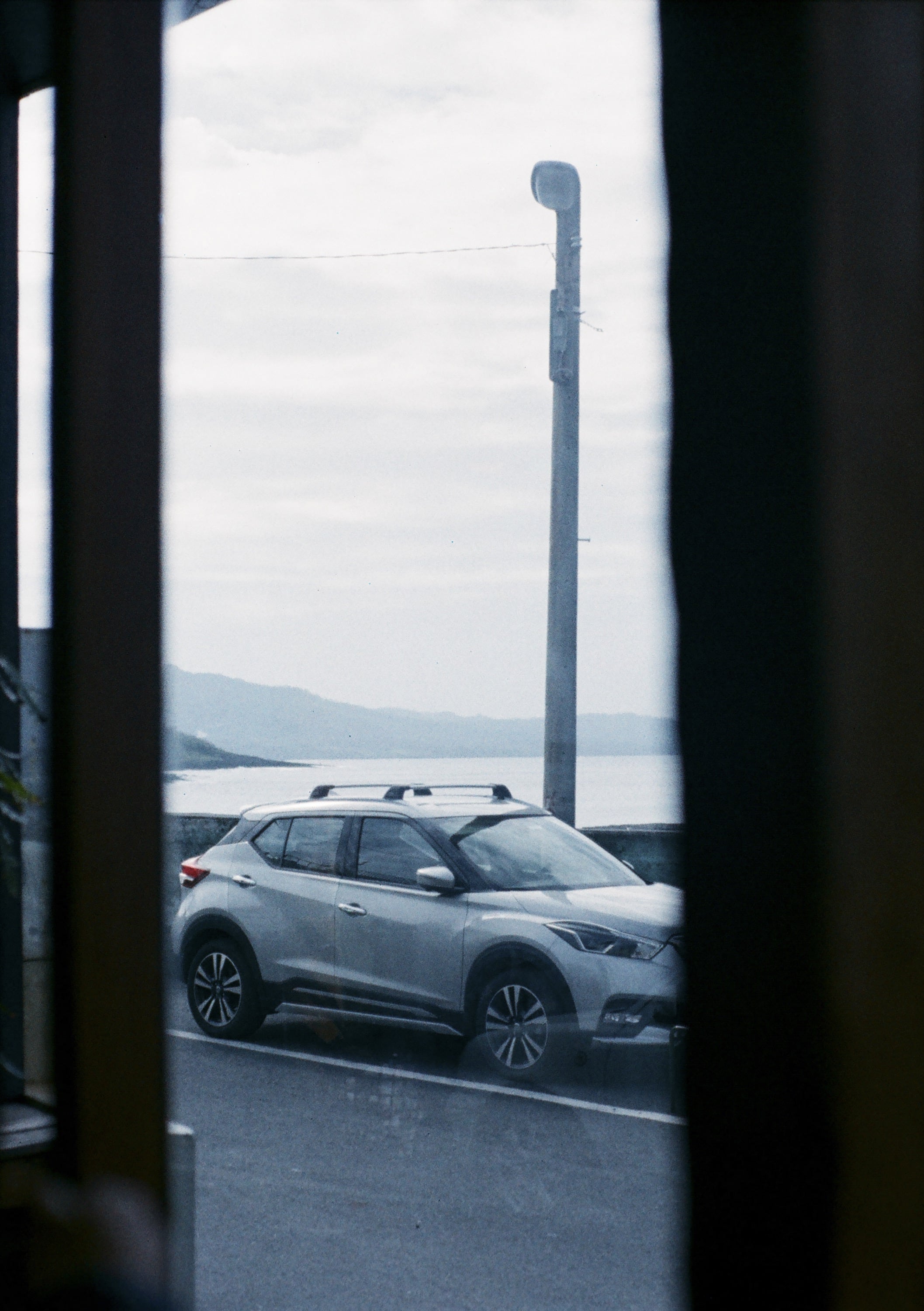 坐在民宿望向窗戶,就是海。畫面中那台是我們家的車,Nissan Kicks 2019 年版。