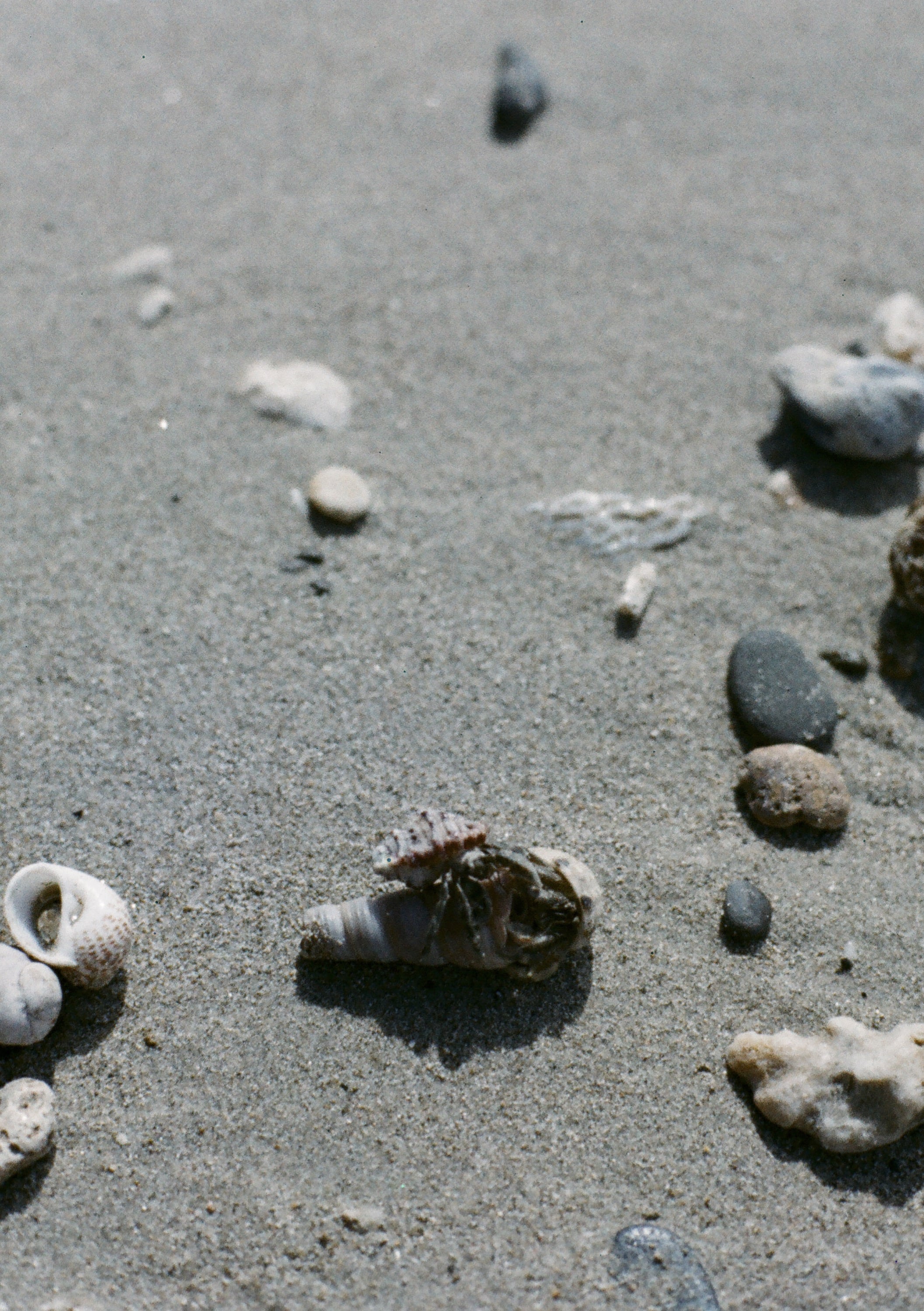 這卷底片主要紀錄前陣子我們家跨年,多待在墾丁一天的日子,那個晚上住到很棒的民宿,位於萬里桐的「聽著海聲 迷路旅居」,然後隔天早上我們前往屏東海生館附近的後灣在冬季尋找寄居蟹的過程,因為是延後一天離開墾丁北上,因此我們沒有遇到北返車潮的壅塞,就這麼一路開到了嘉義,然後又在嘉義住了一晚,為的是隔日要去嘉義大學的「新嘉大昆蟲館」參考,在新嘉大昆蟲館也碰到很熱心的導覽員,是個很棒的地方。