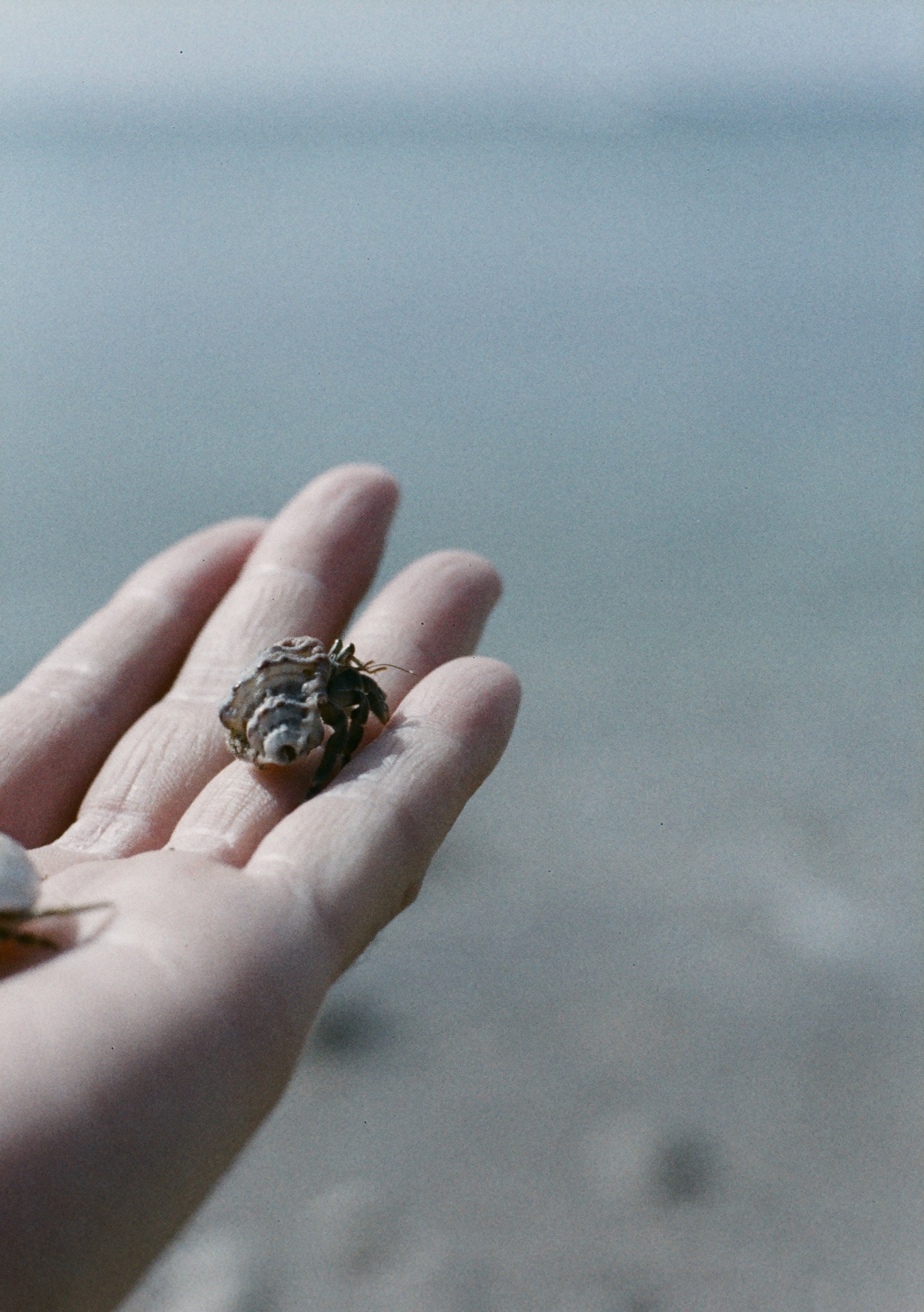 寄居蟹本人和手的比例尺(提醒:到墾丁請勿抓寄居蟹喔!絕對禁止,因為牠們數量稀少,正在復育中)