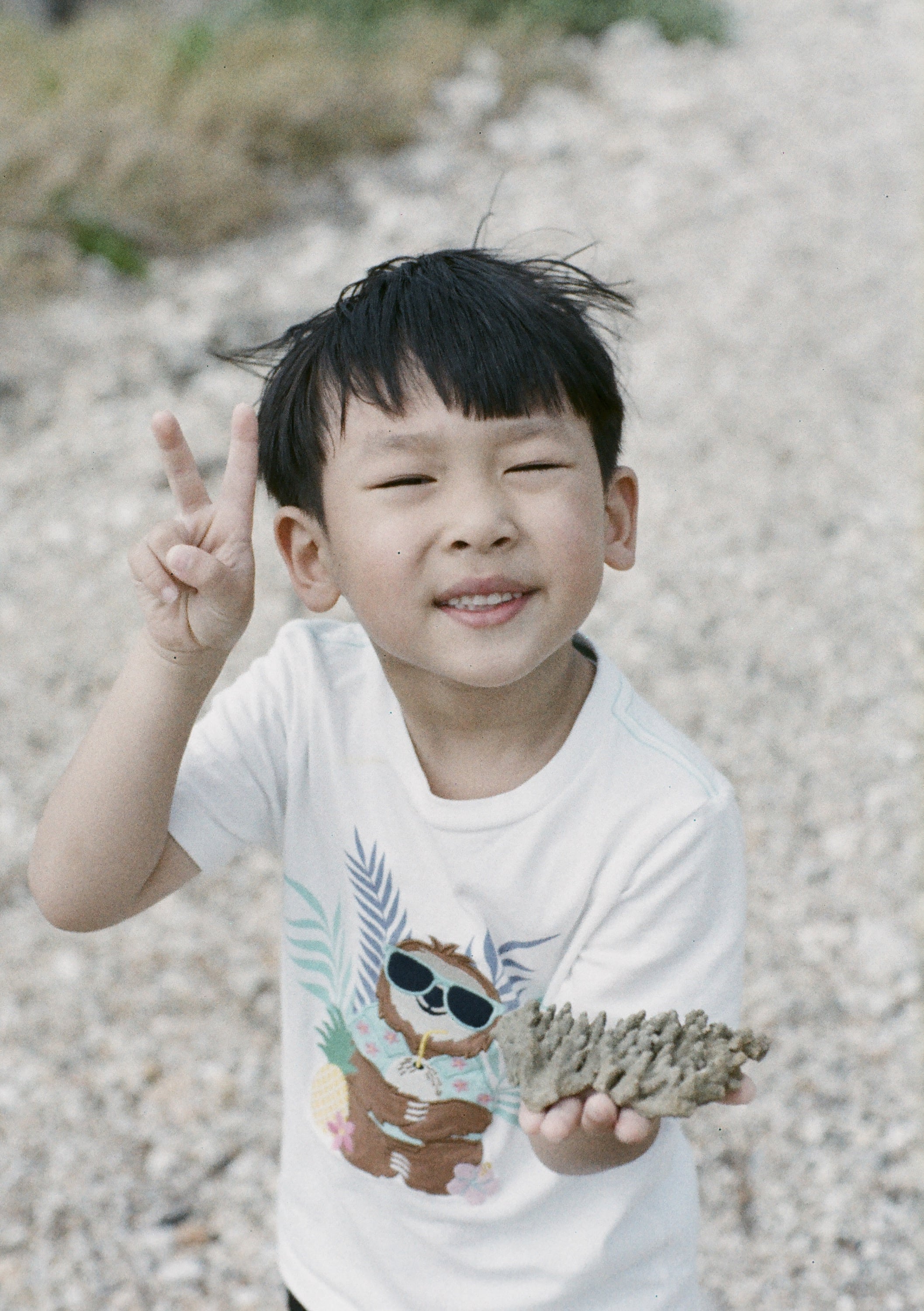 兒子找到的一個珊瑚(純拍照留影,我們沒有帶走)。