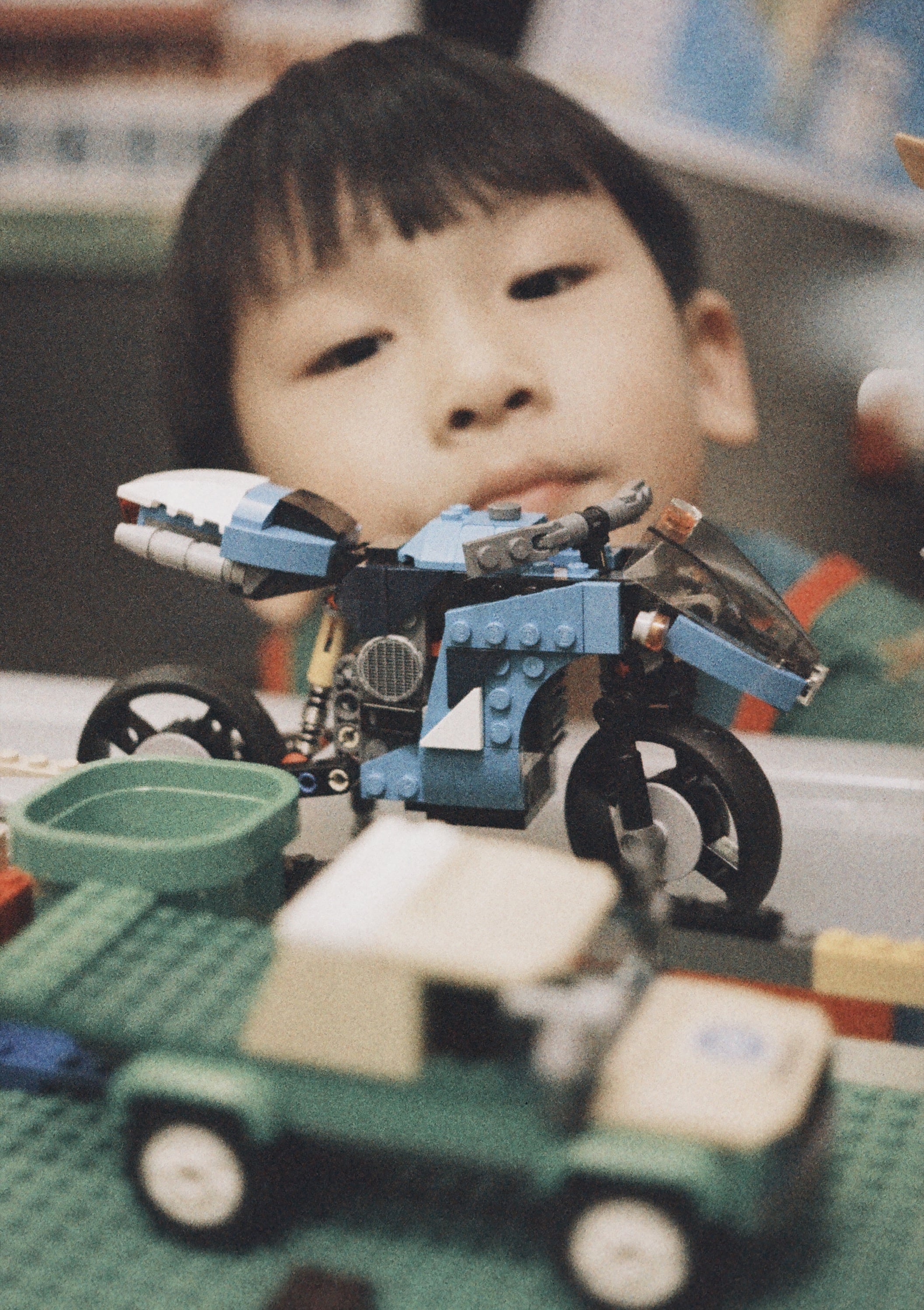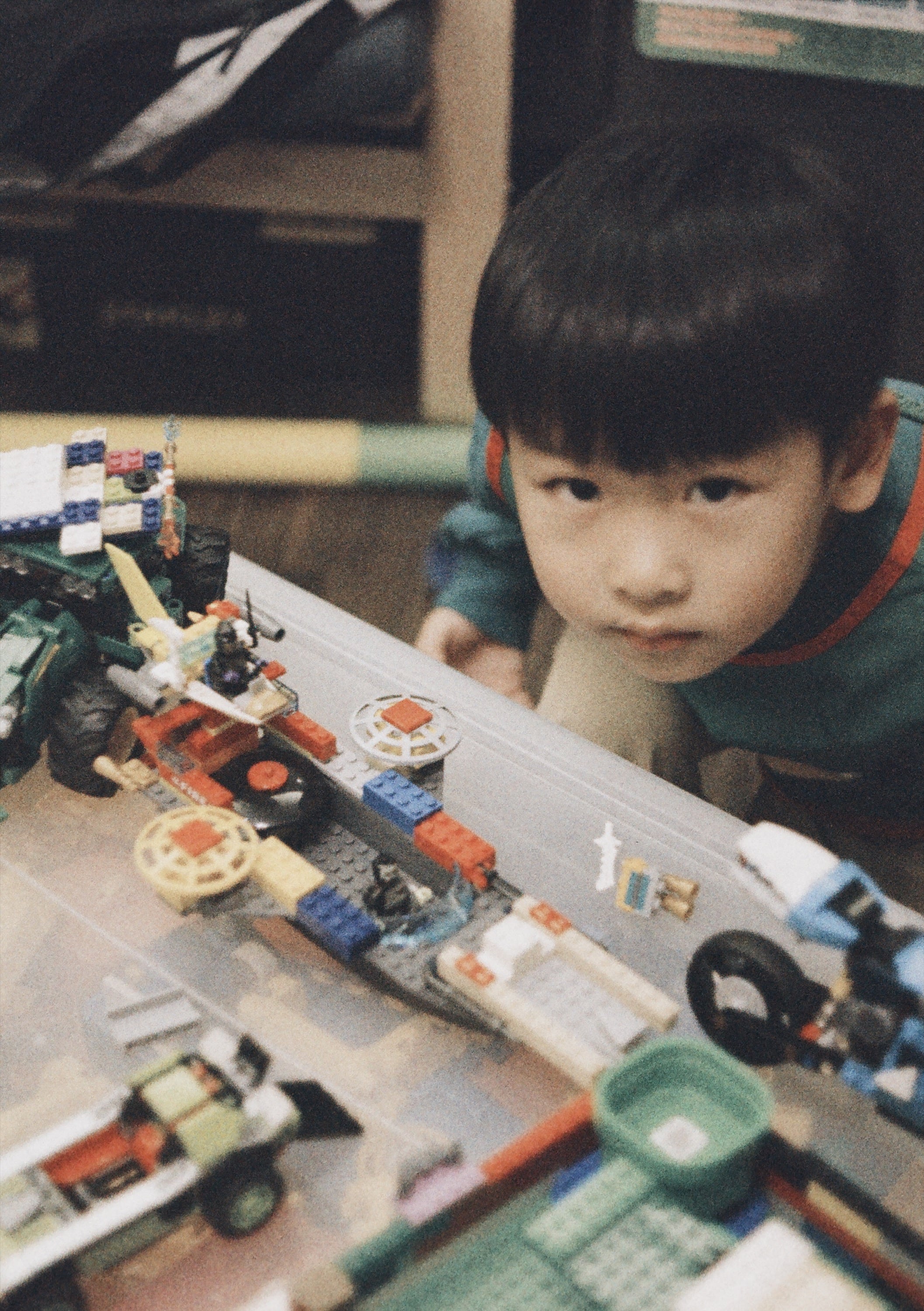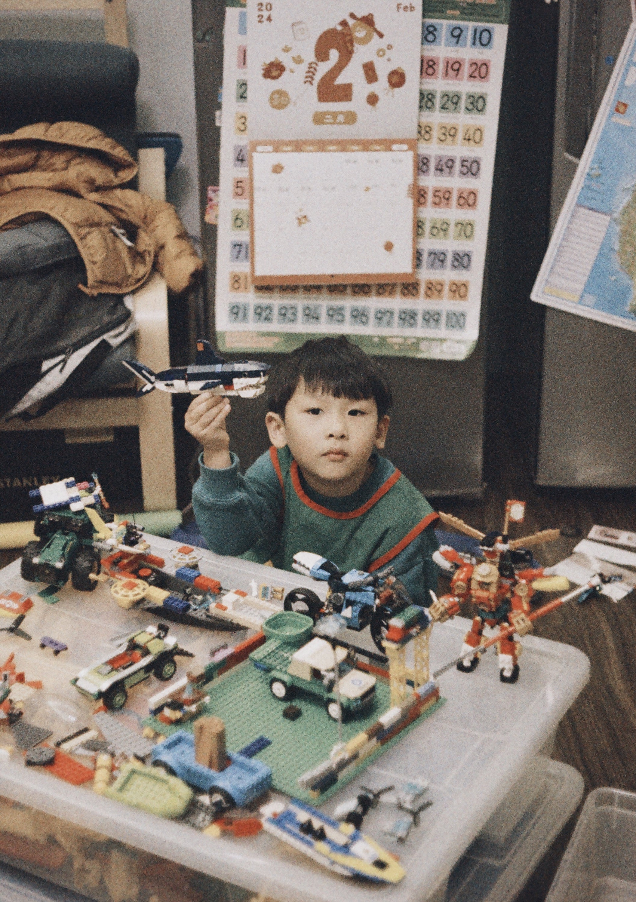 兒子表示要跟他自己拼的樂高合影。