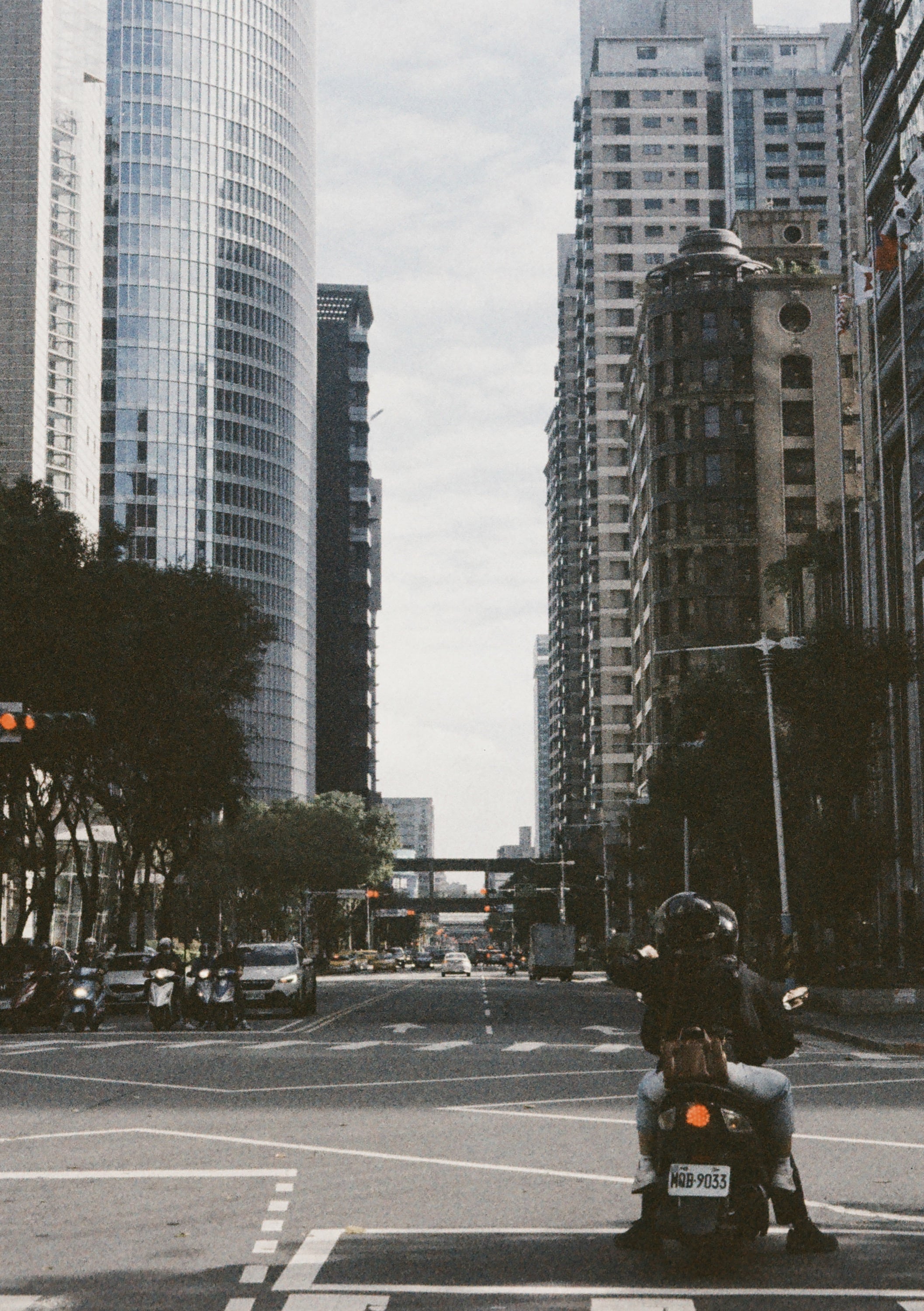 我很喜歡板橋縣民大道隔壁的中山路一段,因為電氣地下化的緣故,基本上路上沒什麼電線,整條馬路拍過去,可以獲得乾淨的天空、建築以及車流。