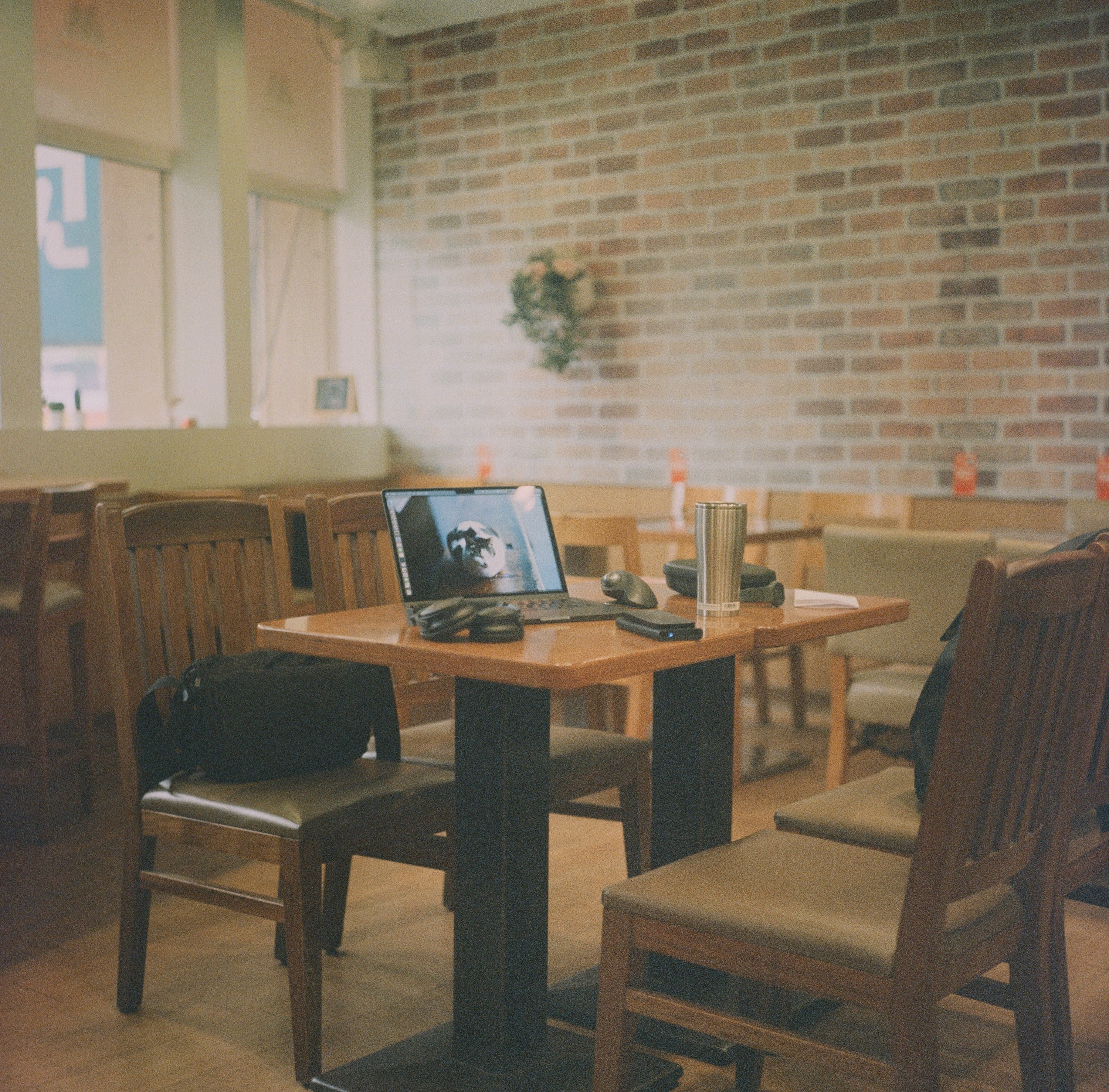 我最近幾年在外面工作的地點都是摩斯漢堡,這家是我常去的一家。那天我發現怎麼突然客人都走光了,於是就起身拍了張照片,非常意外手持 1/30 快門竟然還能拍出如此清晰的照片,原來 Rolleiflex 的角落快門是可以練習的,只要非常專注地按下快門,機身就不會在你按下快門的瞬間旋轉。其實回想起來,我的第一卷 Rolleiflex 就沒有機身旋轉手震的問題。