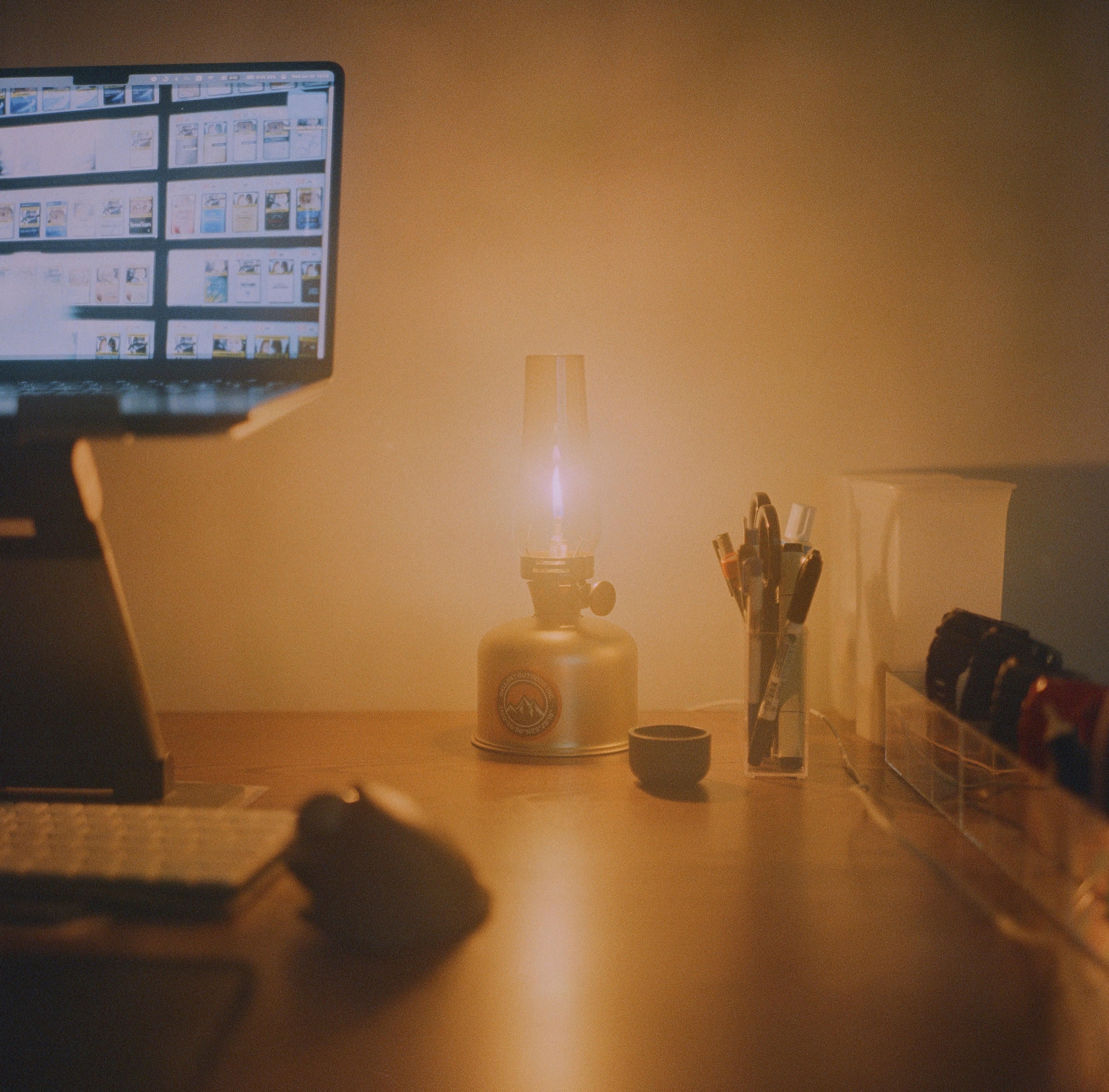 最近把工作陪伴用的燈,從煤油燈換成了瓦斯燈,單純換換擺設而已。這顆燈是經典的 Coleman 盧美爾瓦斯燭燈,可以任意調整火焰大小亮度是非常方便的設計。當初拿到這種照片時,我盯著看了許久,因為我覺得那火焰,就好像在我眼前重現了一樣,我對於 Rolleiflex 2.8D Zeiss Planar 重現場景的能力感到十分的佩服。真的很好奇,這世界上的雙眼相機,是不是只有 Rolleiflex 和非 Rolleiflex 這兩種呢?