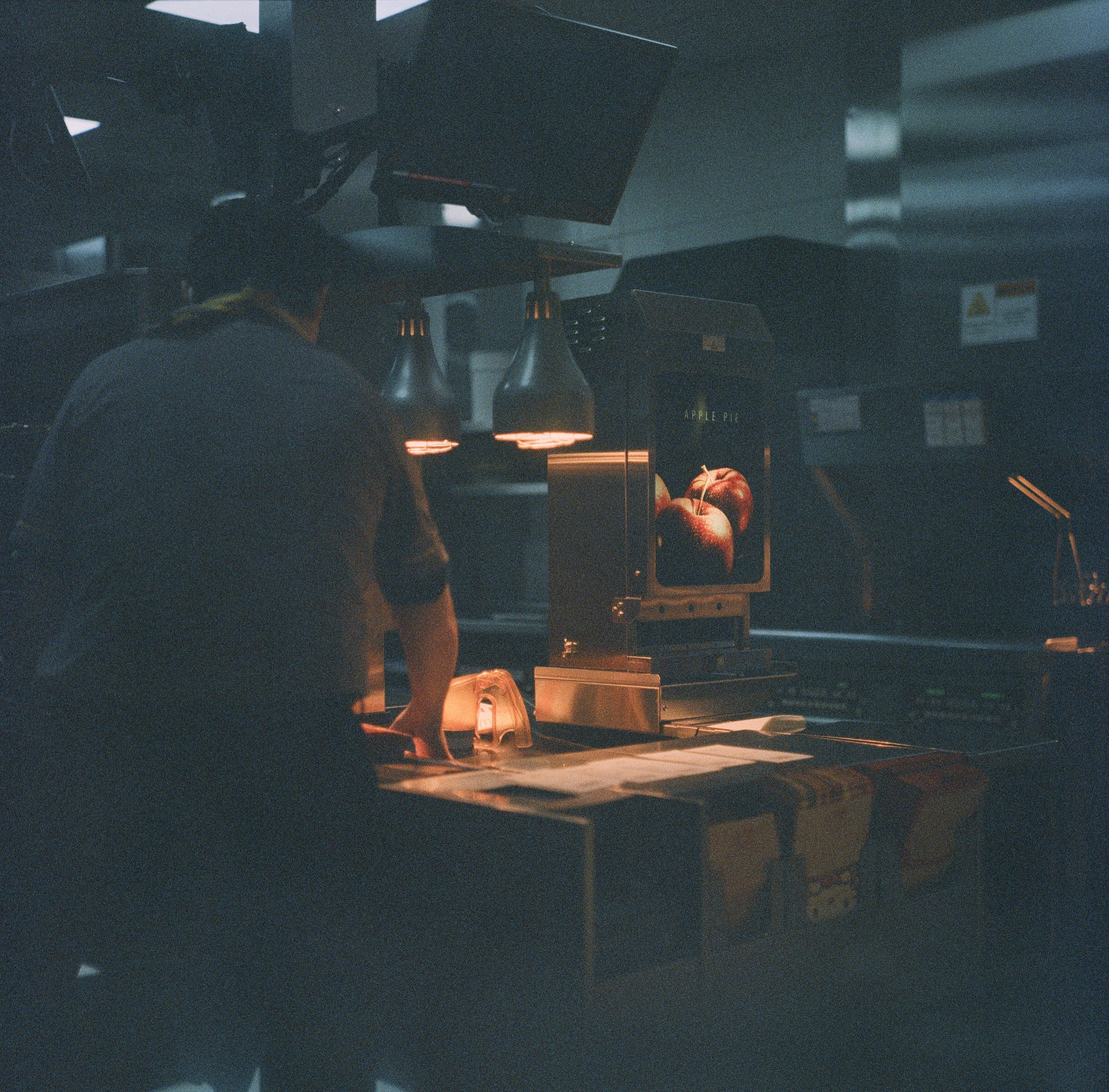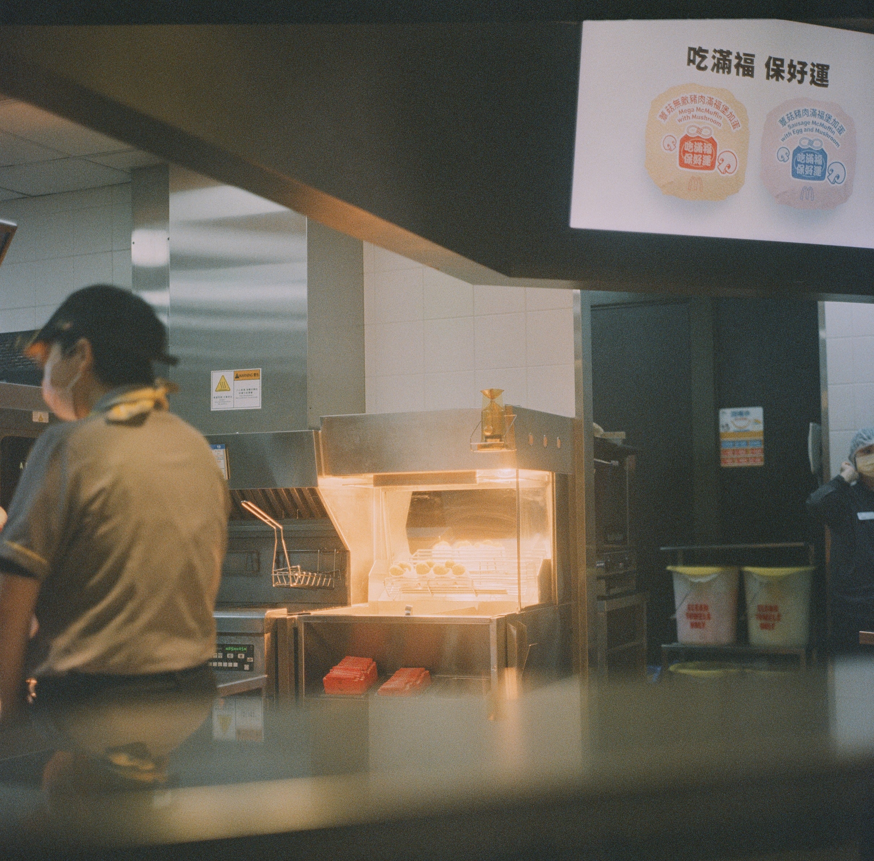 這天,我開車下台中參加客戶的尾牙,中途我在關西休息區吃麥當勞吃早餐。這張算是沒有經過麥當勞同意偷拍的(抱歉了,麥當勞),你可以留意畫面中間的油炸鍋所散發出來的光線層次,相當細膩,也相當難以解釋,也或許這是過期底片做了正片負沖後獨有的表現也說不定。