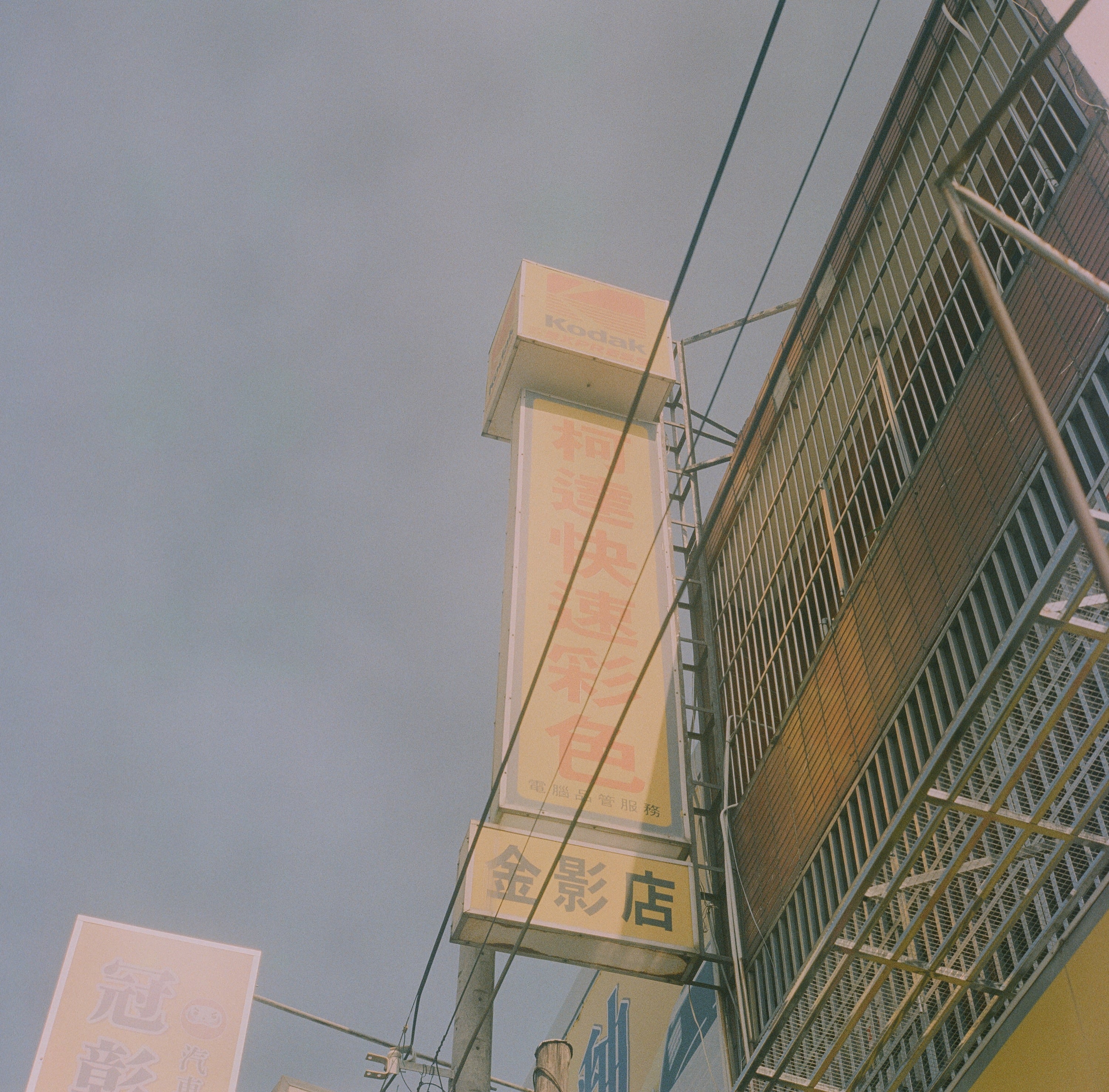 既然都開車從台北下台中了,就「順路」去位於彰化大村鄉的金影攝影拿之前寄放的底片們,原本想在金影店內拍照的,不過我開不了口,因此拿完底片,買了一些底片之後,我就走了。離開前,還是幫他們的招牌拍了張照片留影。
