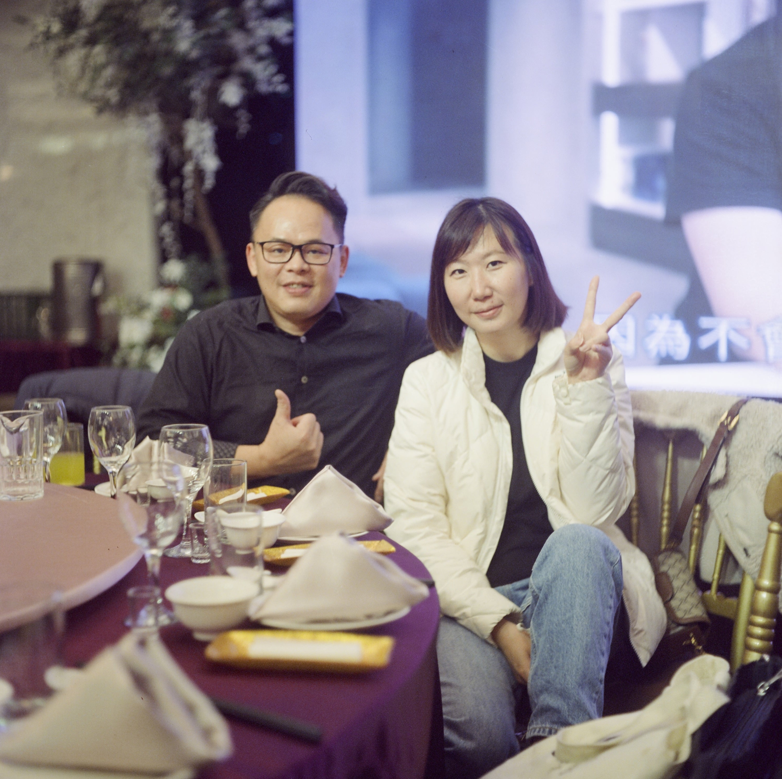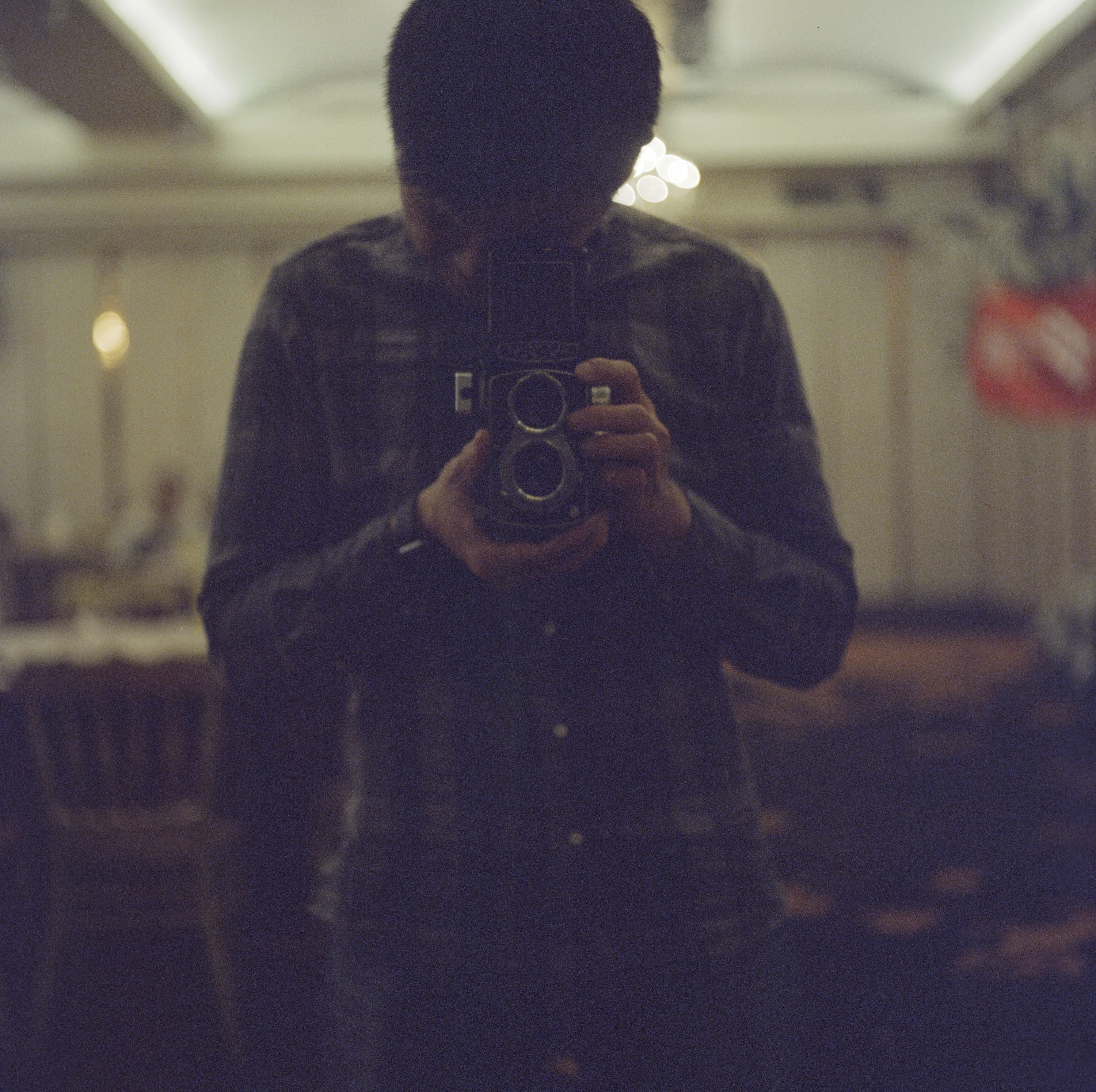 這卷底片主要記錄了某天參加客戶尾牙還有一些日常畫面,真的很日常,我想,雙眼相機方便的地方大概就是它自帶腳架了吧?因為它可以直接從上往下看,相機可以直立在任何表面上進行拍攝。像我將相機帶出門的話,如果是這種腰平取景的雙眼相機,都是直接把郵差包揹在前面,然後再把雙眼相機靠在郵差包上進行拍攝,就可以達到穩定防震的效果了。