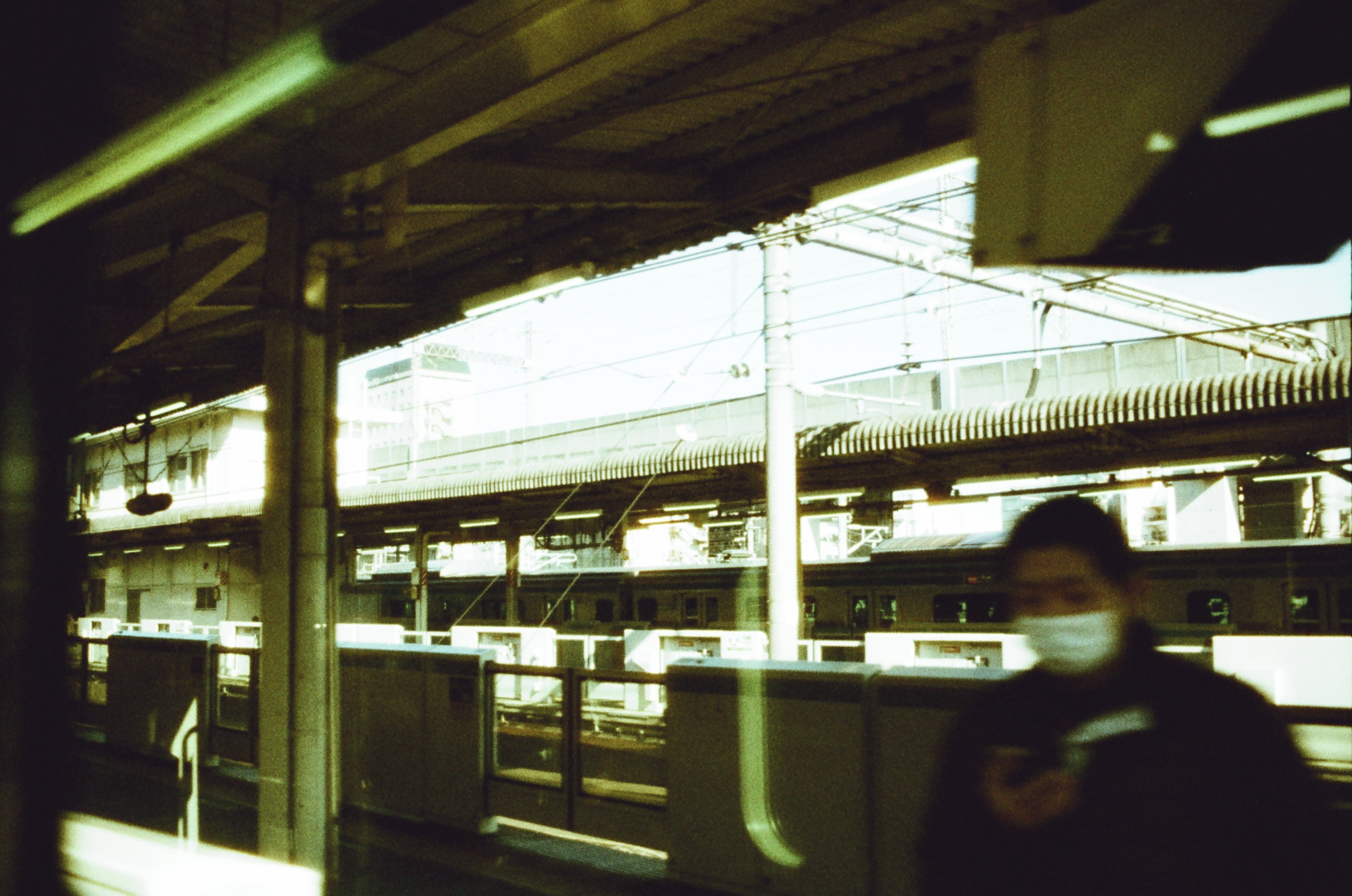 在列車內拍向列車外。有鑑於之前在名古屋拍照曾經被制止的經驗,這次在東京拍照就完全以尊重他人的標準在拍,如果發現鏡頭內有陌生人,就會主動迴避。阿這張照片還是不小心拍到陌生人了,因為這是在列車行進間拍的,在列車有點速度的情況下,是也很難避免。