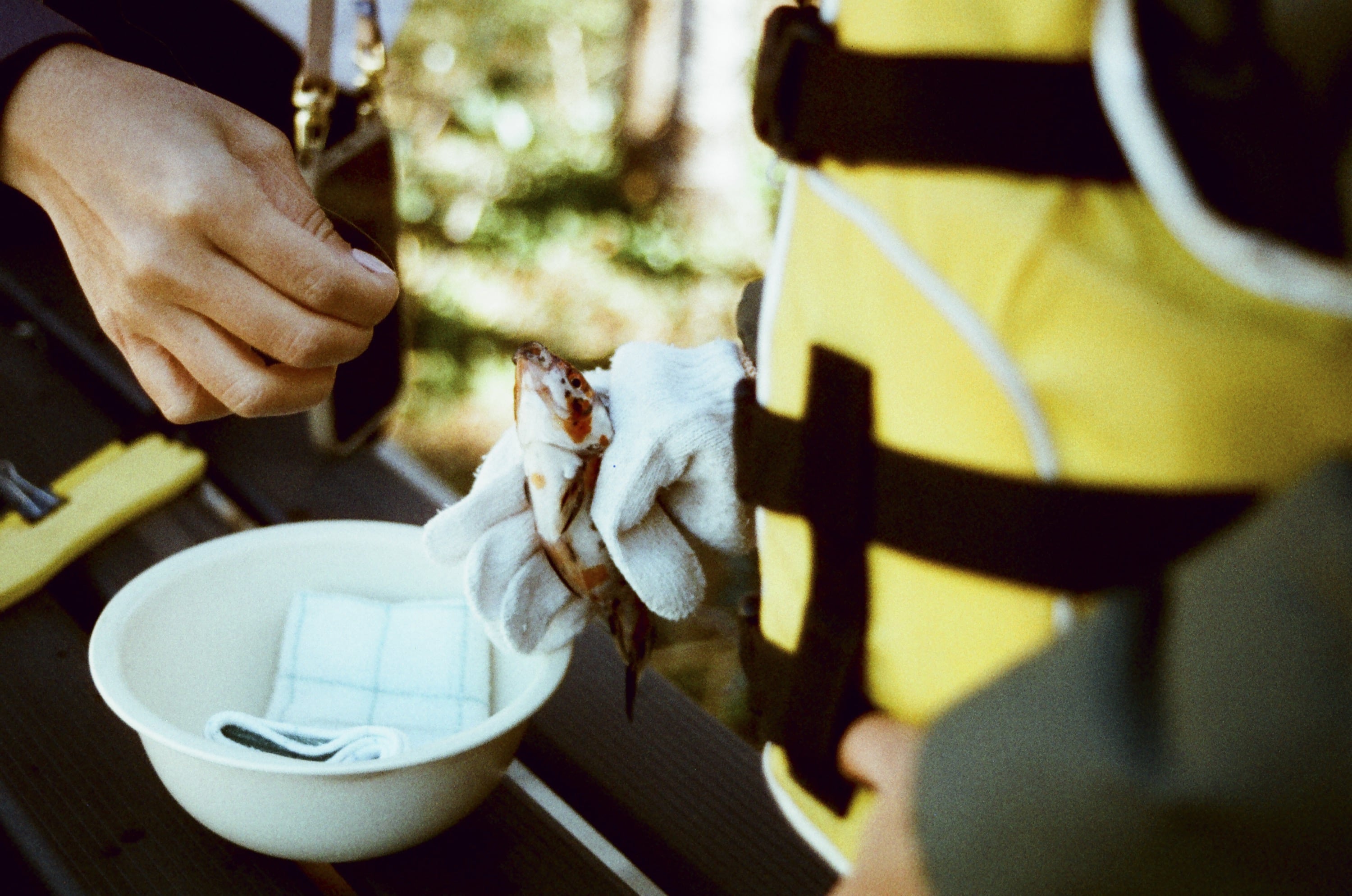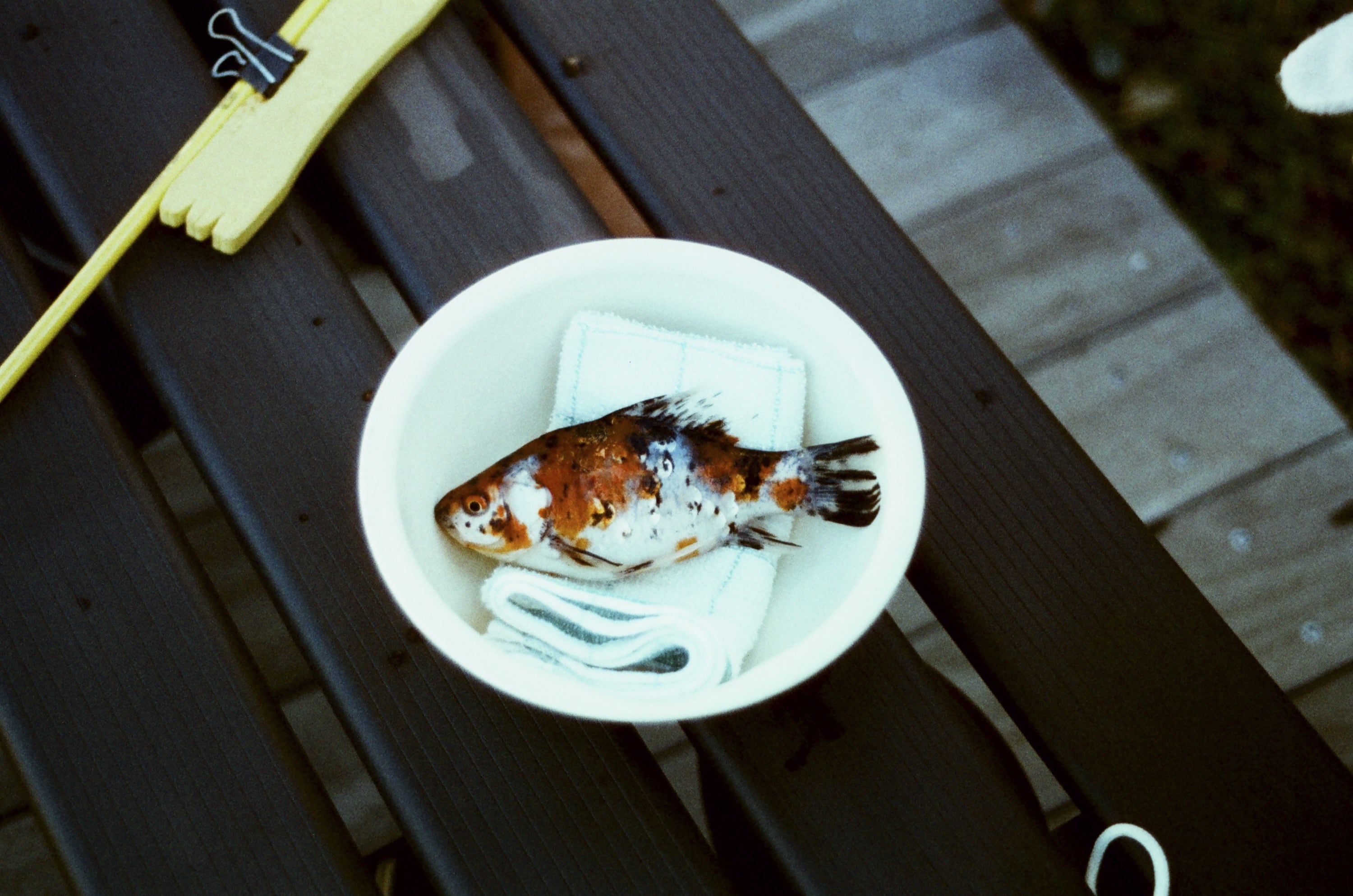 原本上次拍完一卷 Harman Phoenix 200 後,想再拍第二卷看看,結果發現網路上都買不到了,趁著有次從台北開車到彰化金影攝影拿沖掃好的底片時,現場隨手買了一卷,就帶來日本使用了,一切都是緣分。這張照片是我太太釣到的魚,她一人就釣了四條,我和兒子則是一條都沒釣到,只能說我太太是練武奇才了。