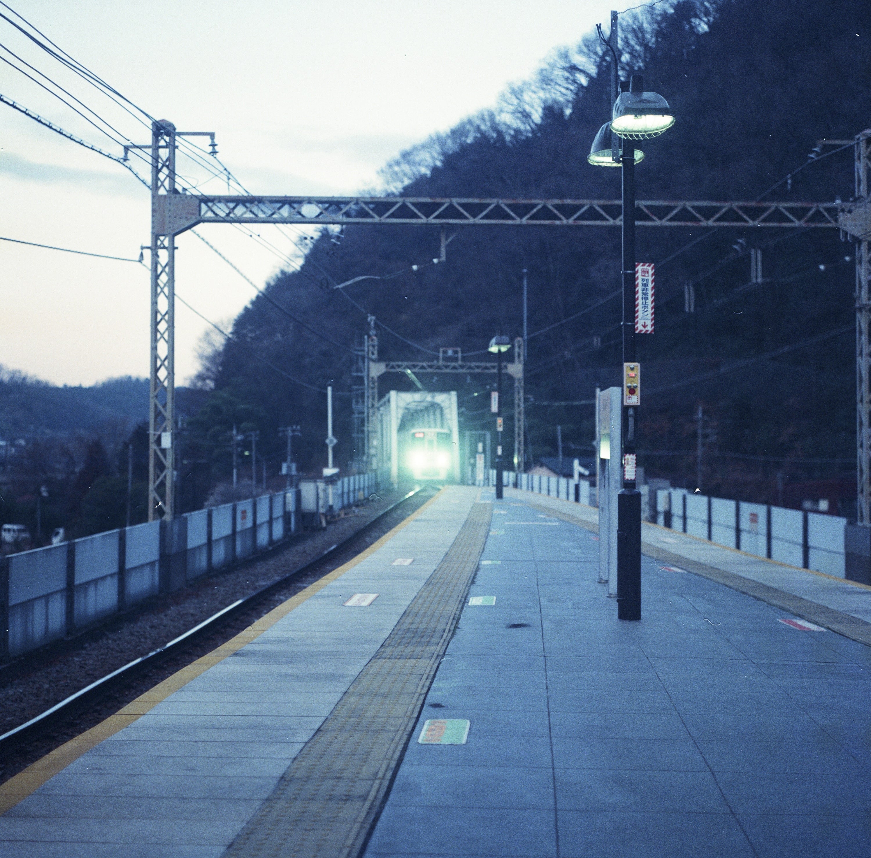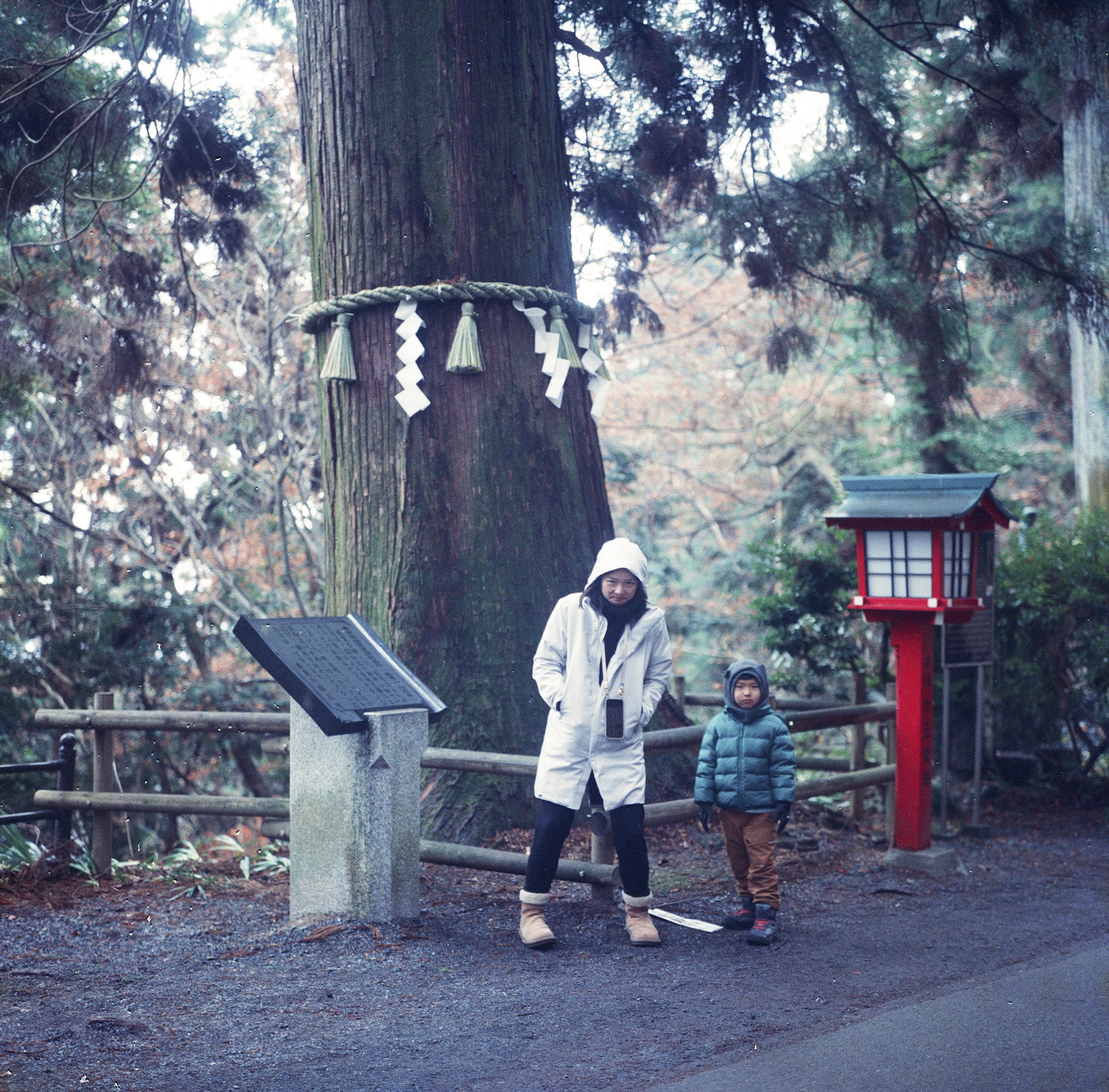 這卷底片的拍攝內容,是接續上一卷,東京之旅的高尾山行程。因為這卷底片是 Kodak 500T/5219,本身色溫就低,只有 3200K 而已,我很久沒有看過這種忠於原始色溫的照片,相當有趣,看起來整個高尾山行程都變得陰鬱藍調,不過實際上那天是個開心的行程,而且小孩有走完全程,這是我們做家長最感到欽佩的。