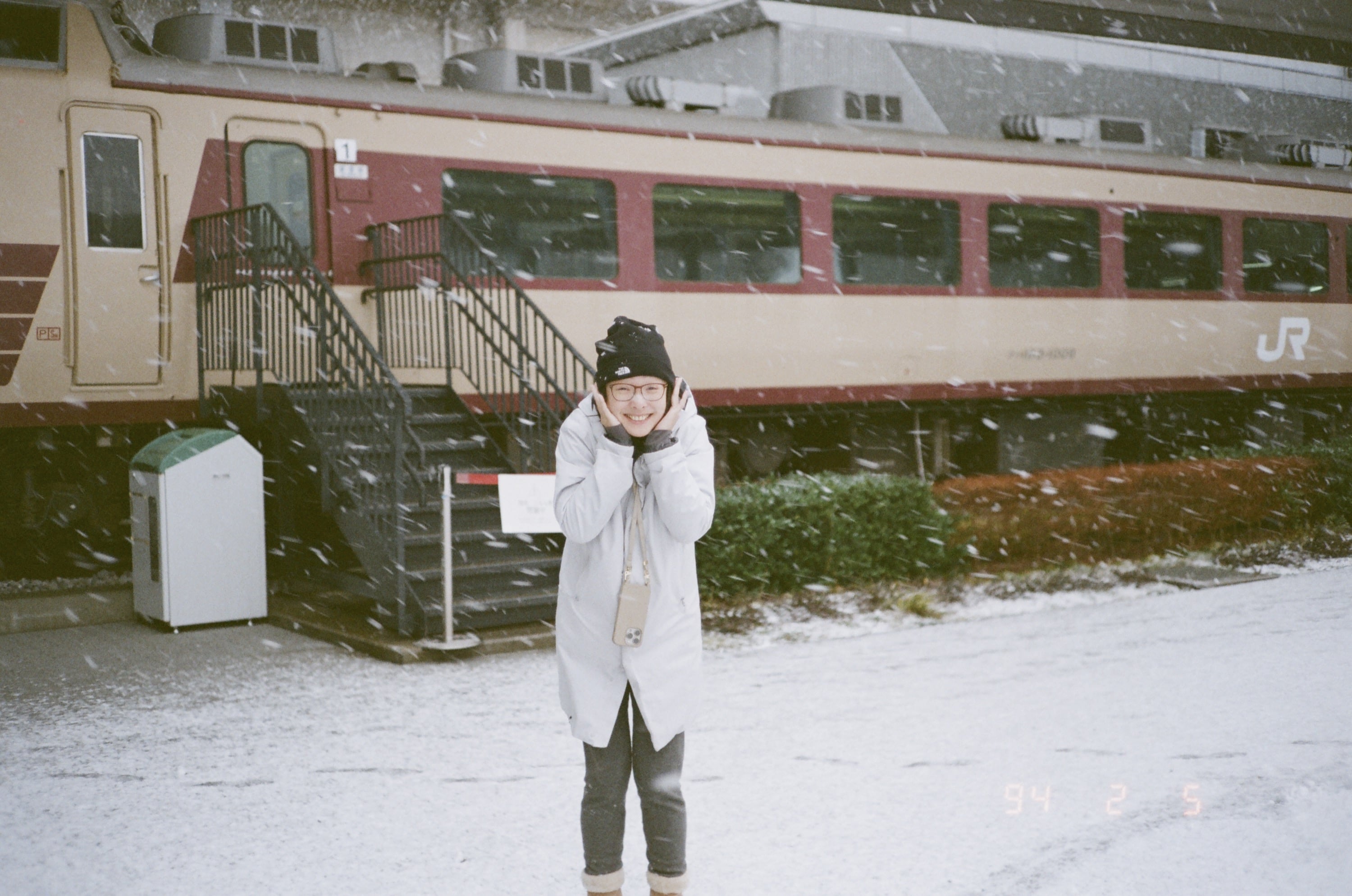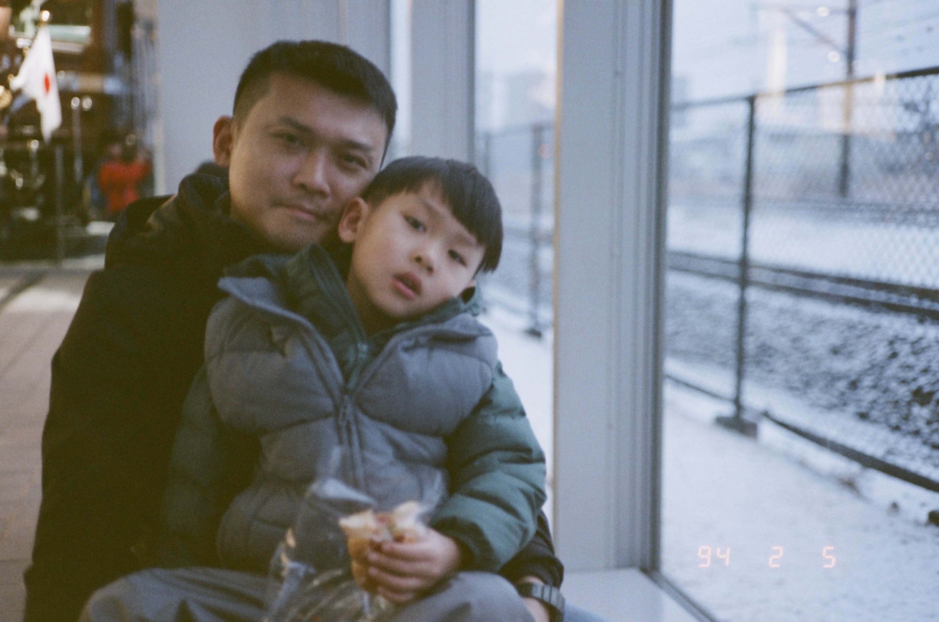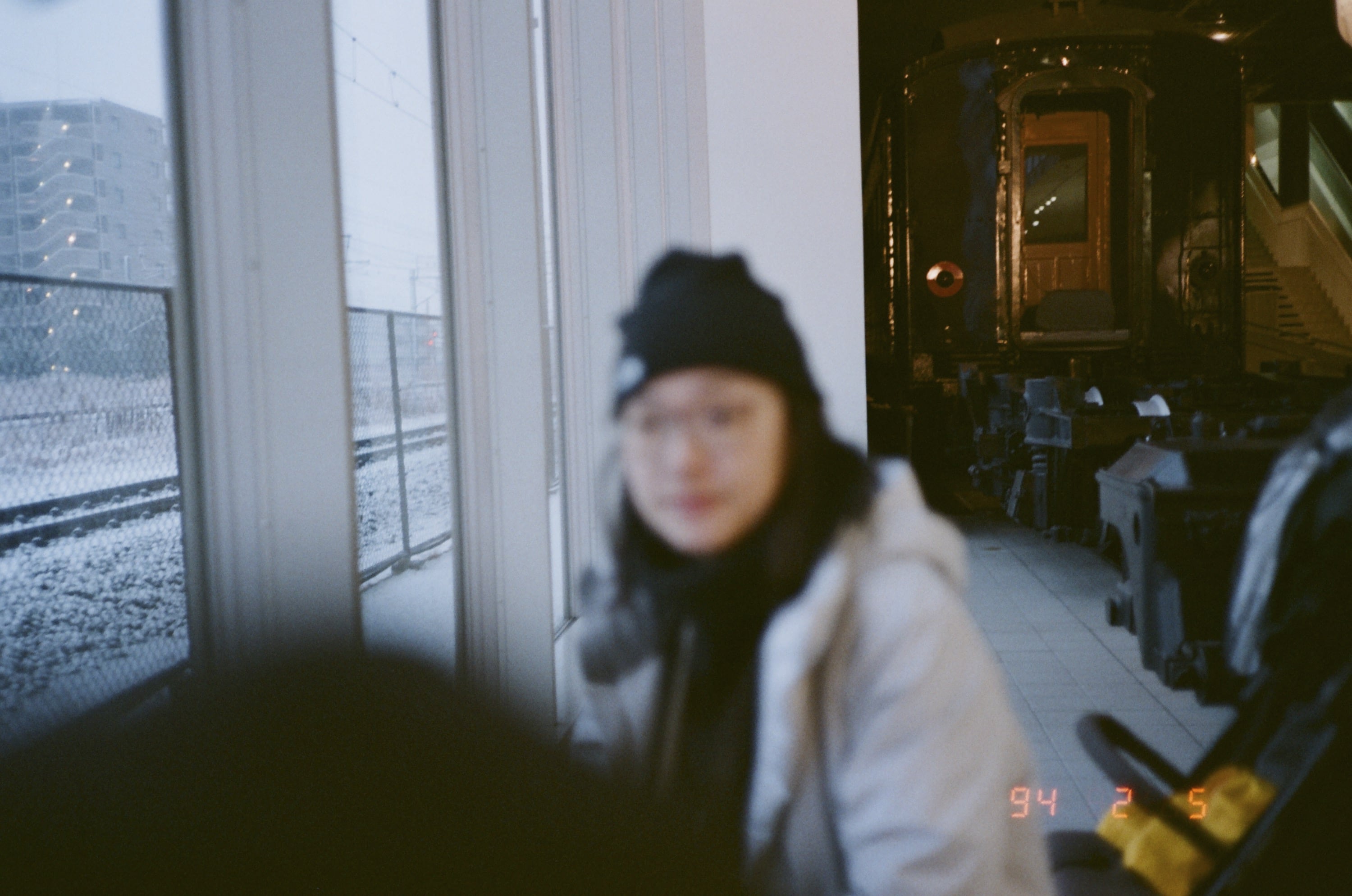 這卷底片主要紀錄了我們東京之旅的第 5 天(總共 7 天 6 夜),這一天我們安排前往埼玉縣埼玉市大宮區的鐵道博物館,在我們抵達前,氣溫是相當濕冷的,正當我們逛到一半,隔著館內的玻璃窗,忽然發現外頭竟然下起雪了,我們一家三口像個興奮的小孩,很開心地看著這一切發生,然後跑到鐵道博物館的室外區去「淋雪」,當我們玩完雪後進來室內,發現剛才放在外頭的推車都濕了,這才回過神來,雪就是雨,剛才完全忘了要遮一下。