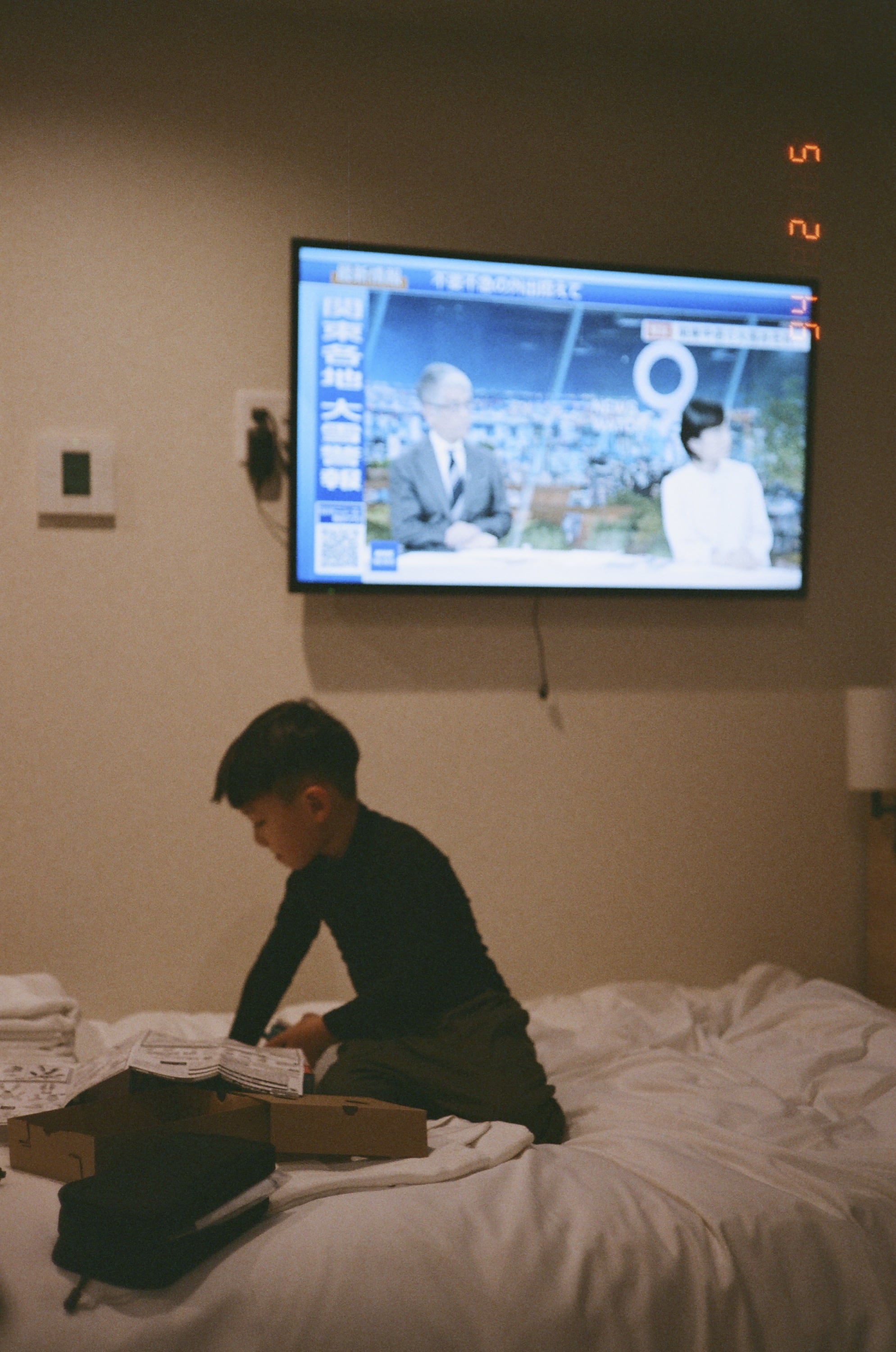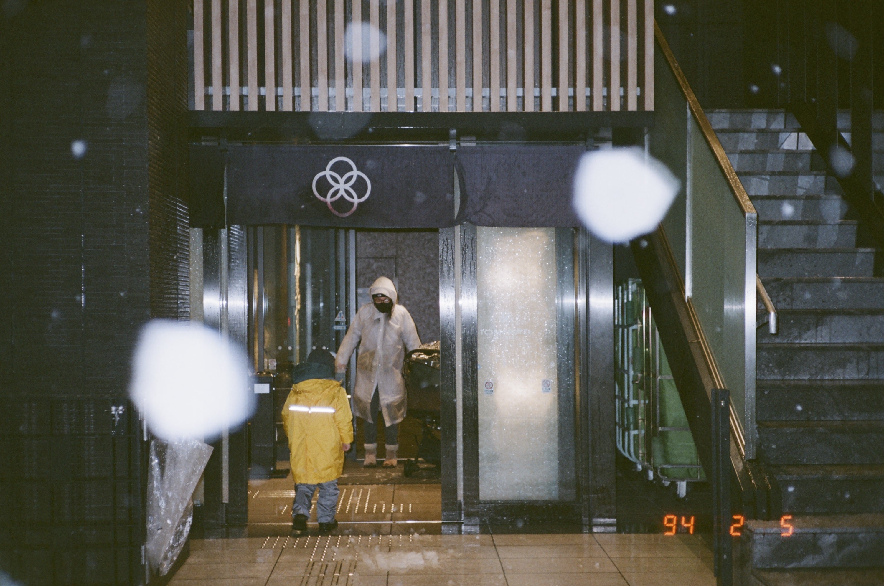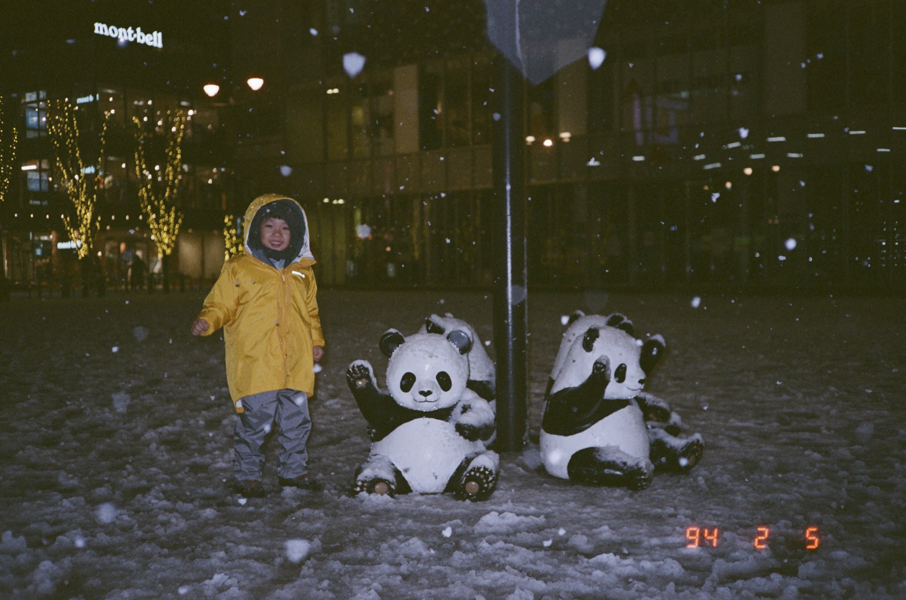 這卷底片主要紀錄了我們東京之旅的第 5 天(總共 7 天 6 夜),這一天我們安排前往埼玉縣埼玉市大宮區的鐵道博物館,在我們抵達前,氣溫是相當濕冷的,正當我們逛到一半,隔著館內的玻璃窗,忽然發現外頭竟然下起雪了,我們一家三口像個興奮的小孩,很開心地看著這一切發生,然後跑到鐵道博物館的室外區去「淋雪」,當我們玩完雪後進來室內,發現剛才放在外頭的推車都濕了,這才回過神來,雪就是雨,剛才完全忘了要遮一下。