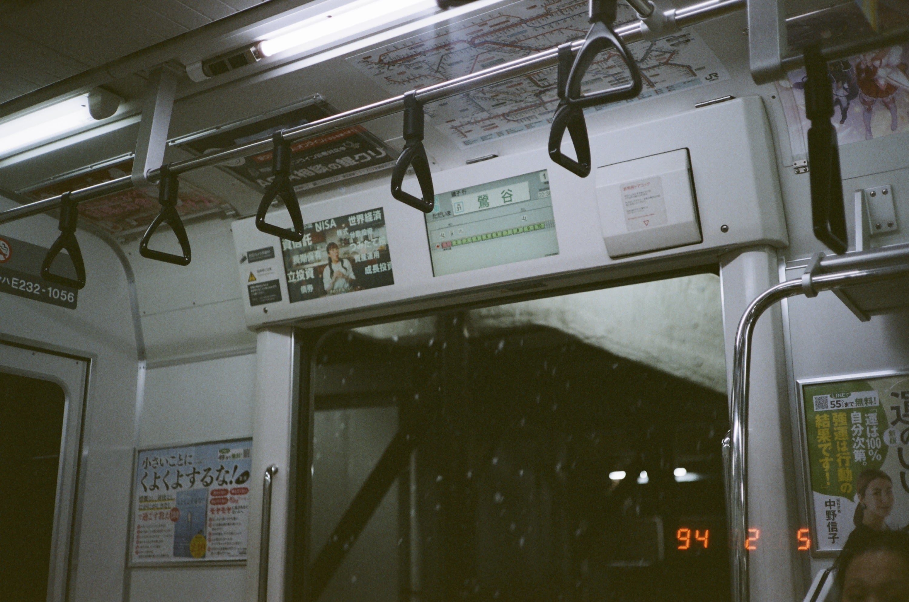 因為大雪而延誤的電車,我們就在電車車廂中不斷地等待,看著車門開了又關,關了又開,好險車廂內的暖氣非常舒適。