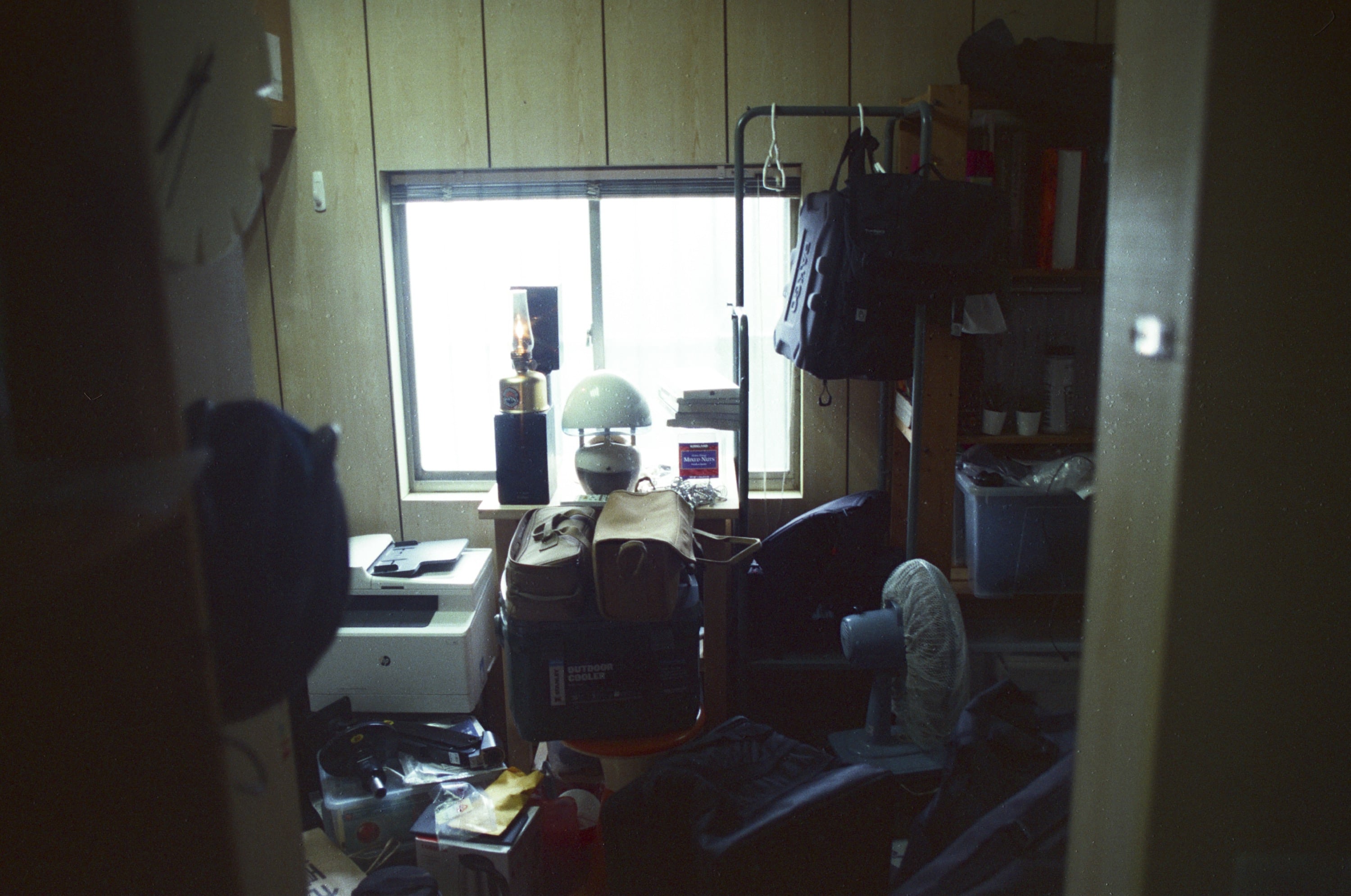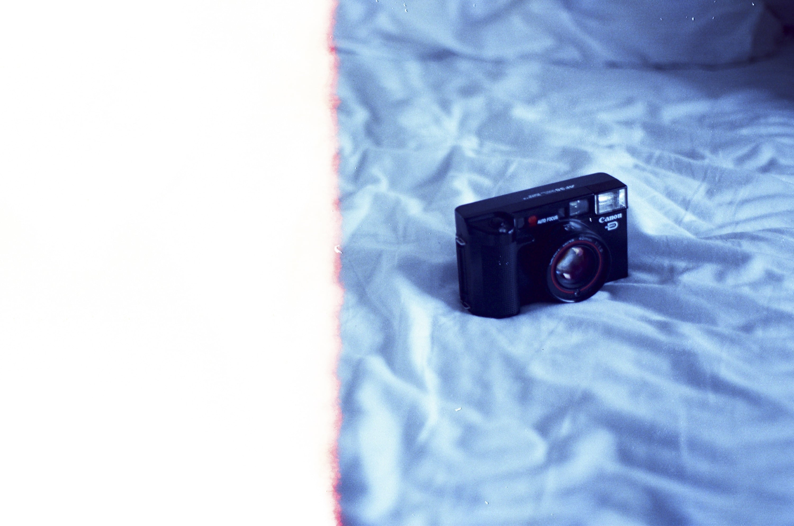這次東京之行幾乎沒在換底片的,因為一台相機就是一台底片,直接裝在裡頭,放進背包過 X 光機過日本機場海關。照片中的是剛拍完的 Canon AF35ML 40mm f1.9,裡頭放的是過期 10 年的 Fujifilm Superia X-Tra 400 日版底片,在飯店裡頭把片頭拍掉,等一下就要出門了。