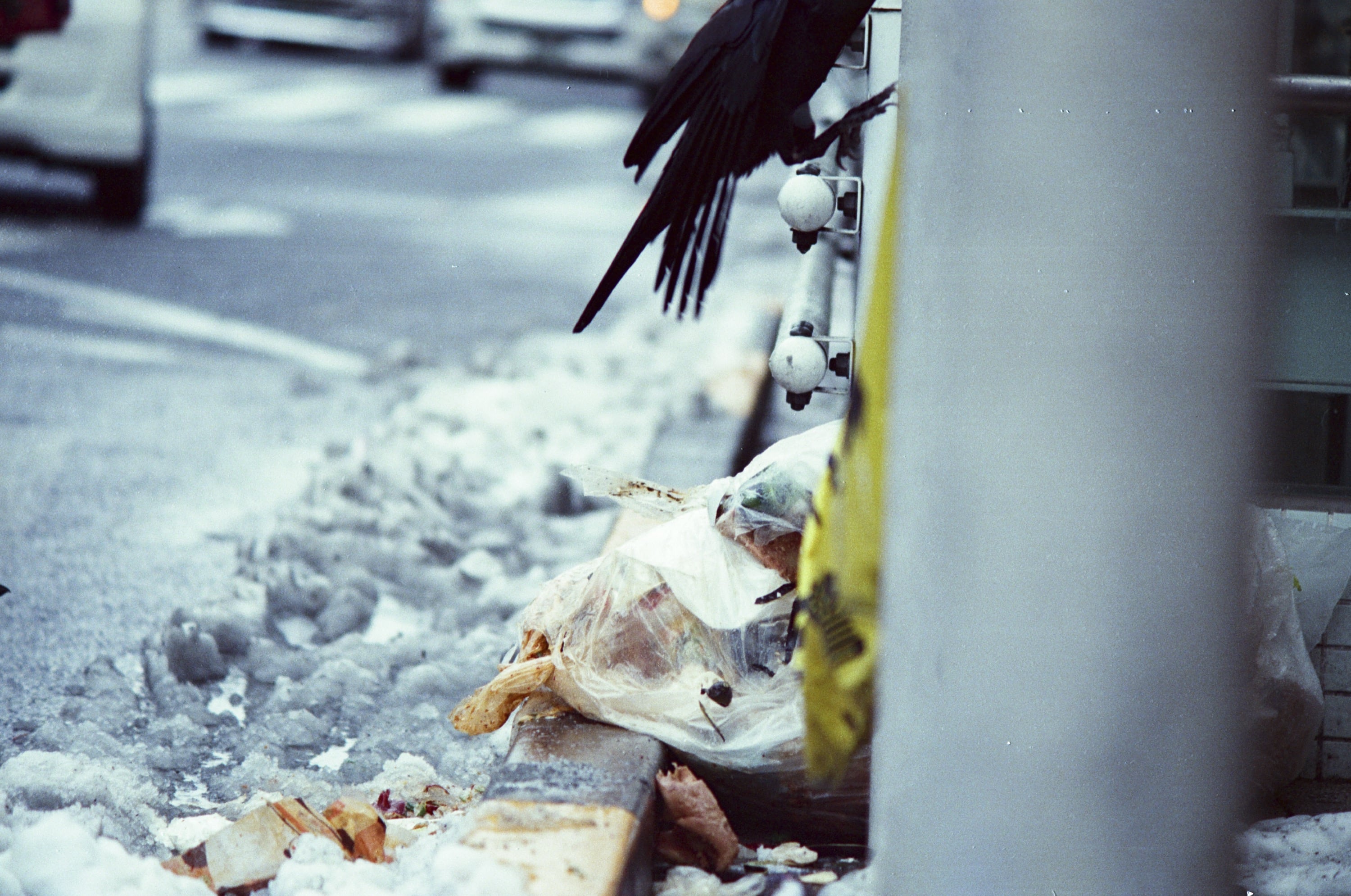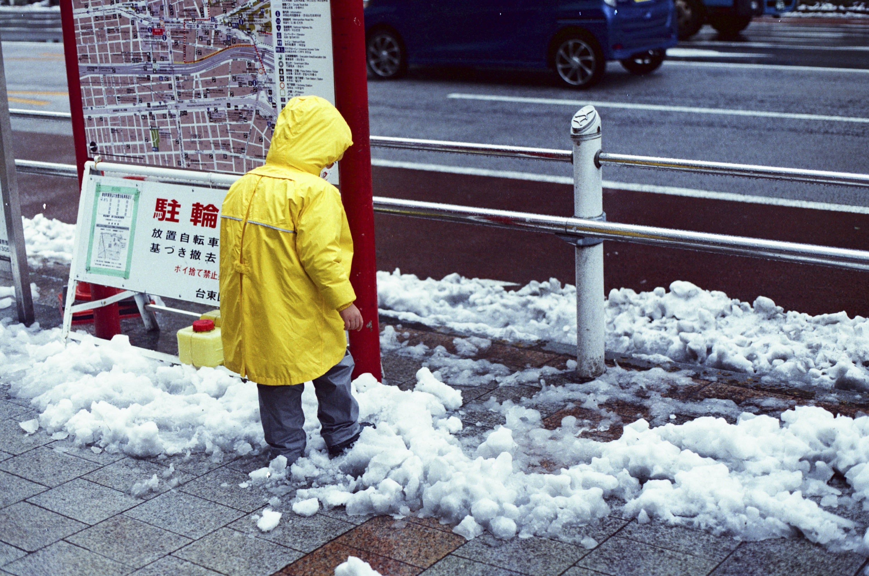 昨天東京下了大雪,今天在街上還看得到殘雪,我們前往地鐵站的路上,兒子就這樣沿路踩雪玩著。