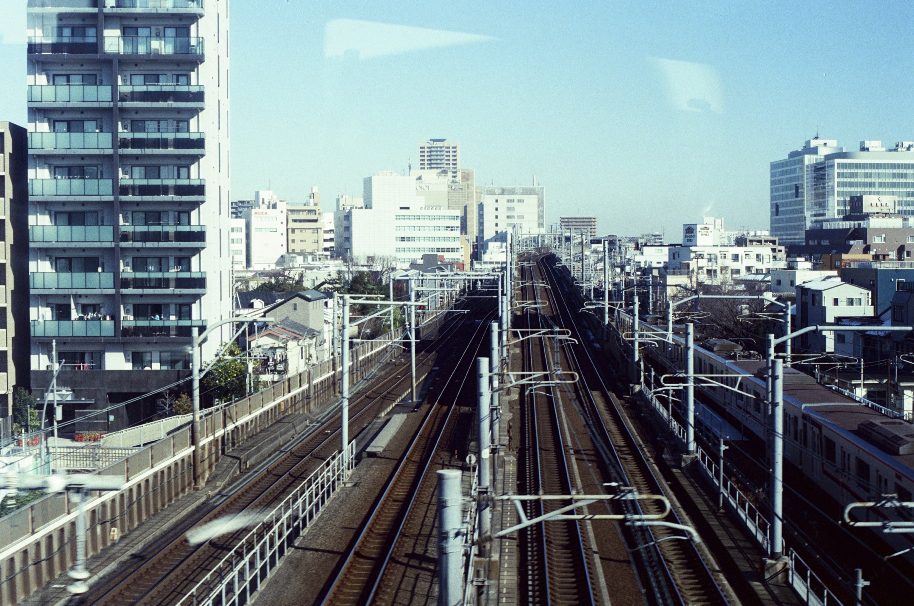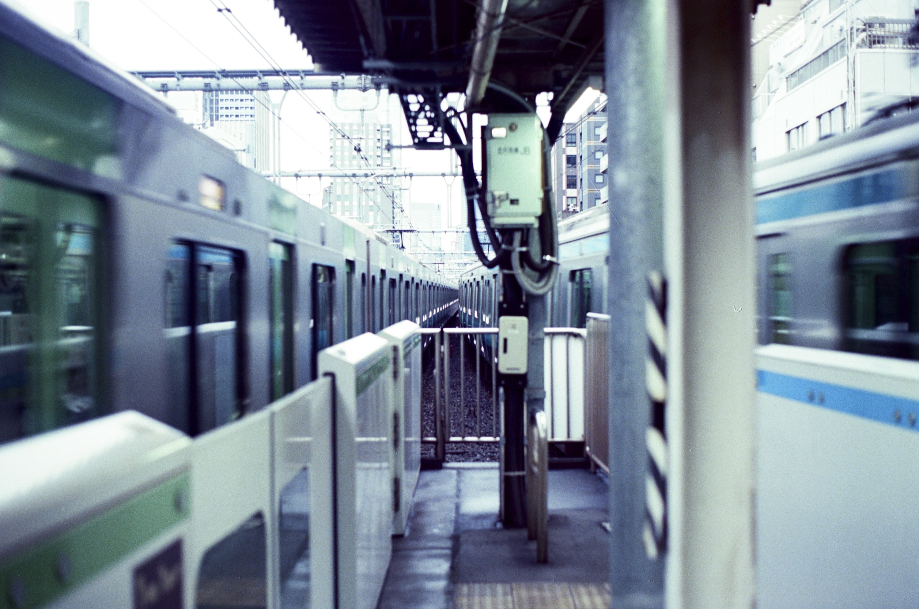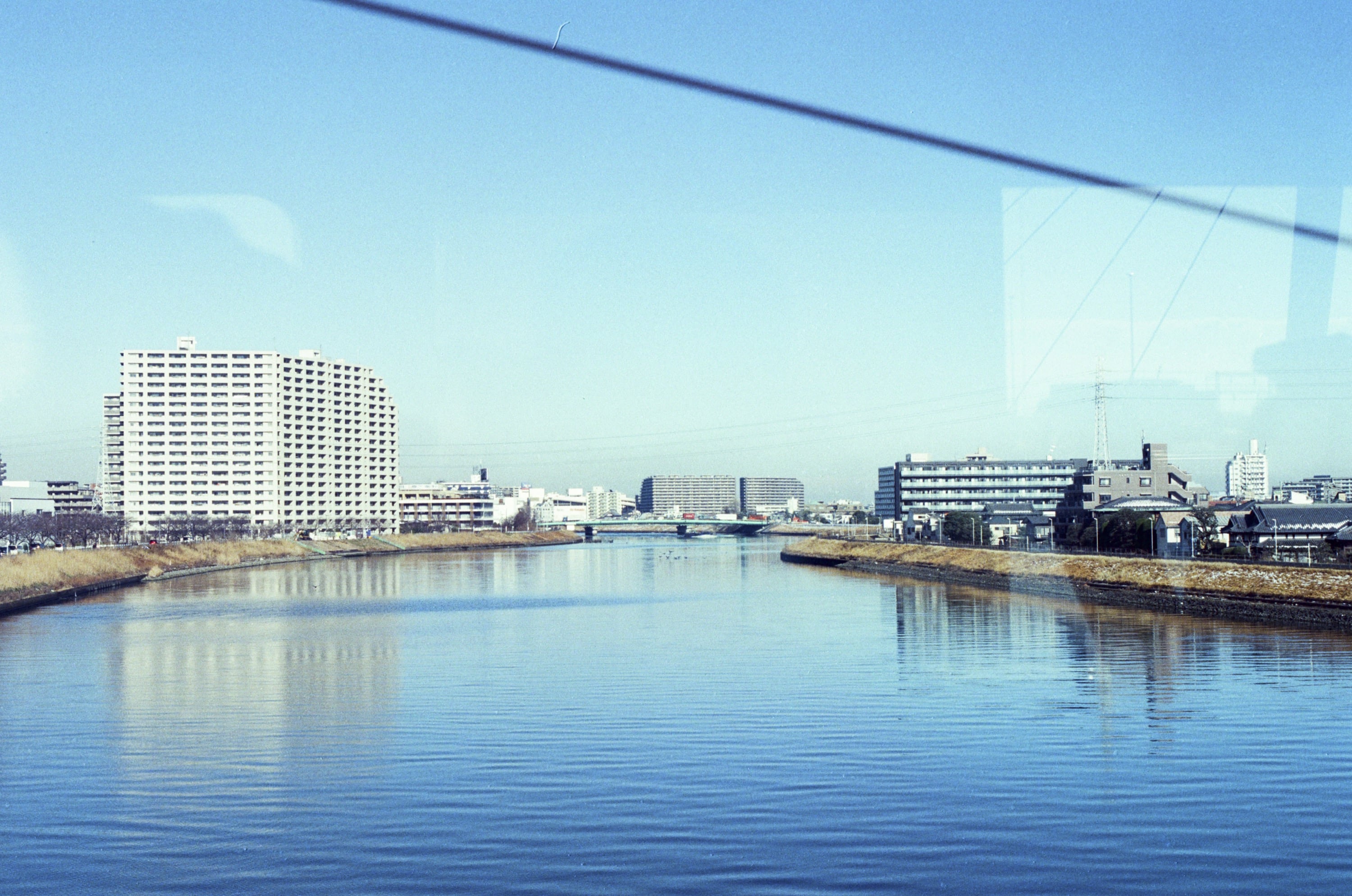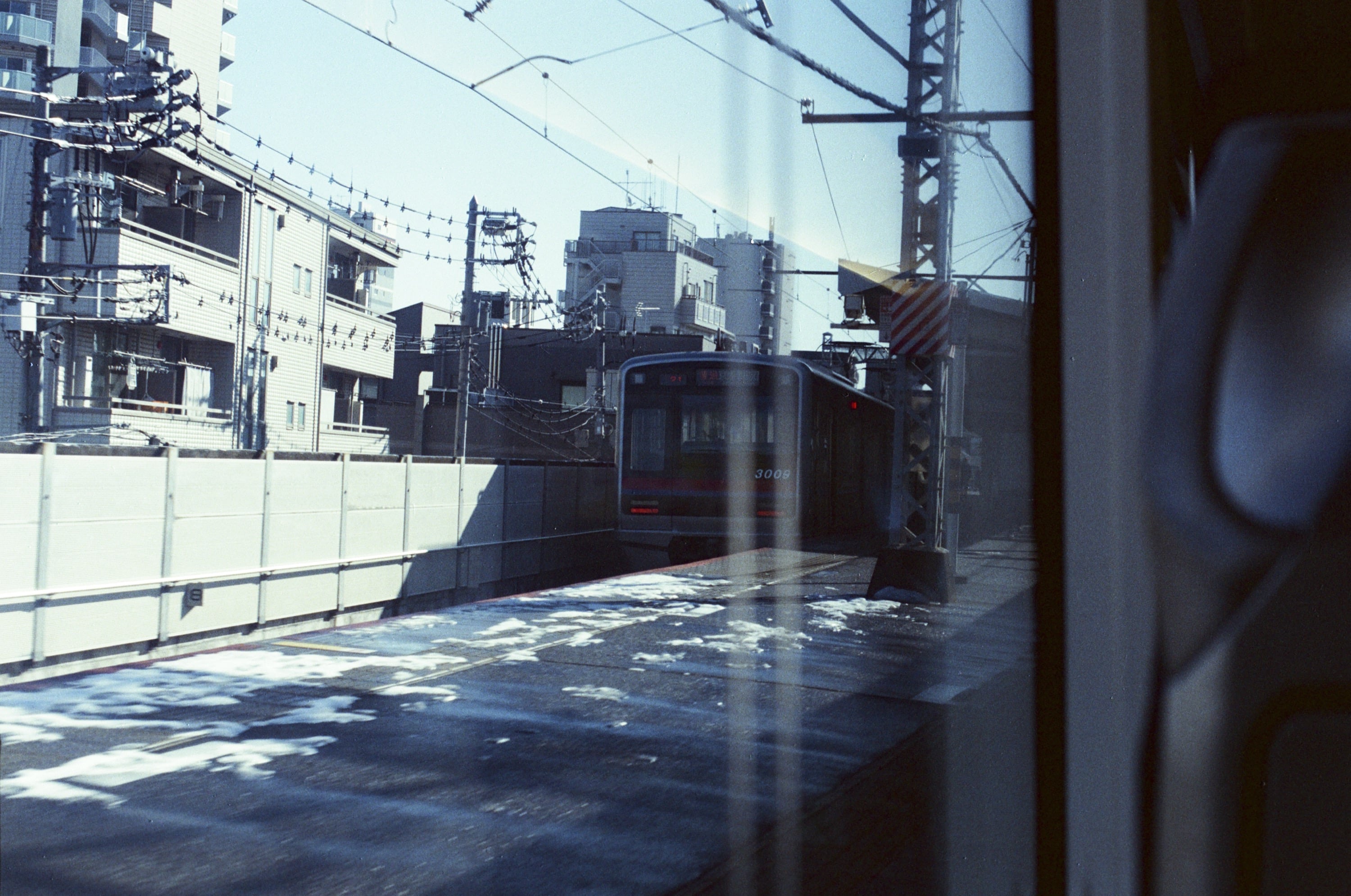 題外話,這卷電影底片是在新北樹林東榤(揚禾)沖掃的,他們家的除碳真的是我碰過殘留最多的,沒有之一。如果是以 135 電影底片的話,個人目前還是推薦彰化大村的金影攝影,不過真希望金影可以加價升級 Print File 無酸片袋。這張照片是我們還在前往機場的電車上,因為電車搭得有點久,所以我就隨意拍攝。