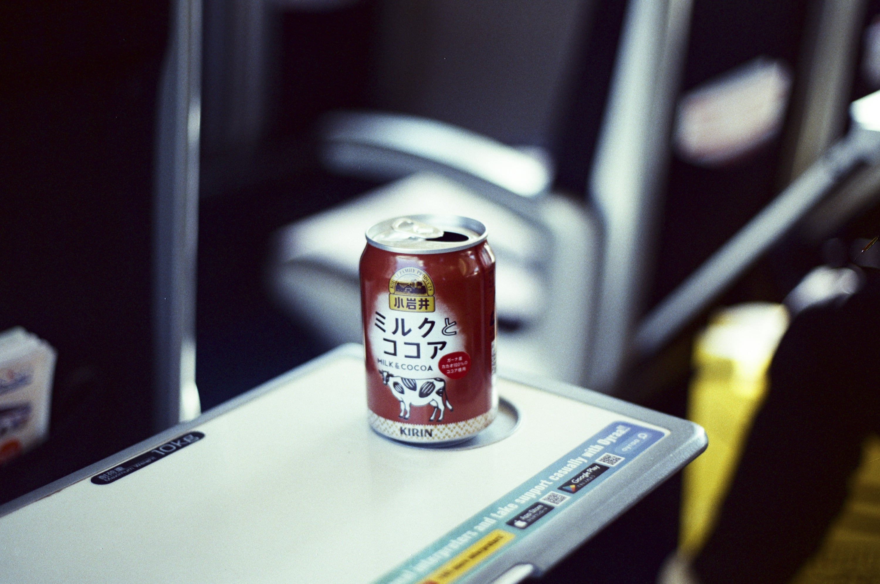 隔日,這是在日本的第七天,我們在這一天要搭飛機回台灣了,一路上好趕,早上 09:12 買了車票,09:17 搭上了車,前往機場。這是匆忙之間在超商買的早餐飲料。