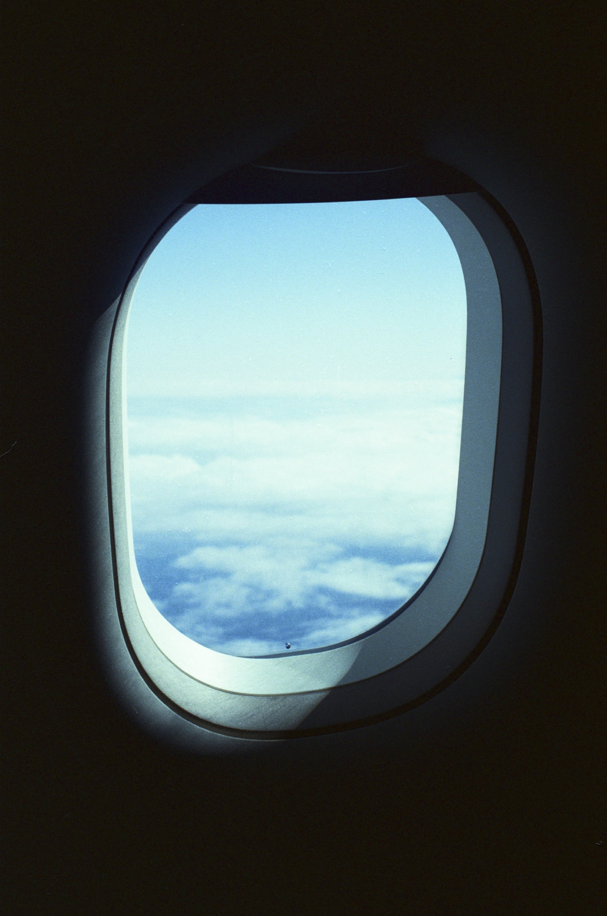 我想要拍一張具有漸層藍的橫式飛機窗照片,當我的電腦桌布。
