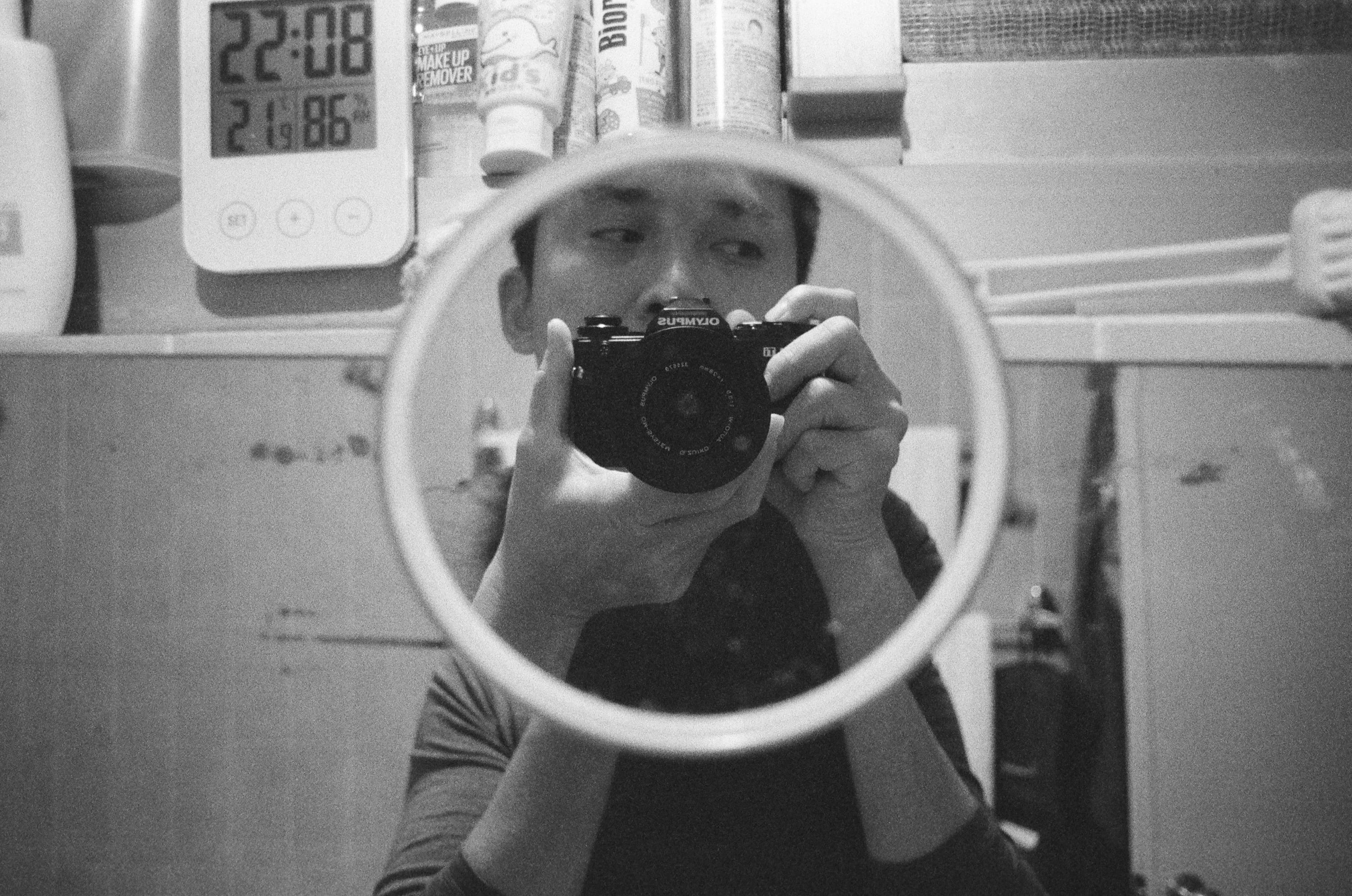 我阿嬤在我大學四年級的時候過世了,那時我使用的相機是 Canon 400D 數位單眼,不過,那時候我並沒有拍下她幾張照片,因為我不知道那時候的她,已經是人生的尾聲了。她留下來的東西之中,其中有面她的化妝鏡,就是你看到現在畫面中的這個圓形小鏡子,我將它掛在浴室中,算是每天都會看到的位置,算是一種我回憶她的方式。