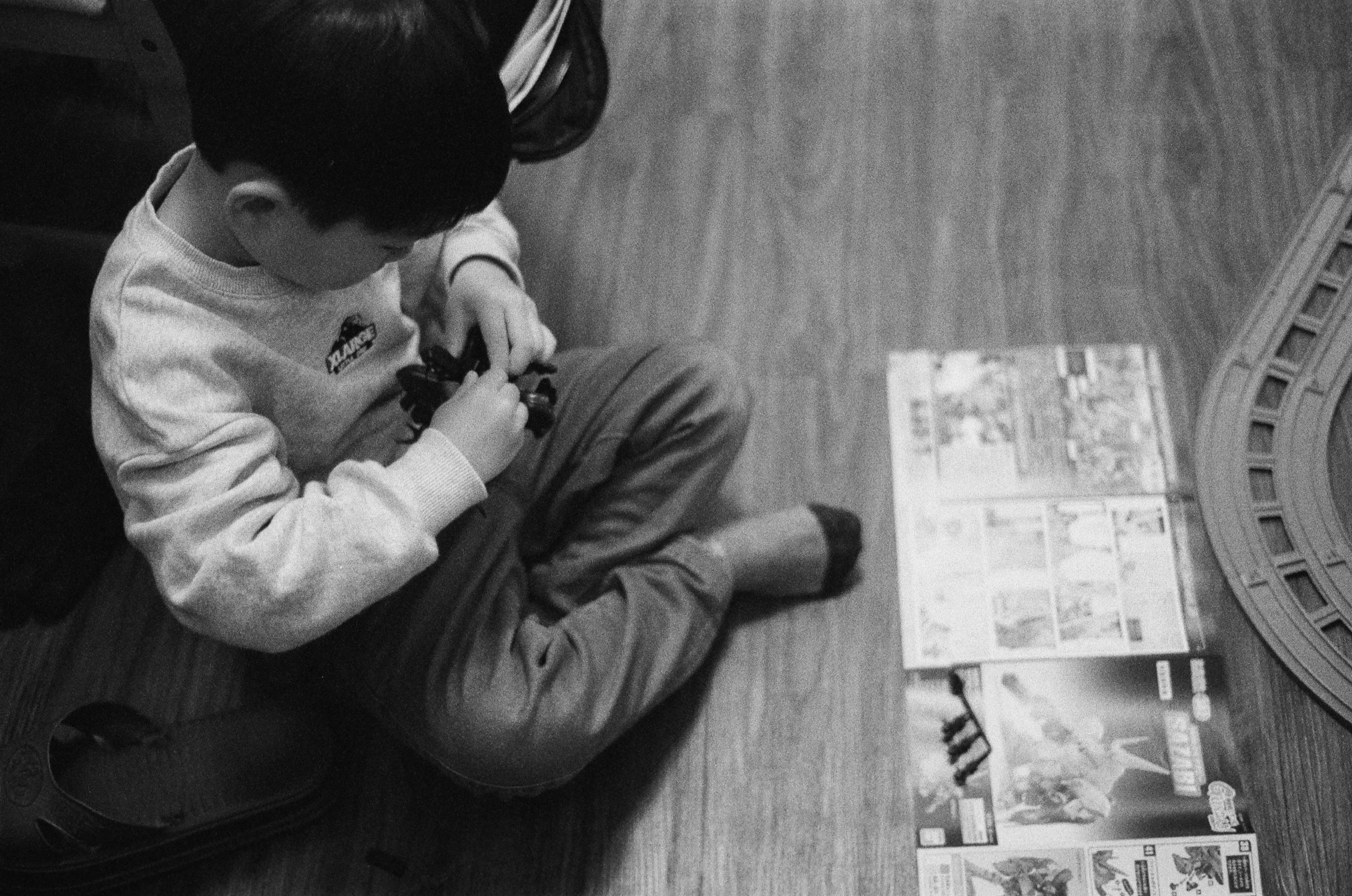 正在研究鋼彈 Sazabi 的兒子,我非常訝異今年五歲的他會組這個。