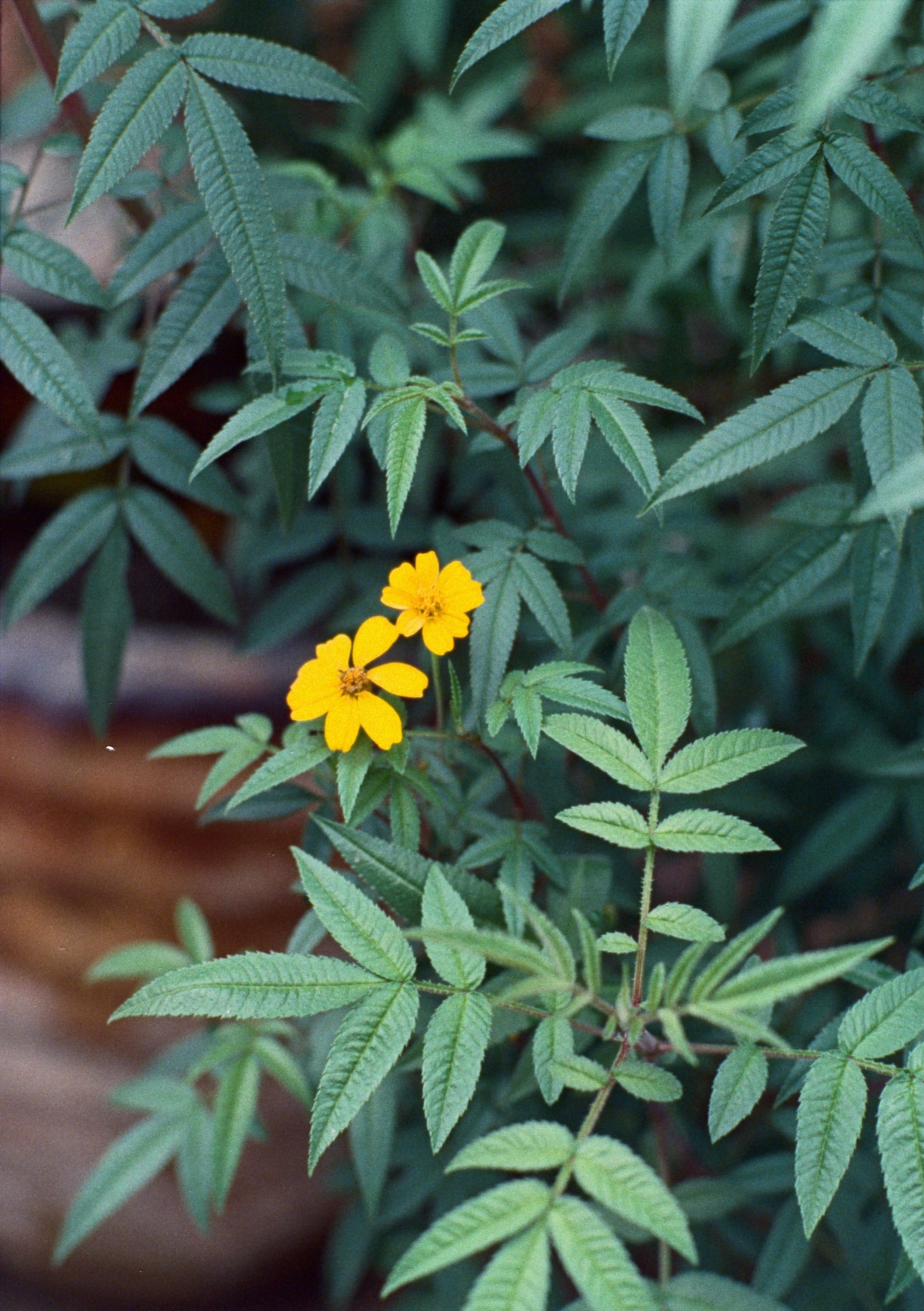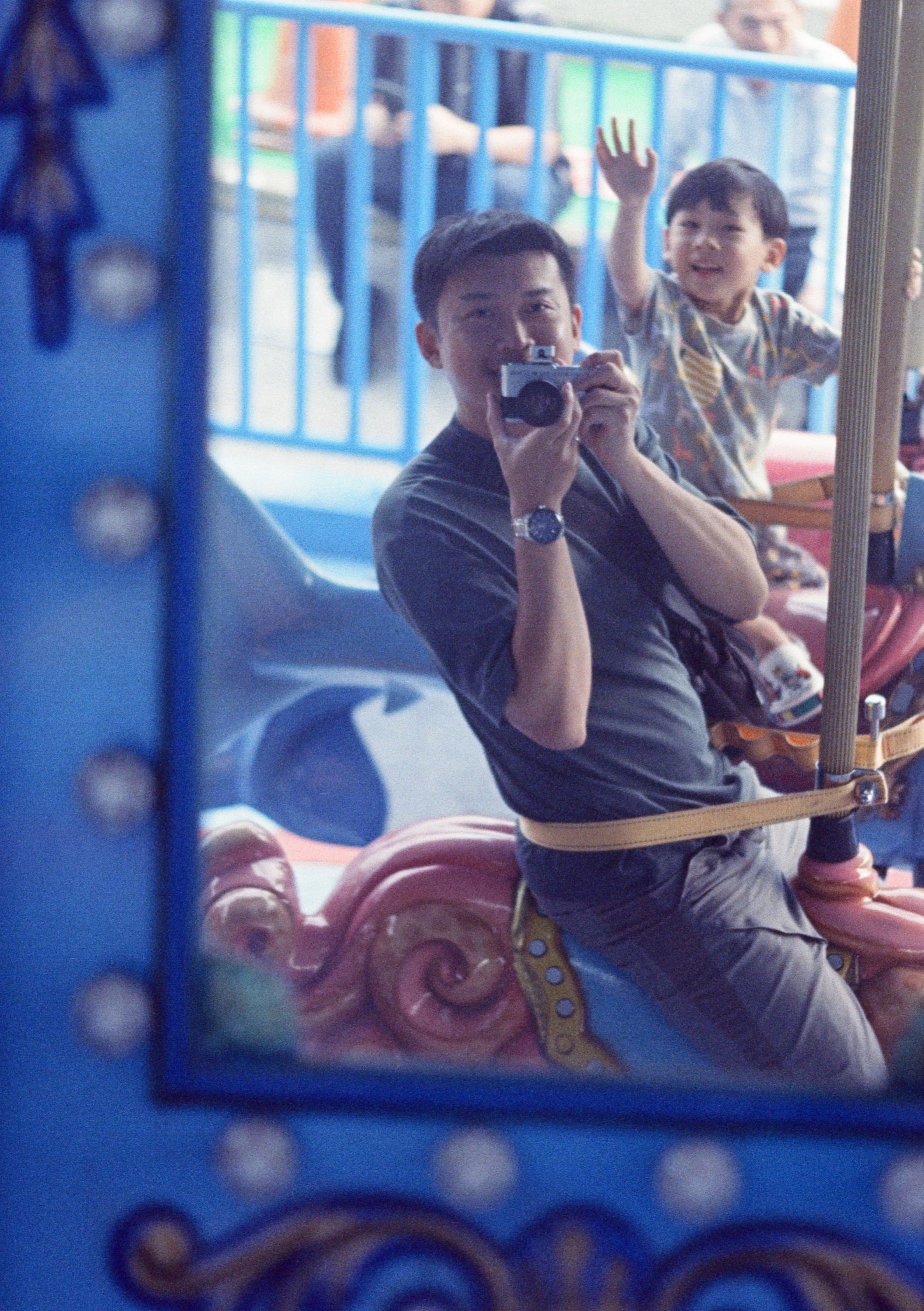 某次去接兒子下課,我一樣有把相機帶在身上,就是這卷底片的 Pen-FT。當時我看到一朵小花想拍,兒子見狀說他也想拍,於是我就將手上的相機拿給他,我差不多已經對好焦了,兒子眼睛湊近觀景窗,看了一下構圖,就按下快門了。我很喜歡這張照片。