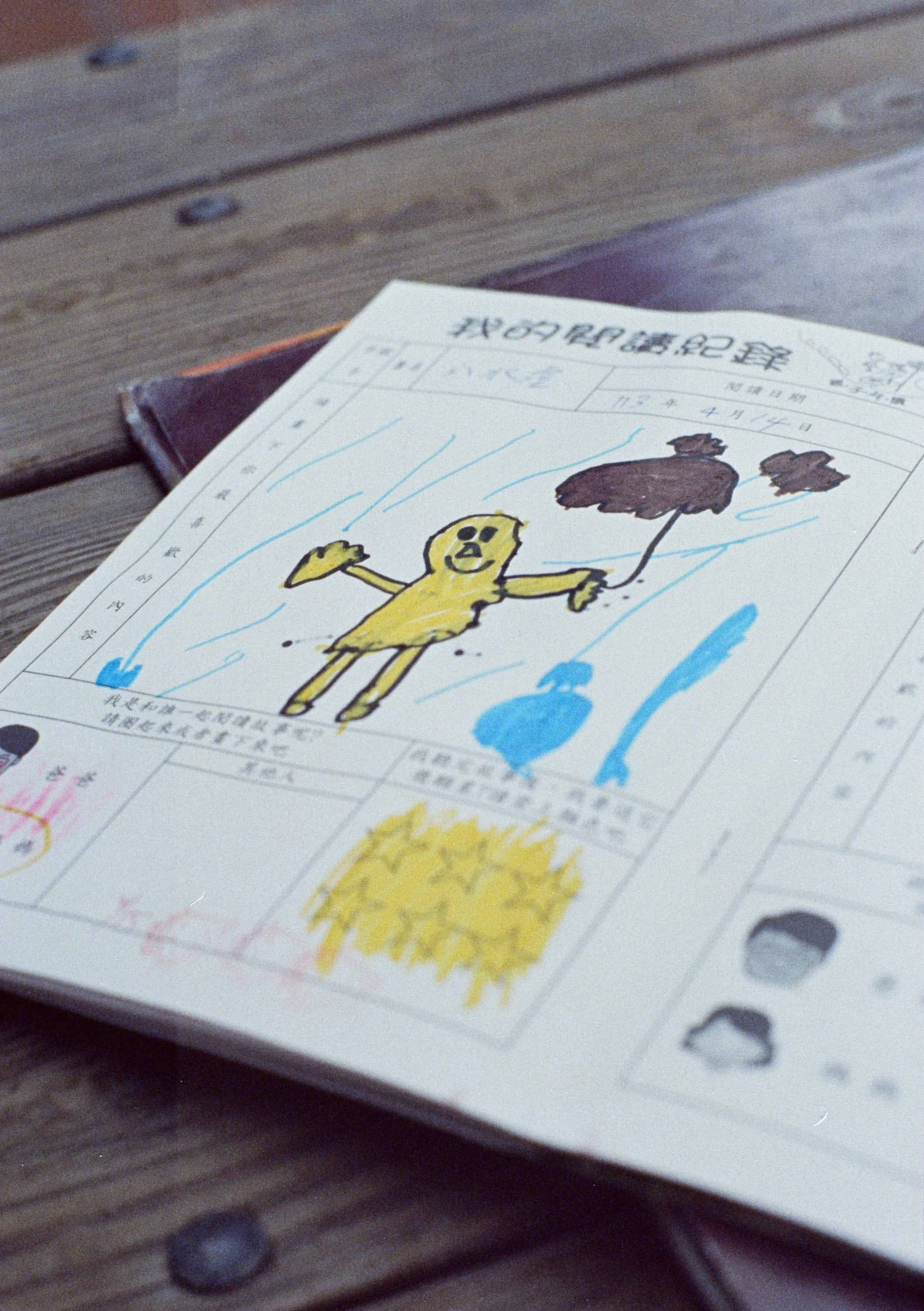 這張照片是兒子拿這台相機去拍的,我有點忘記他畫的這本書名了,看起來,兒子有認真對焦在眼睛上喔!