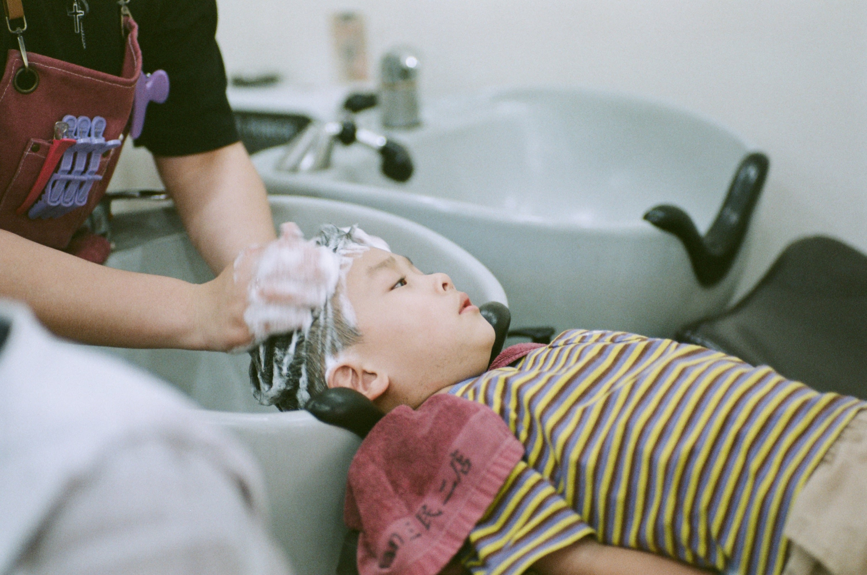 兒子目前還是不喜歡洗頭,因為泡泡會流到眼睛,但在外面洗頭就完全沒有這個困擾。