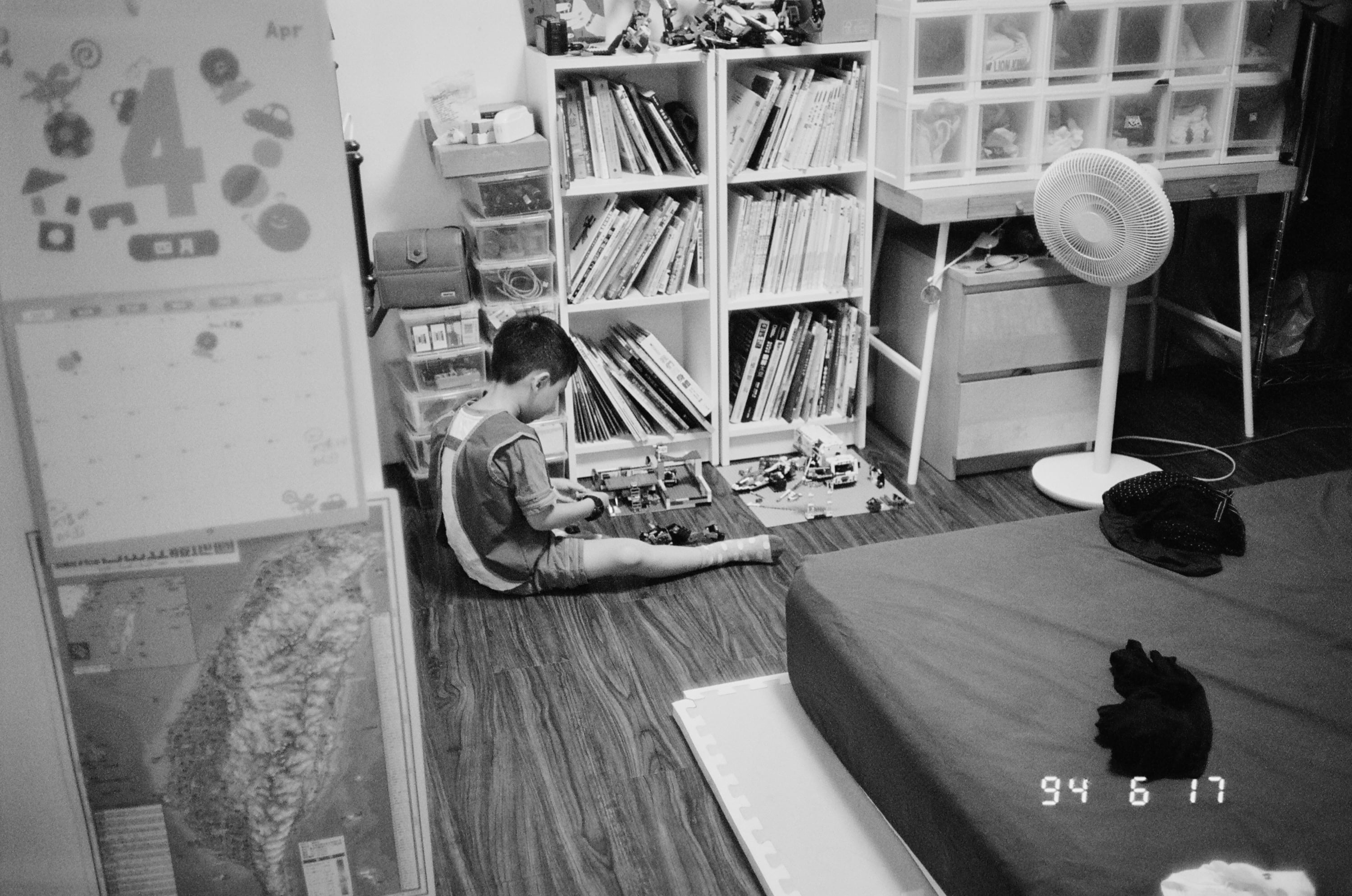 作為這卷底片的第一張照片,以某日早晨要上學前還在玩玩具的兒子開始。從照片中可以看到,Nikon AD3 35mm f2.8 的鏡頭,在一般室內場合,有機會開到 f2.8 光圈,以讓畫面有些散景層次變化。