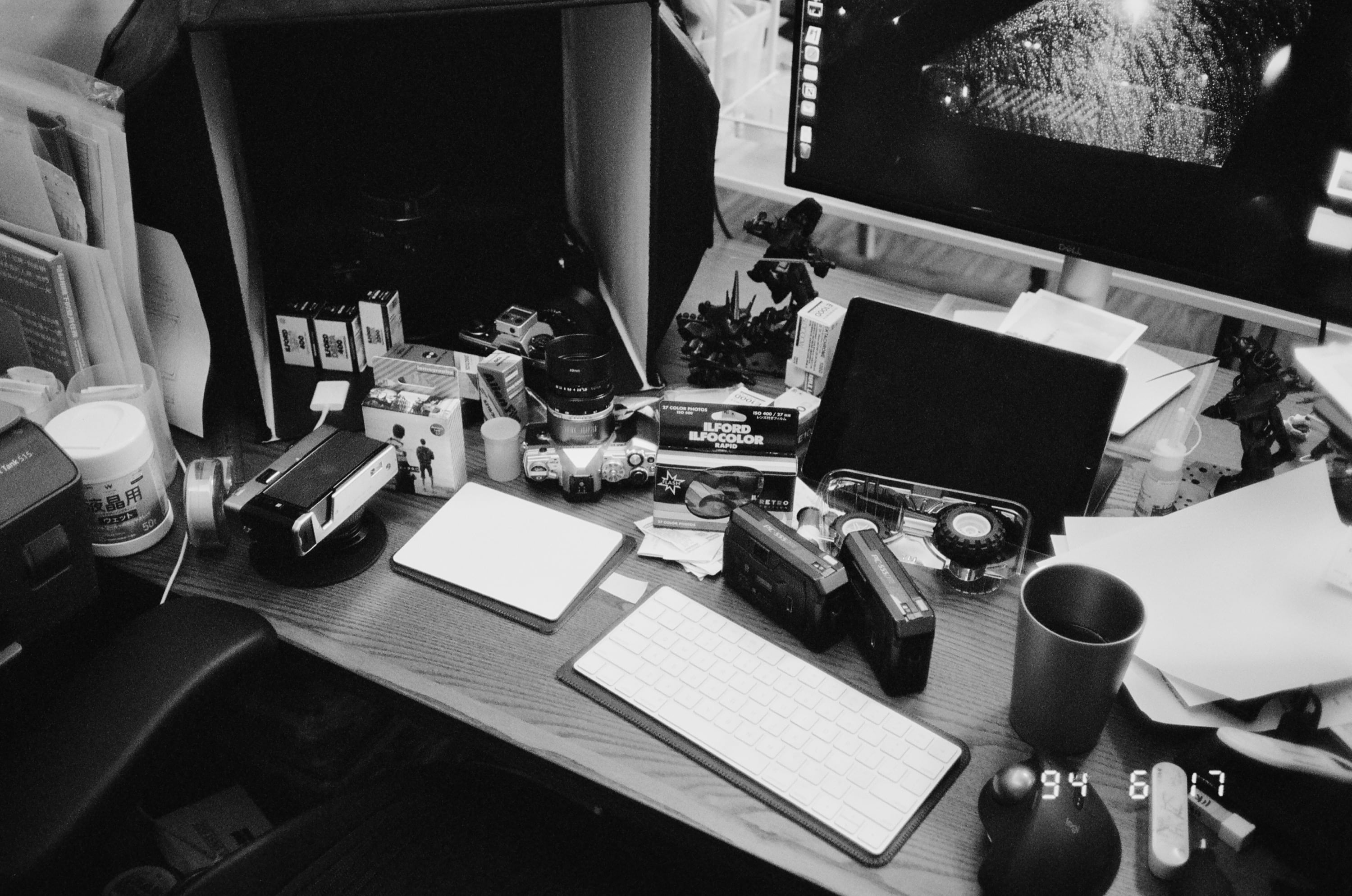 接下來是閃光燈測試,以我那凌亂著名的工作桌為拍攝對象,這張是沒有開閃光燈的版本。