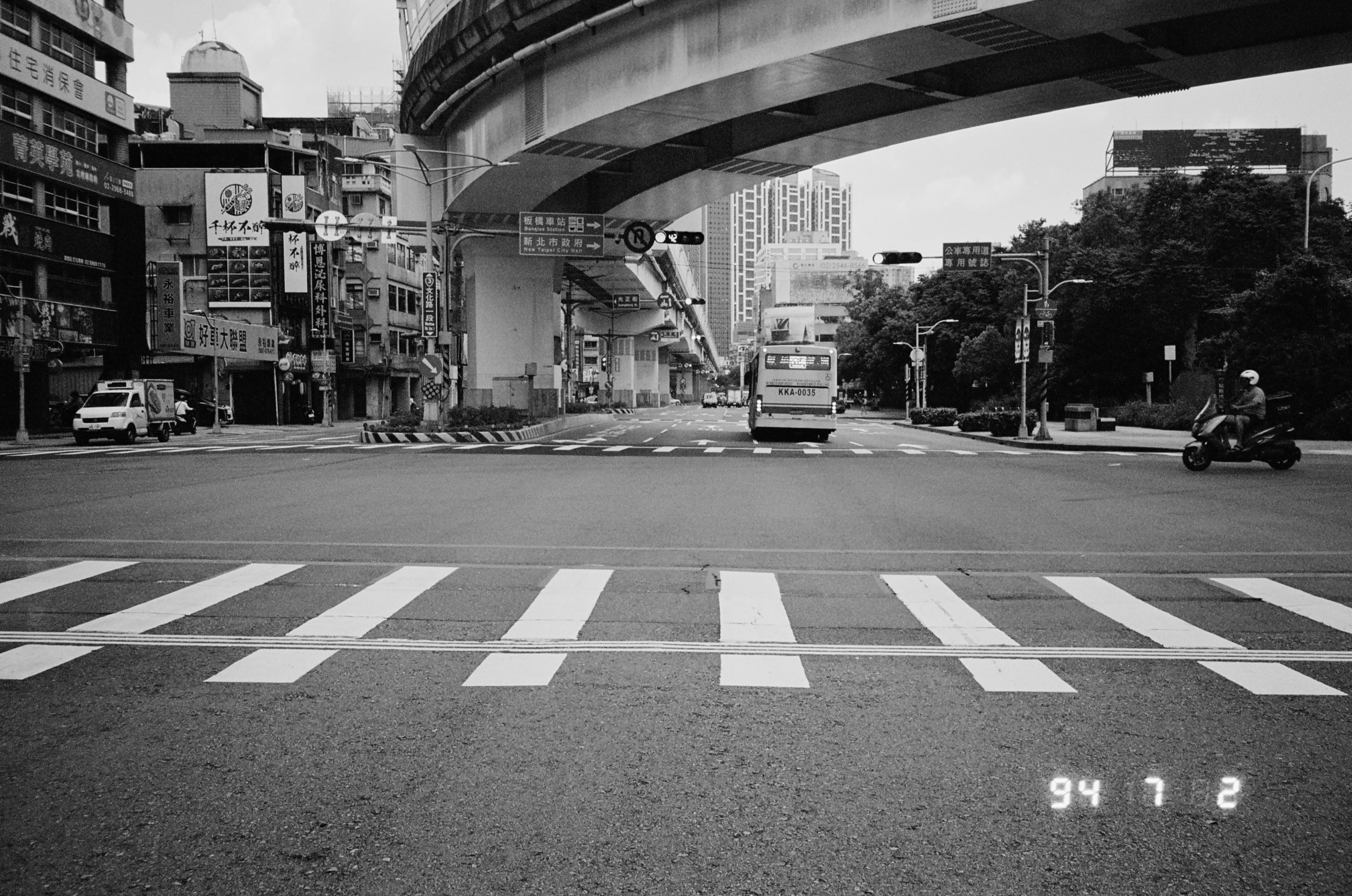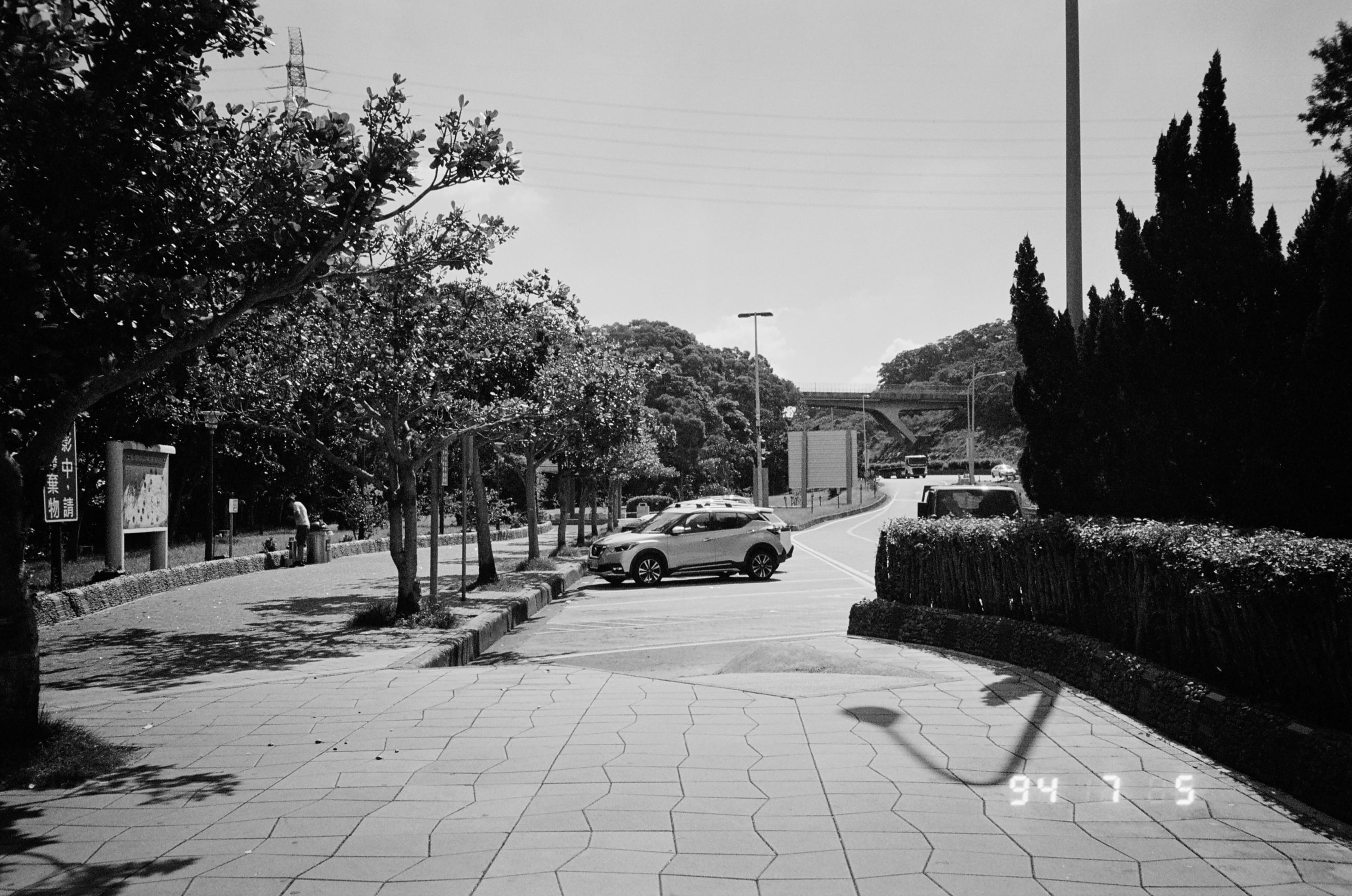 這是這卷底片的第一張照片,但我根據我的拍攝筆記,這張照片的快門是不小心按到的。那天是星期二,中午我正騎著機車從家裡出發,要去我太太公司找她一起吃中飯。雖然是不小心按下的照片,但我卻對 Ricoh FF-9SD 有了超級好的第一印象,因為這畫面實在是太銳利了,光影與細節都好,特別是那柏油路,一顆一顆的粗糙質感。