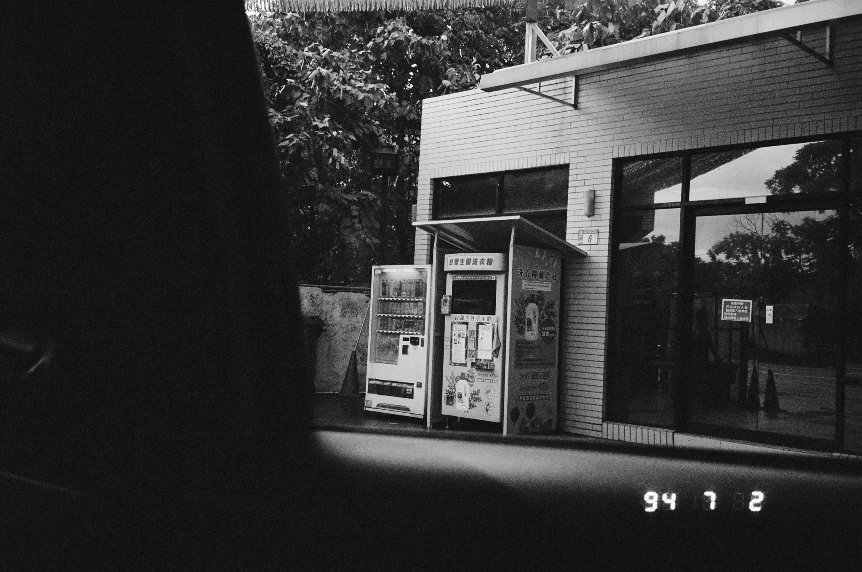 Ricoh FF-9SD 有兩種版本,一種是黑色機身的一般版,一種則是透明機身的限量版,我手上這台是透明機身的限量版,因為當初很好奇底片相機的機械運作情形而買下,我家的五歲兒子對於這台相機也感到興趣,於是某天我就拿給他拍拍看,這是某天我開車載他,我們剛進入加油站要加油,他坐在汽車後座上拍攝的。