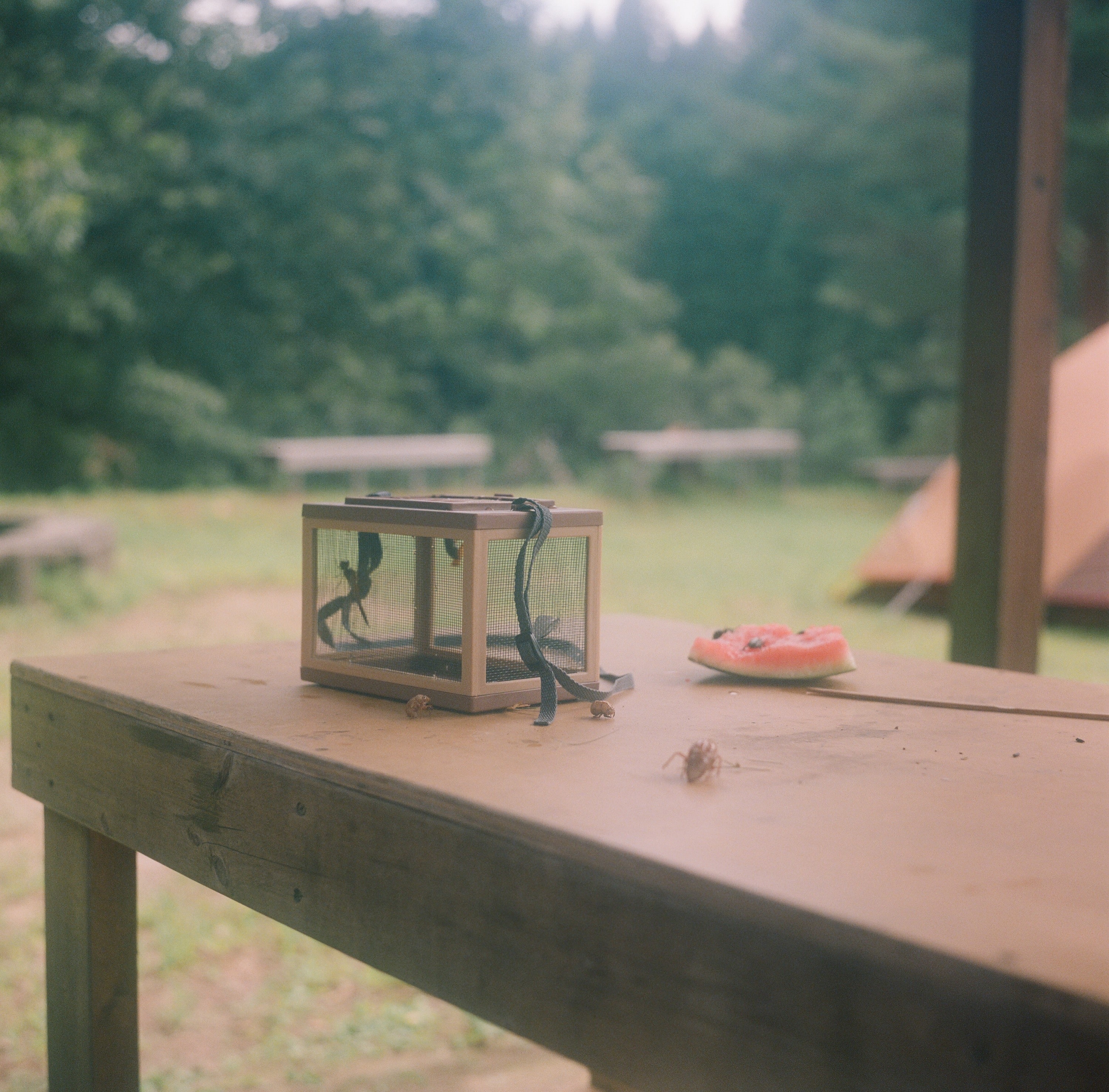 這個小籠子是我們在抵達熊本之後,在熊本市區買的,我們有抓到一些小昆蟲,離開營區前才又放走他們。