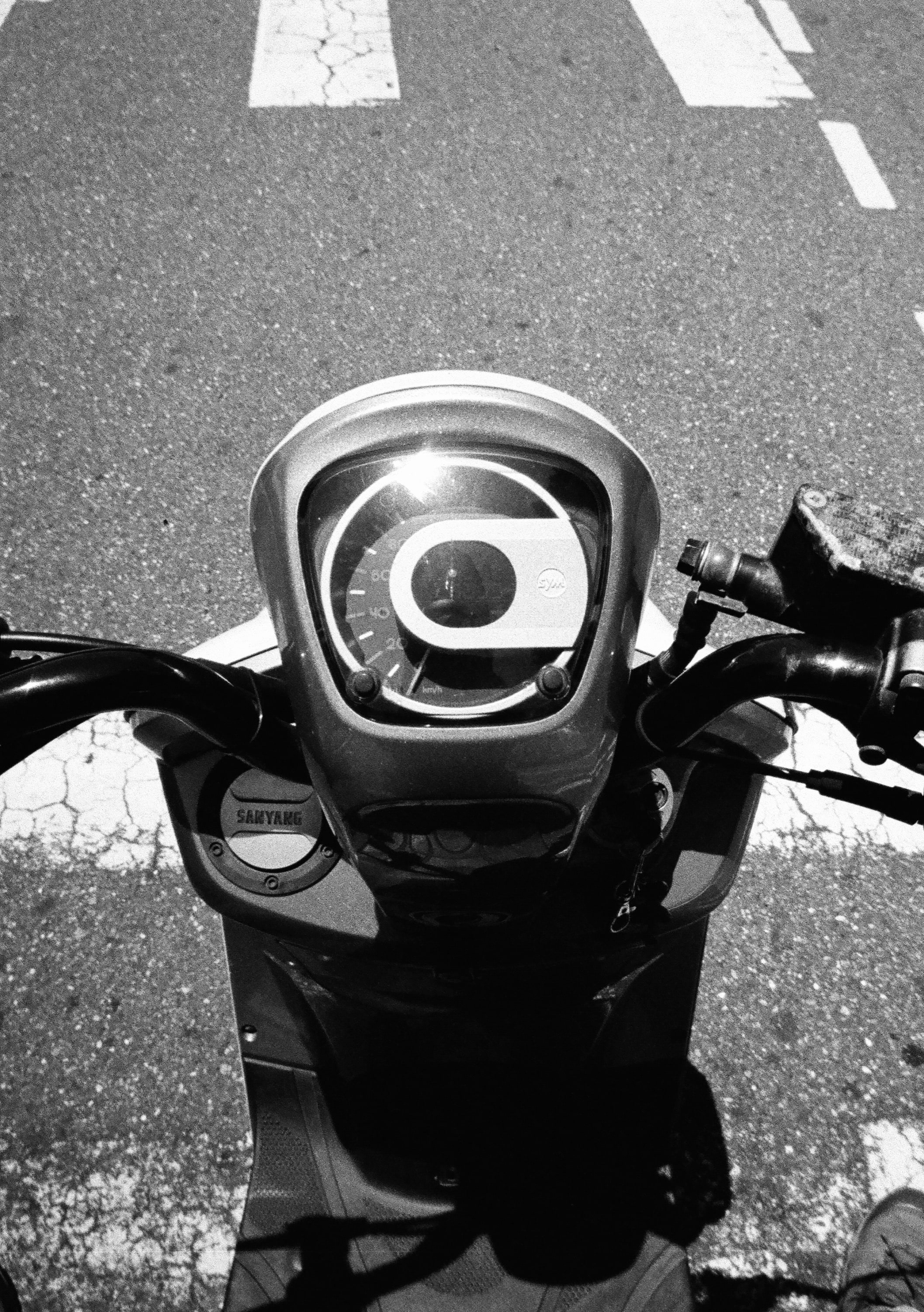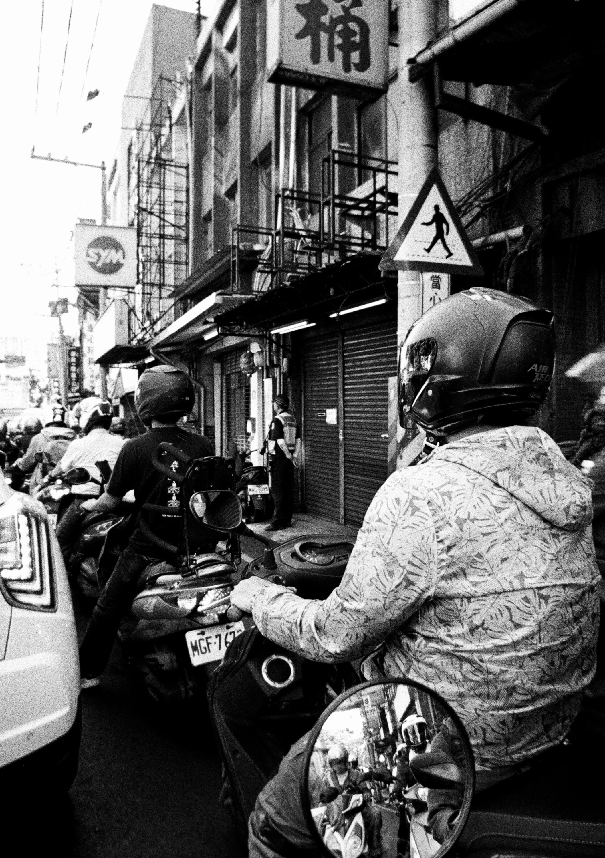 雖然是黑白影像,但也是可以透過一些蛛絲馬跡,推測當時的時間。這天傍晚,我正騎著機車要帶兒子出門吃晚飯。